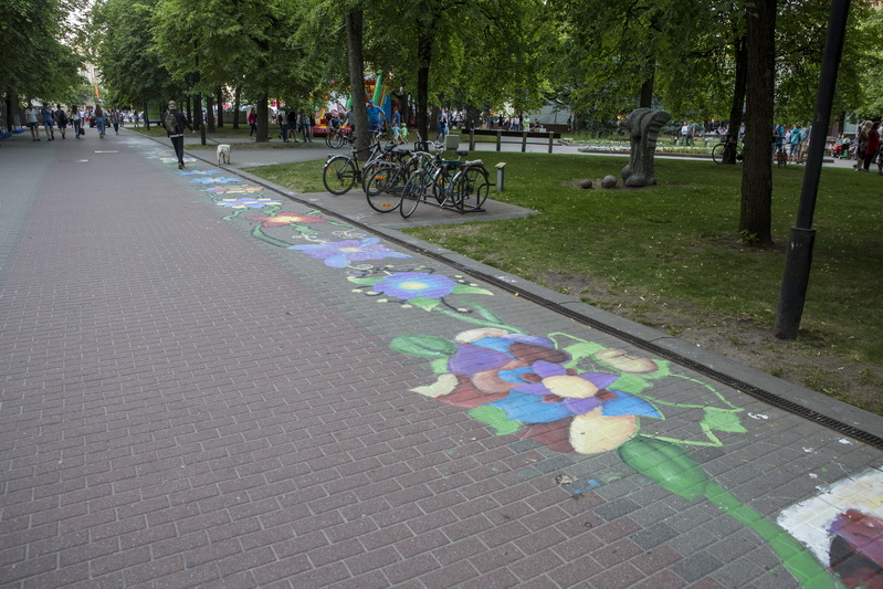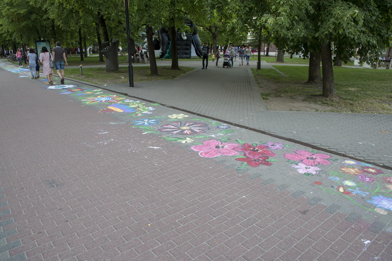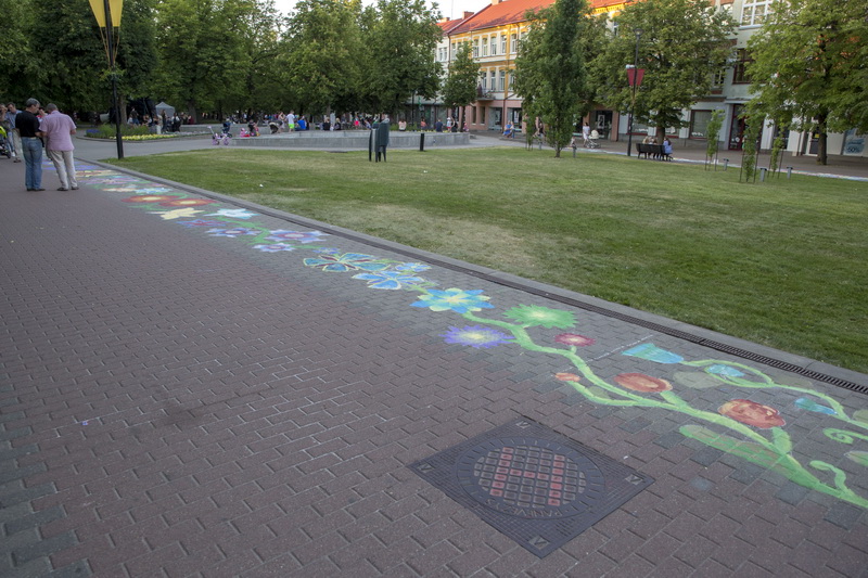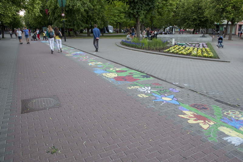 Dar vidurdienį miesto Savivaldybę bei žaliuojančią pievelę skiriantis pėsčiųjų takas tapo spalvingu gėlių taku, kurį kūrė apie pusantro šimto Dailės mokyklos ir V. Mikalausko menų gimnazijos auklėtinių. 2018-ieji Panevėžyje yra „Šimtmečio su gėle“ metai, tad ir po gyventojų kojomis nugulę piešiniai – Šimtmečio gėlių kilimas – nuspalvinti patriotiškumu.