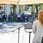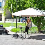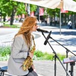 O vidurdienį aikštėje suskambo saksofono garsai – praeiviams koncertavo Greta Karnatkaitė.