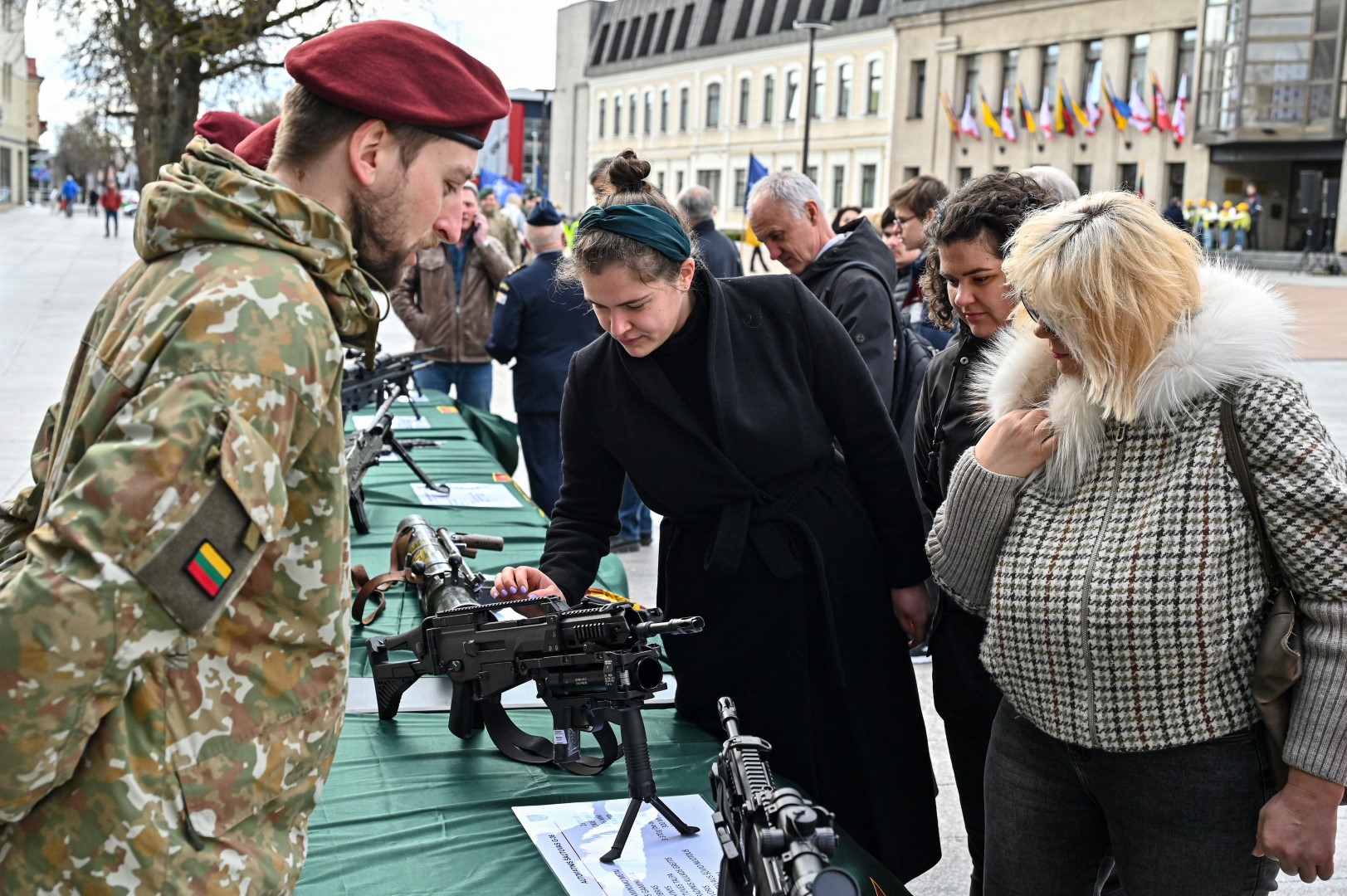 Laisvės aikštėje atėjusieji galėjo apžiūrėti kilnojamąją ginklų ir amunicijos parodą.