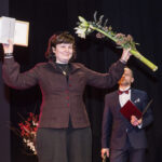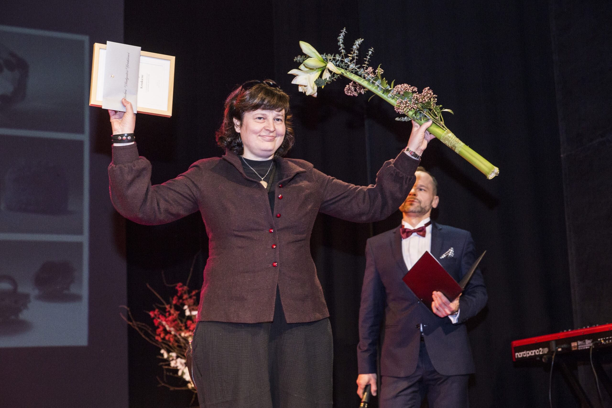 Pirmoji atsiimti apdovanojimo į sceną žengė kelis dešimtmečius kurianti, savo darbuose originalius autorinius technologinius sprendimus išryškinanti, bene aktyviausia visoje Lietuvoje stiklo menininkė Indrė Stulgaitė-Kriukienė. Jos braižas atpažįstamas net stiklo meno šalimis laikomose Čekijoje, Slovakijoje, Skandinavijos valstybėse. Stiklo virtuozės darbai eksponuojami ne tik Lietuvos, bet ir Ukrainos, Estijos, Rusijos muziejuose ir galerijose. Tarptautinį stiklo simpoziumą „GlassJazz“organizuojanti panevėžietė atidavė duoklę fotografų blykstėms, tačiau tarti padėkos žodžio nepanoro.