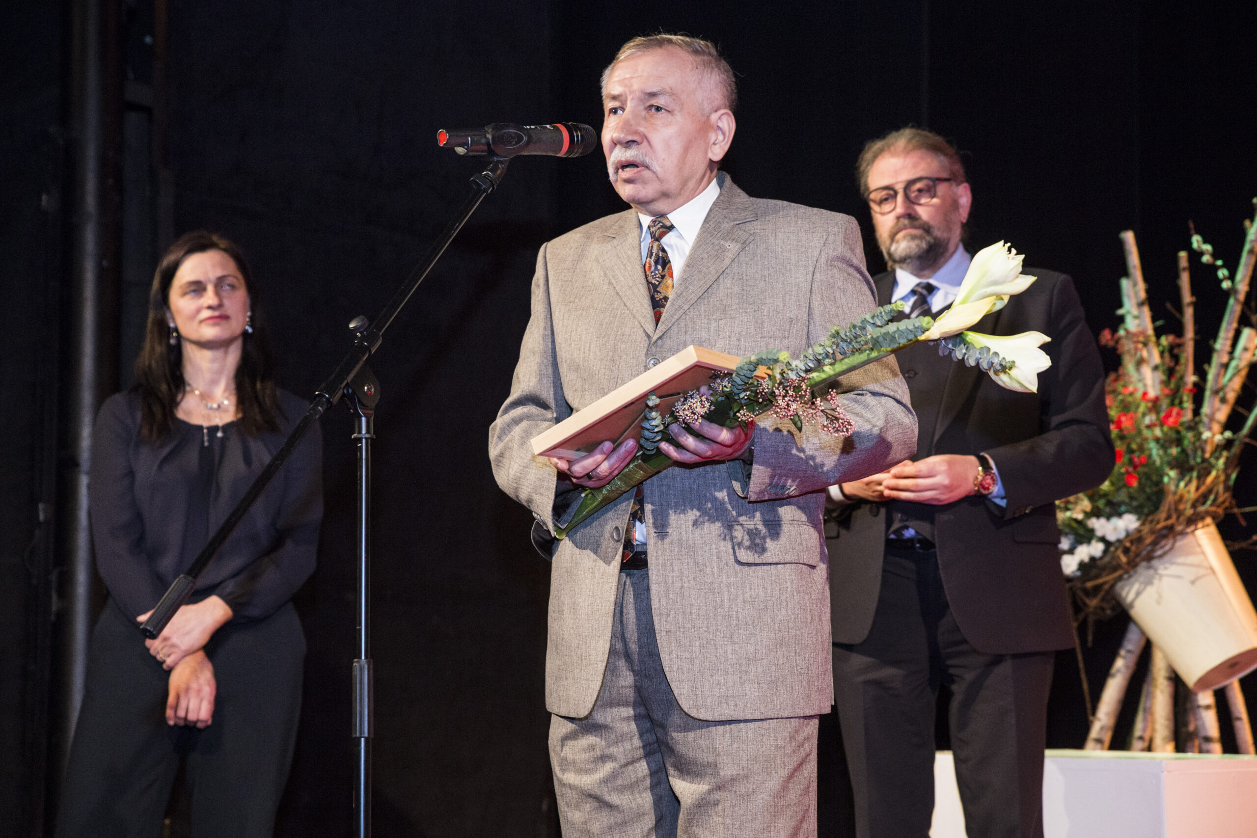 Šiek tiek daugiau nei pusantro šimto svečių talpinančioje teatro salėje buvo ankšta, pritemdytoje pavasariniais žiedais išpuoštoje scenoje švietė lakoniškas sveikinimas. Šventė atidaryta skambiomis poeto Algimanto Baltakio eilėmis „Ar daug žmogui reikia?“ Po susimąstyti priverčiančio eilėraščio vakaro vedėjas kvietė nepabijoti paspausti kaimynui ranką ir pasveikinti sulaukus gražios šventės.