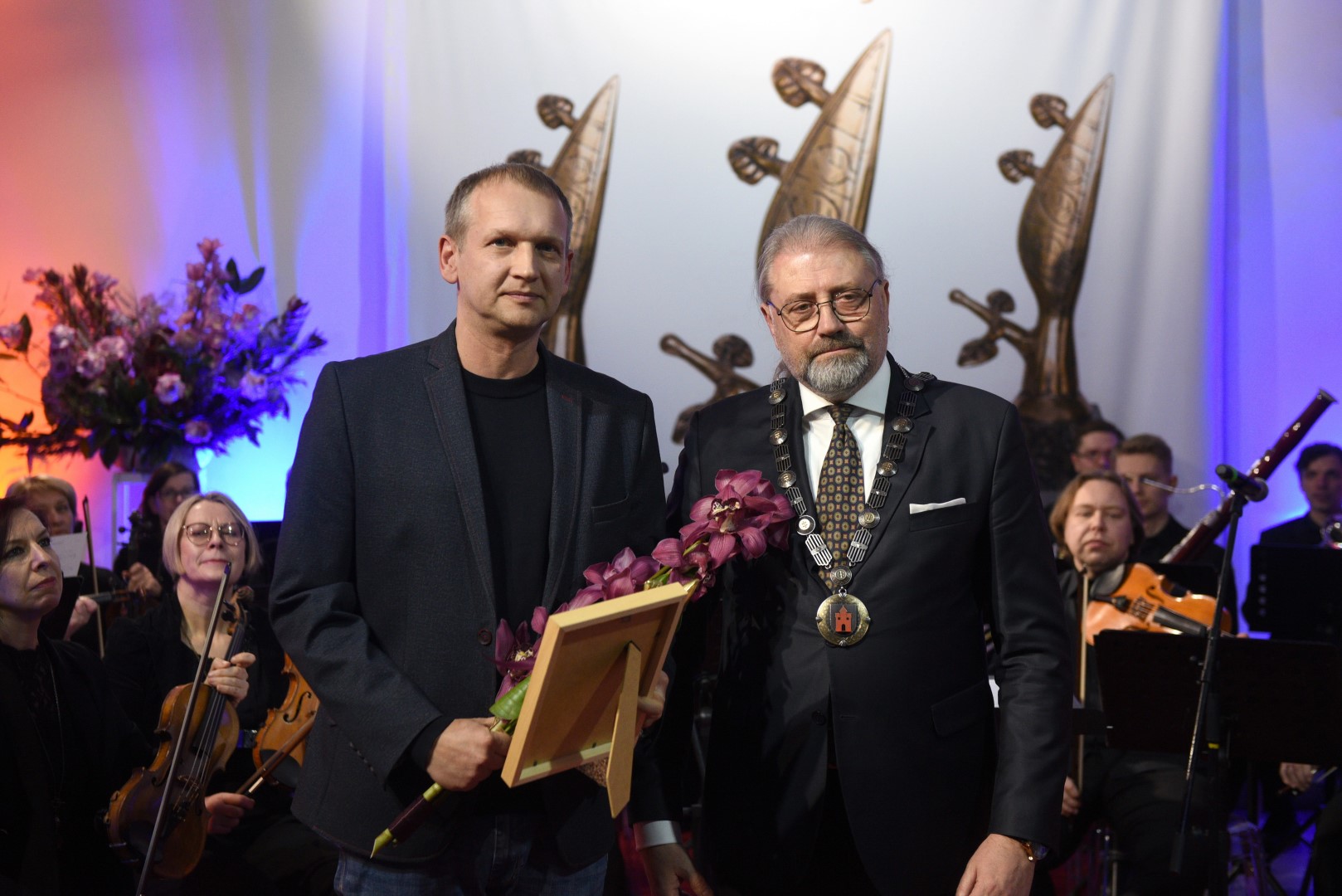 Savo darbais ir iniciatyvomis miestui nusipelniusiems penkiems panevėžiečiams įteiktos menininko Juozo Lebednyko sukurtos skulptūrėlės.