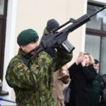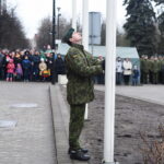 Skambant himnui, pakėlus vėliavą ir nuaidėjus šventinėms šūvių salvėmis, susirinkusius miestelėnus ir karius pasveikino miesto meras Rytis Mykolas Račkauskas.
