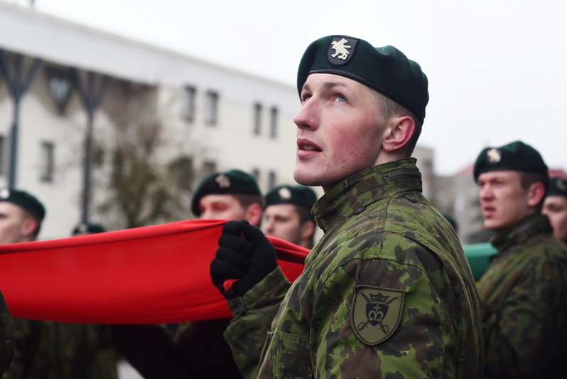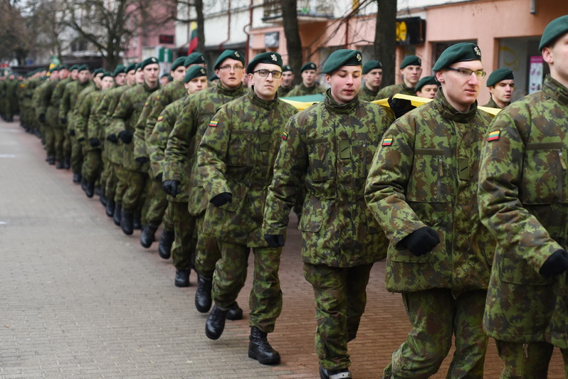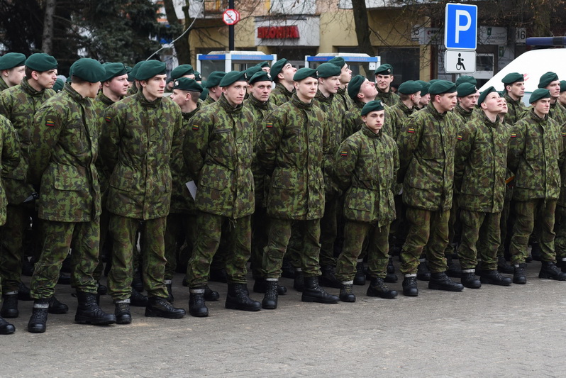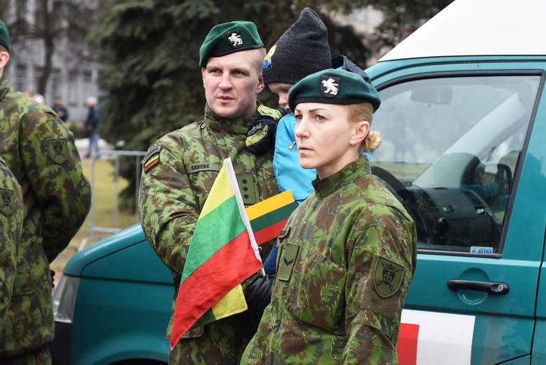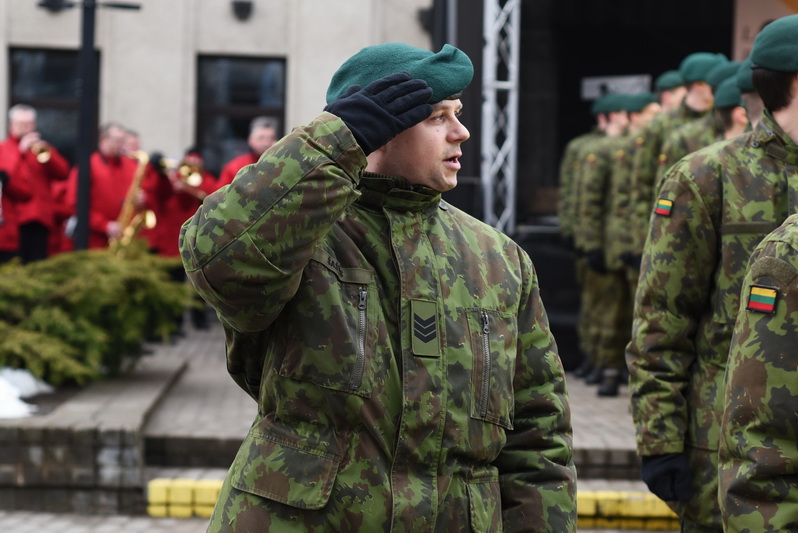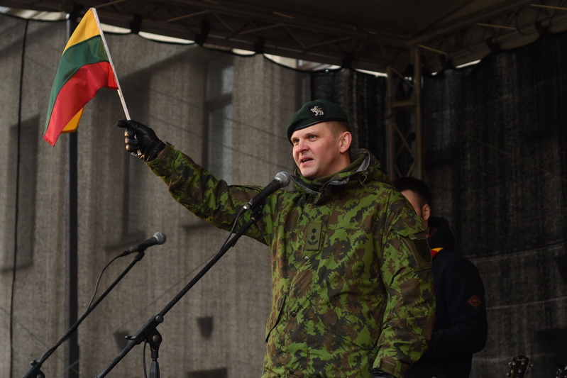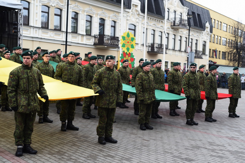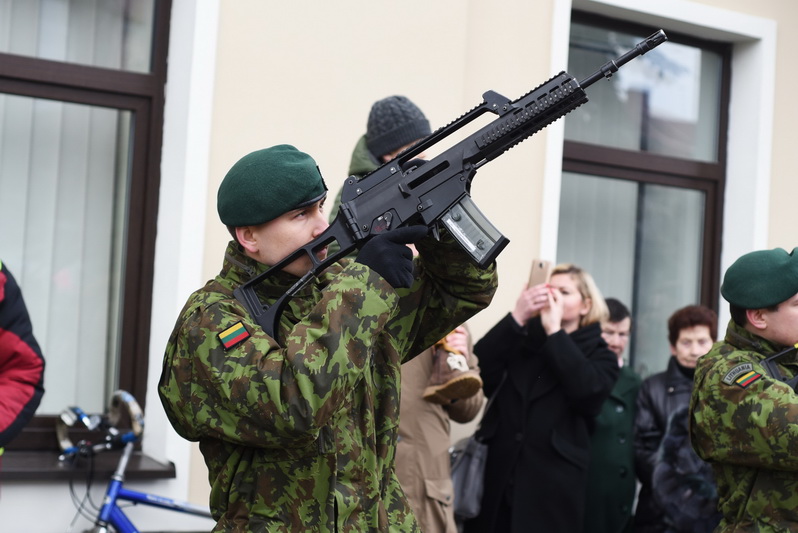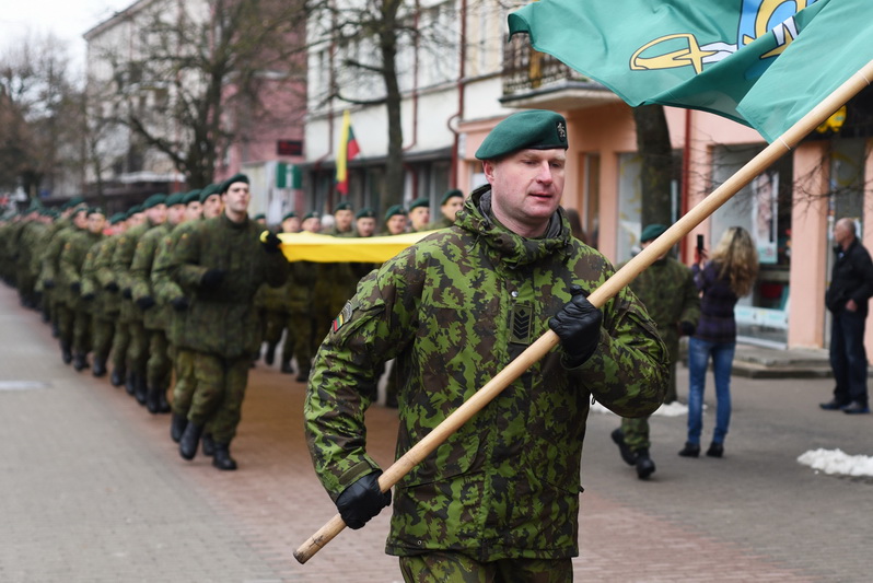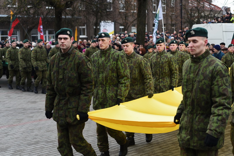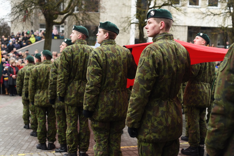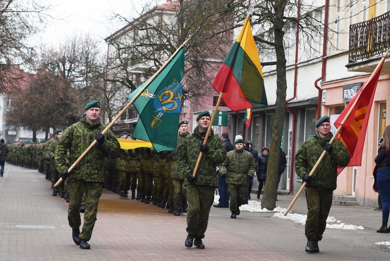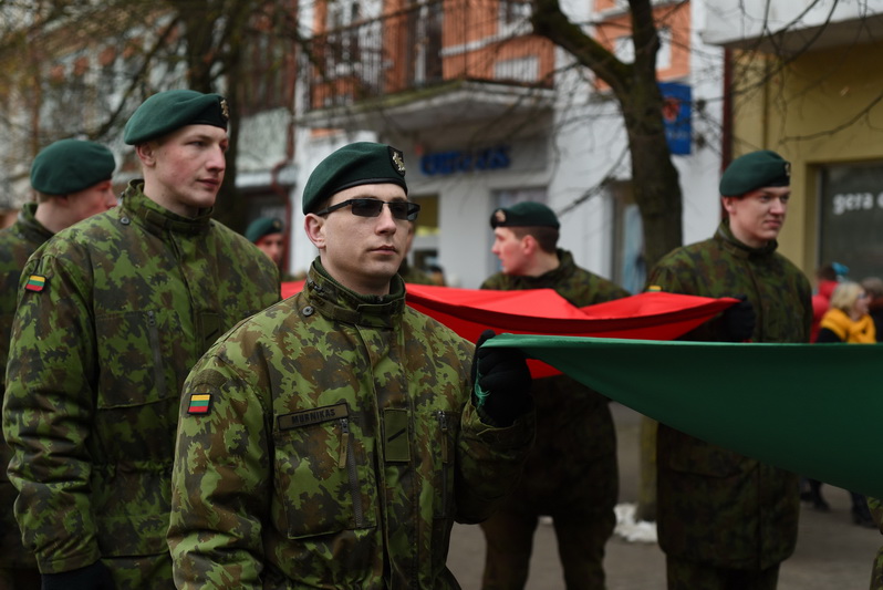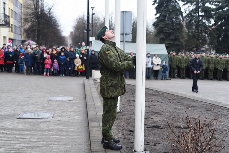 Skambant himnui, pakėlus vėliavą ir nuaidėjus šventinėms šūvių salvėmis, susirinkusius miestelėnus ir karius pasveikino miesto meras Rytis Mykolas Račkauskas.