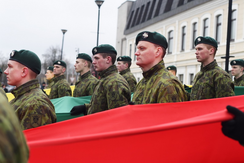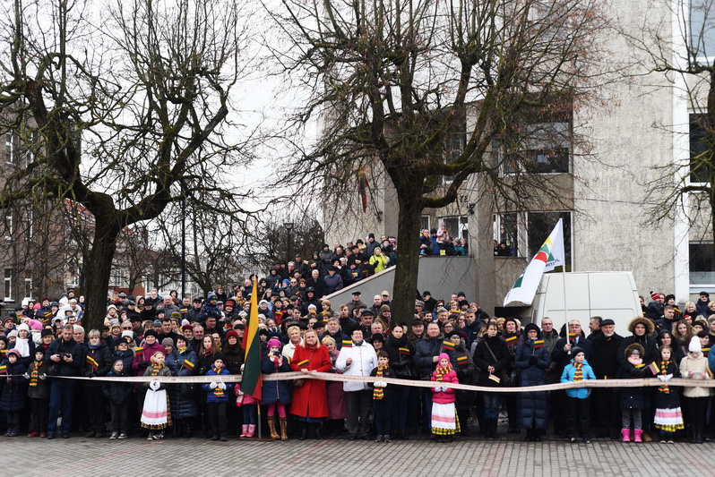 Iškilmėms prasidėjus vidurdienį, į aikštę šįkart iškilmingai buvo įnešta ne tik valstybės vėliava – kartu žengė ir Karaliaus Mindaugo husarų bataliono kariai su Trispalvės spalvų juostomis, kuriomis nešini prieš tai apibėgo simbolinį ratą už laisvę.