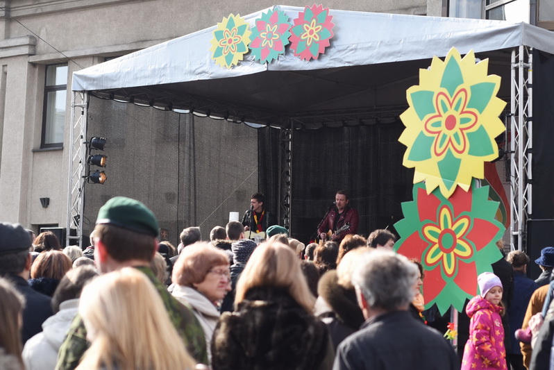 Dar nebuvo nė pusiaudienio, kai į Laisvės aikštę pradėjo rinktis minios žmonių, pasipuošusių Lietuvos spalvomis: kas nešinas vėliavėlėmis, kas Trispalvės spalvų šaliais ar papuošalais, kas išsidažę veidus.