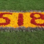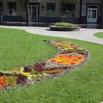O prieš Savivaldybę ant vejos menininkai iš lauko žiedų ir žalumynų sukomponavo itin spalvingą tautinę juostą.