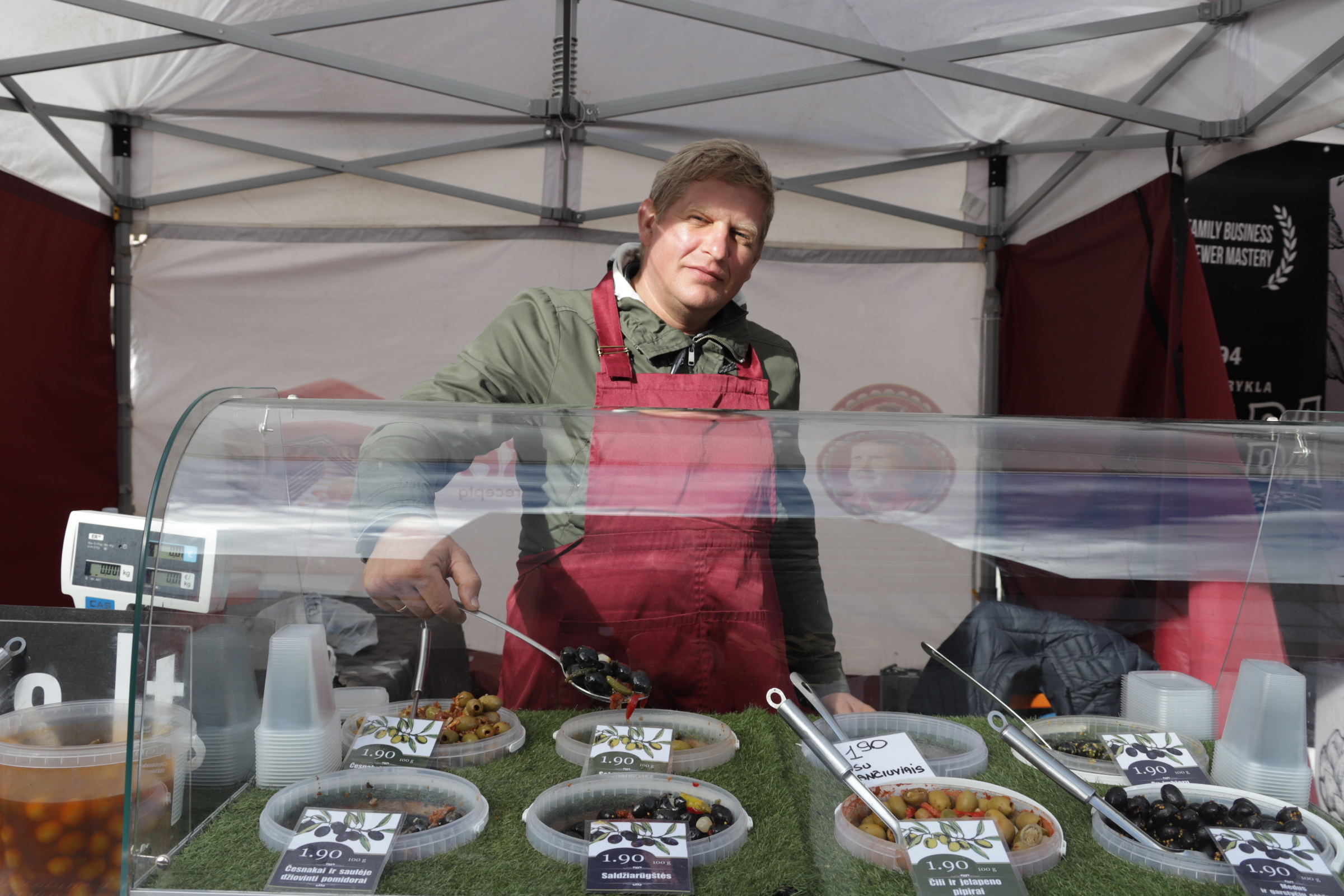 Vytautas stoviniavo ir prie žuvies pardavėjų, ir prie pyragų, neaplenkė ir mugėje dalyvavusios gyvūnų globos organizacijos palapinės.