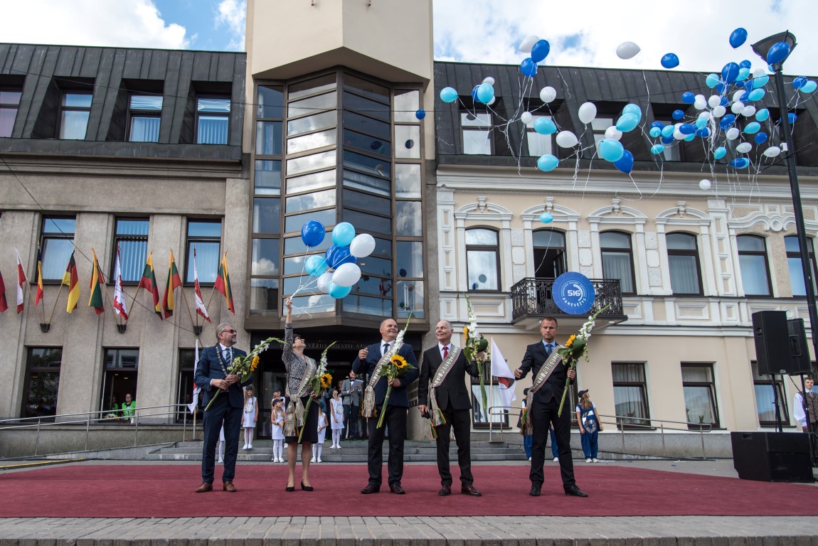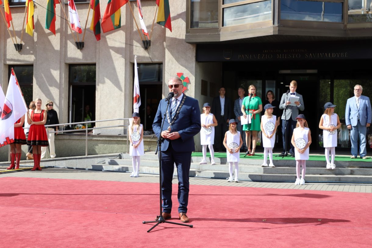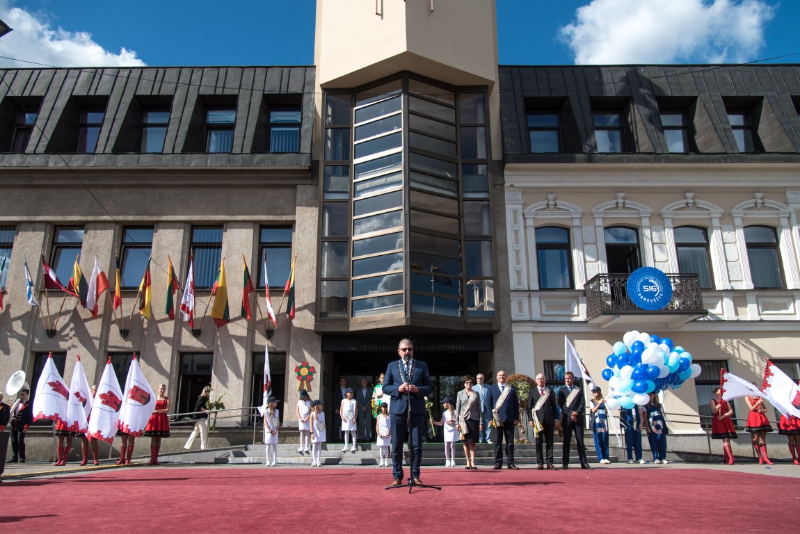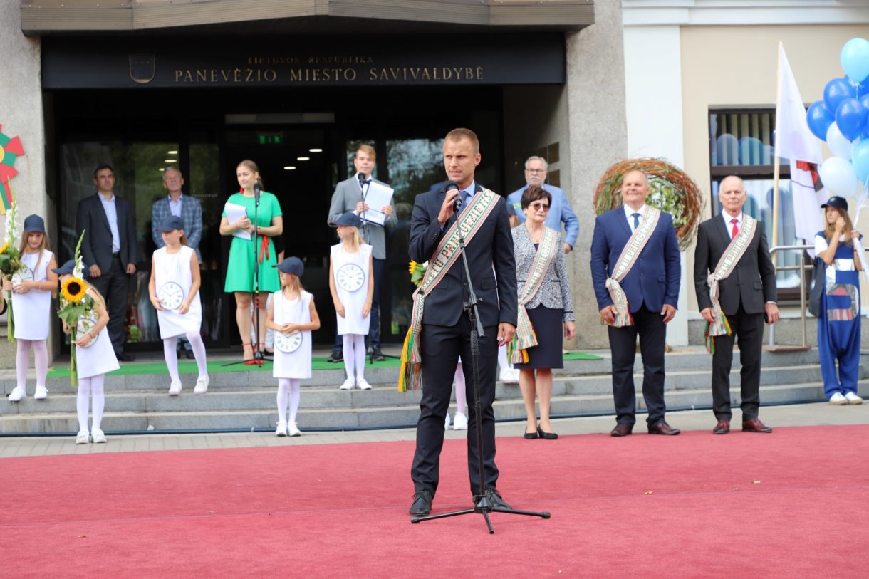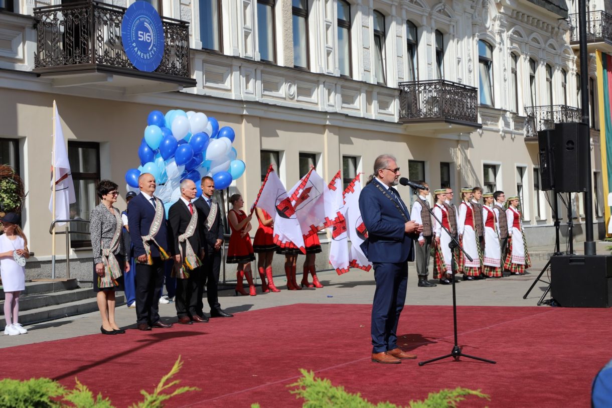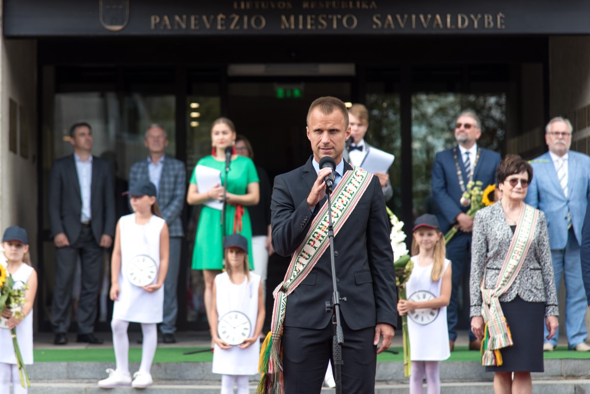 „Panevėžys turi turtingą – daugiau nei pusės tūkstantmečio – istoriją. Didžiuojamės, kad per tuos penkis su viršum šimtmečius Panevėžys ir panevėžiečiai paliko reikšmingą pėdsaką svarbiausiuose Lietuvos istorijos įvykiuose. Šiandien mes rašome Panevėžio istoriją. Statome veržlų, patrauklų miestą mums ir mūsų vaikams“, – susirinkusiuosius sveikino miesto meras Rytis Račkauskas.
