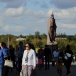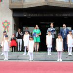 Vaikai prie kunigaikščio Aleksandro, pirmą kartą paminėjusio Panevėžio vardą, paminklo nunešė gėlių.