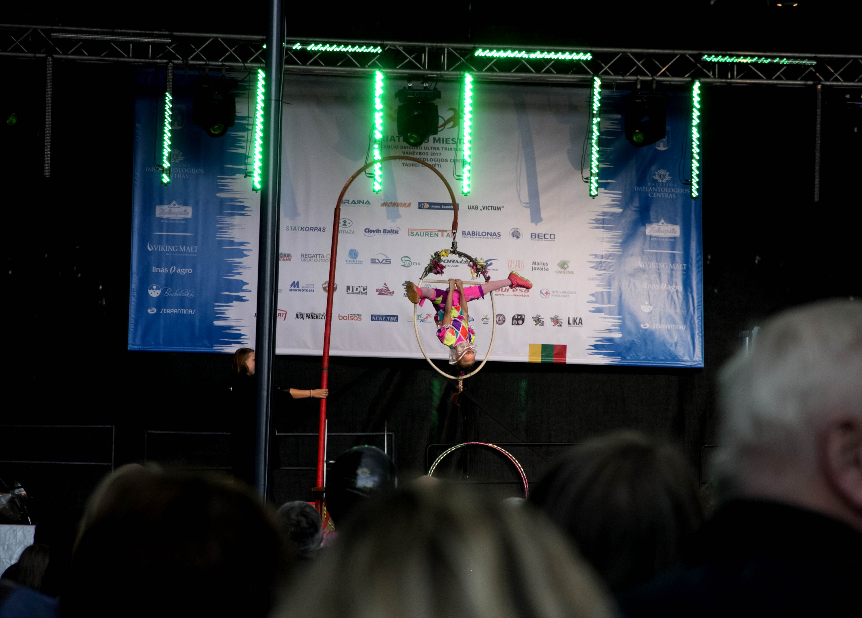 Kol Pasaulio dvigubame ultratriatlone dalyvaujantys sportininkai varžėsi rungtyse, miestiečiai – kas su šeimomis, kas su draugais, kas pavieniui – rinkosi ir į šventinę programą. Prie Kultūros ir poilsio parko susibūrę panevėžiečiai klausėsi būgnininkės Julijos Jevtušenkaitės, Tito ir Beno dueto pasirodymų.