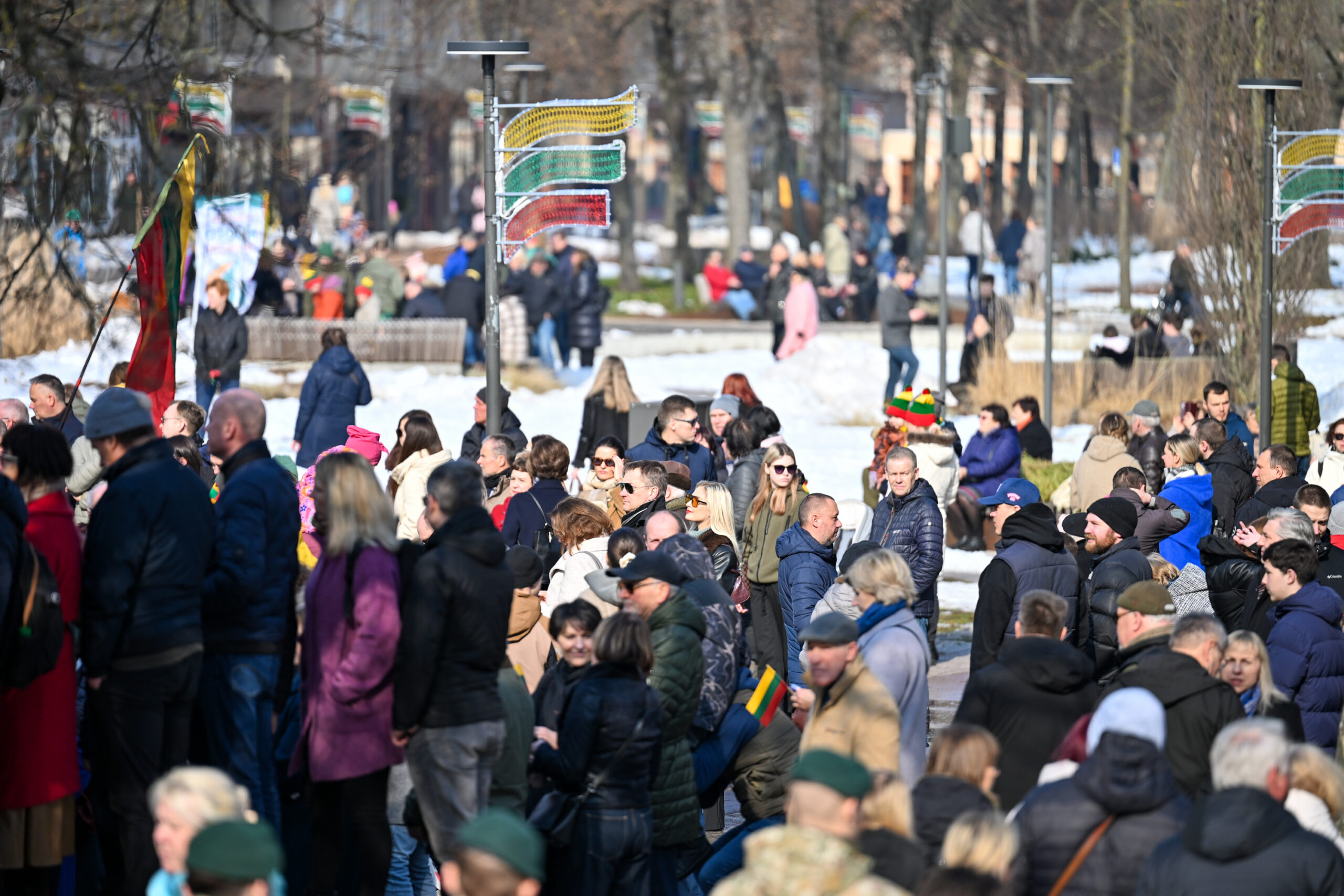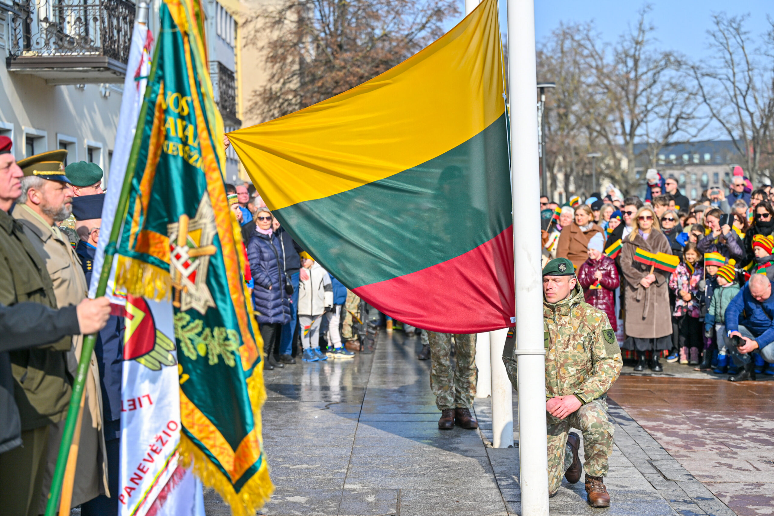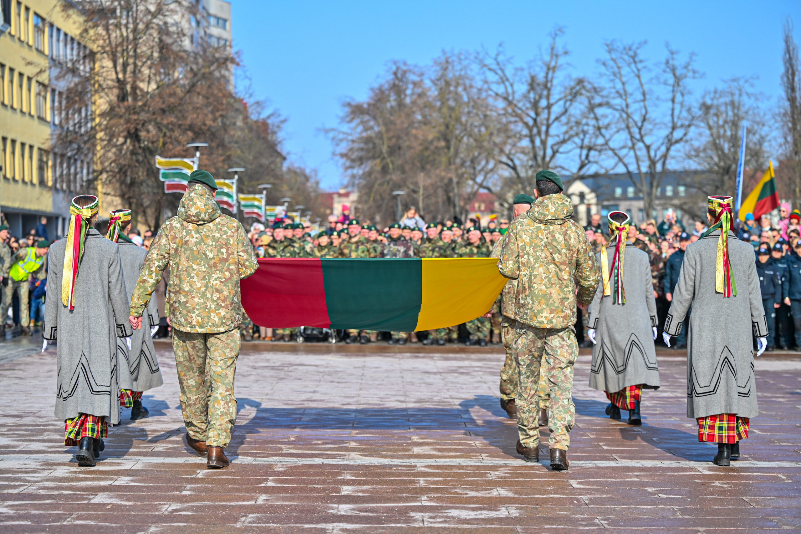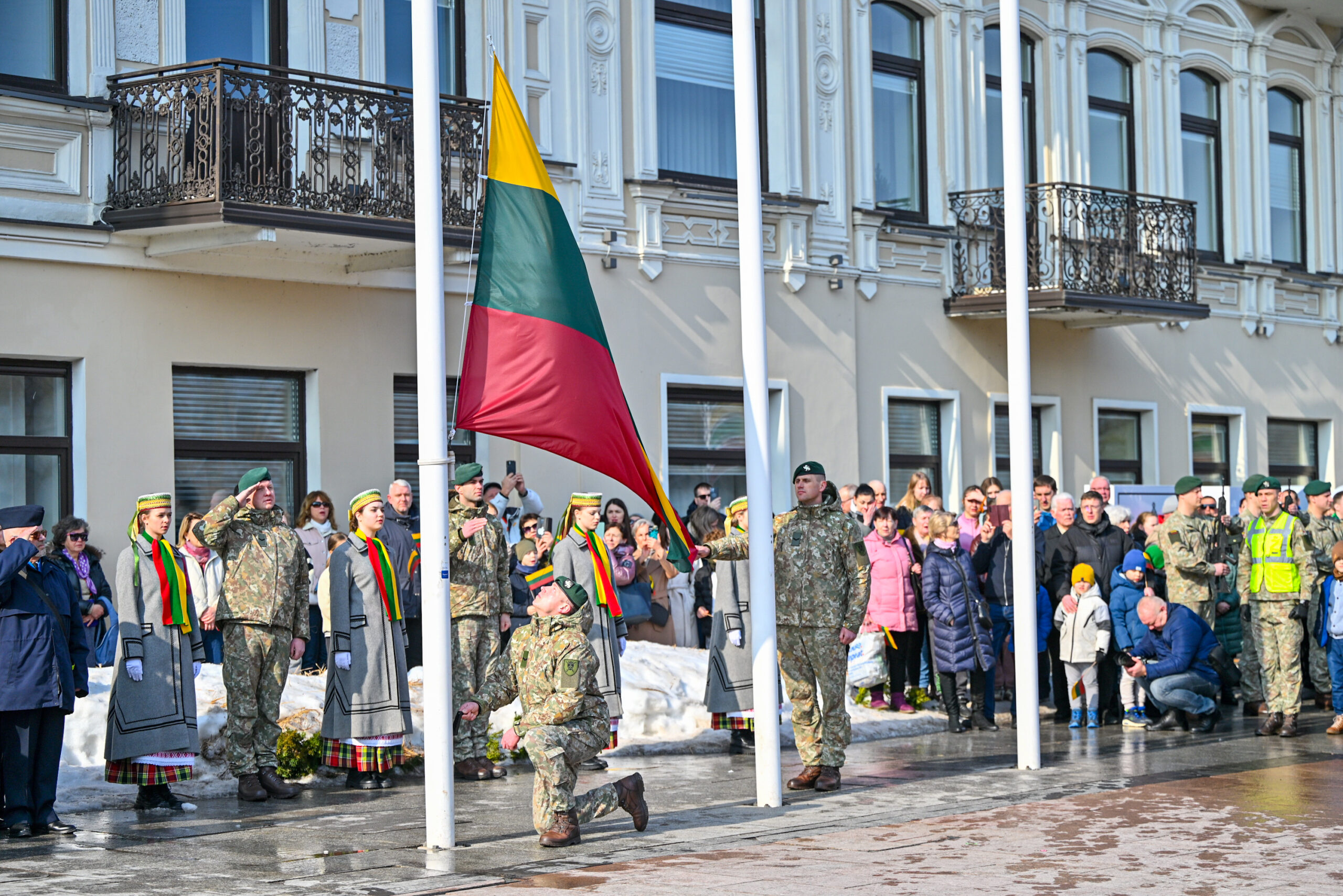 Vidurdienį Laisvės aikštėje iškilmingai pakelta valstybinė vėliava. Ceremonijos metu Karaliaus Mindaugo husarų bataliono kariai pagerbė valstybę ir jos žmones trimis salvėmis – už Lietuvos žmones, už Tėvynę Lietuvą ir už Laisvės gynėjus.
