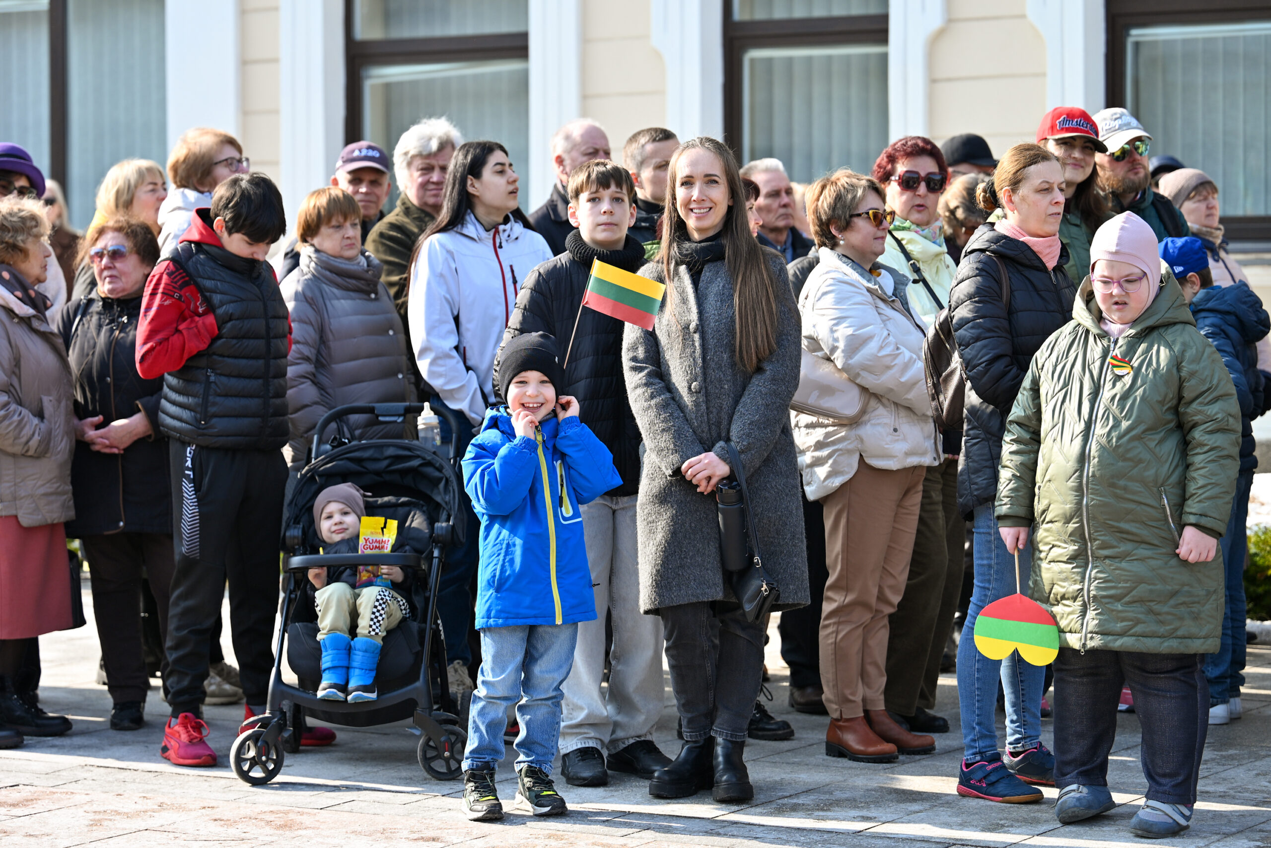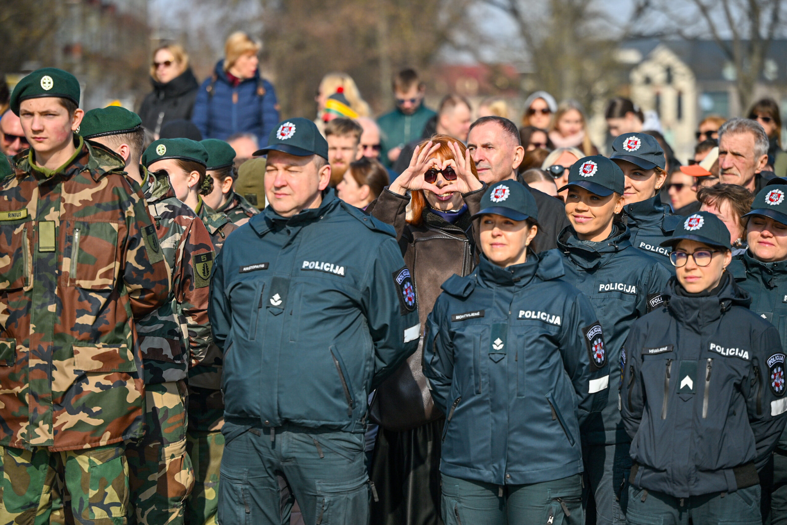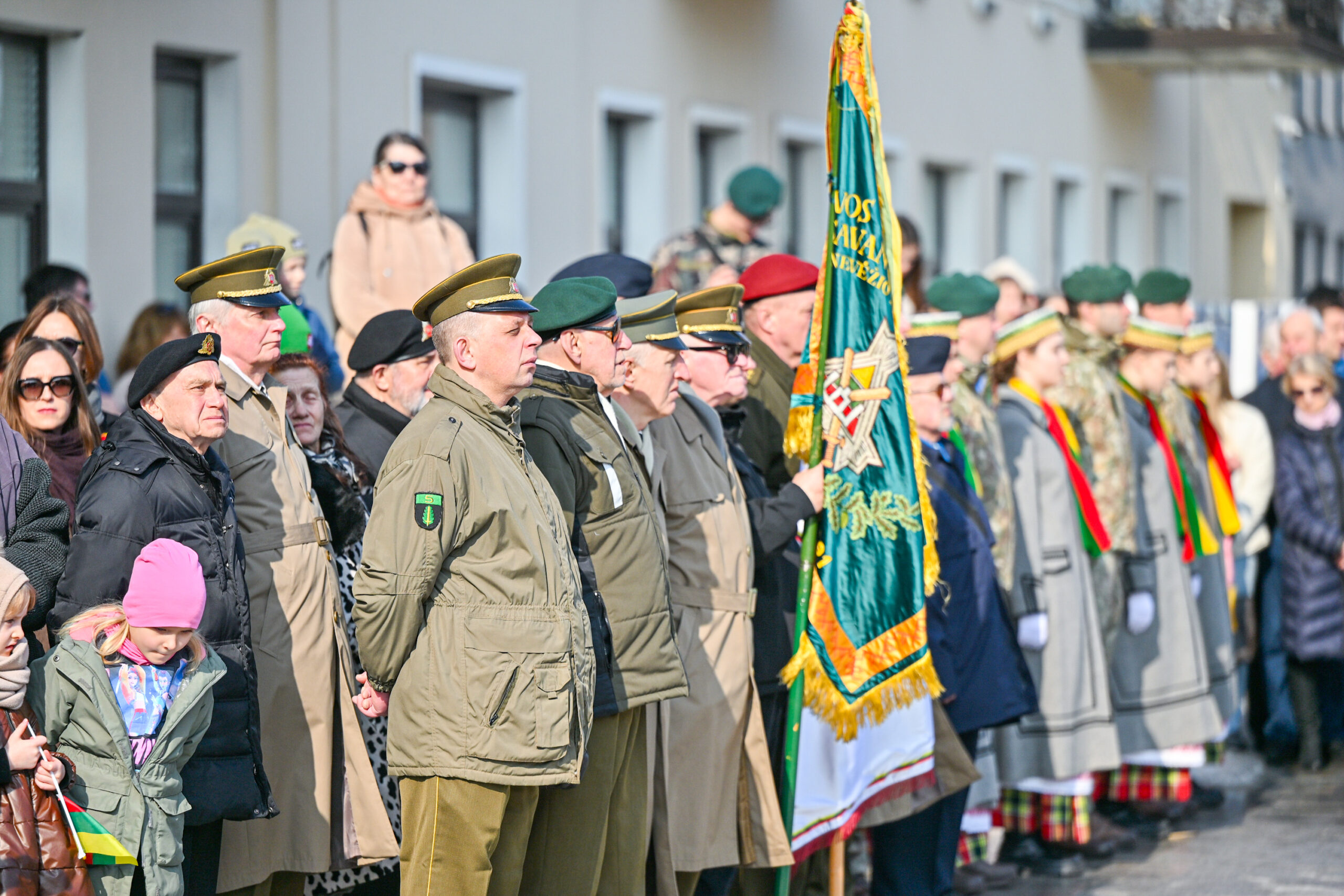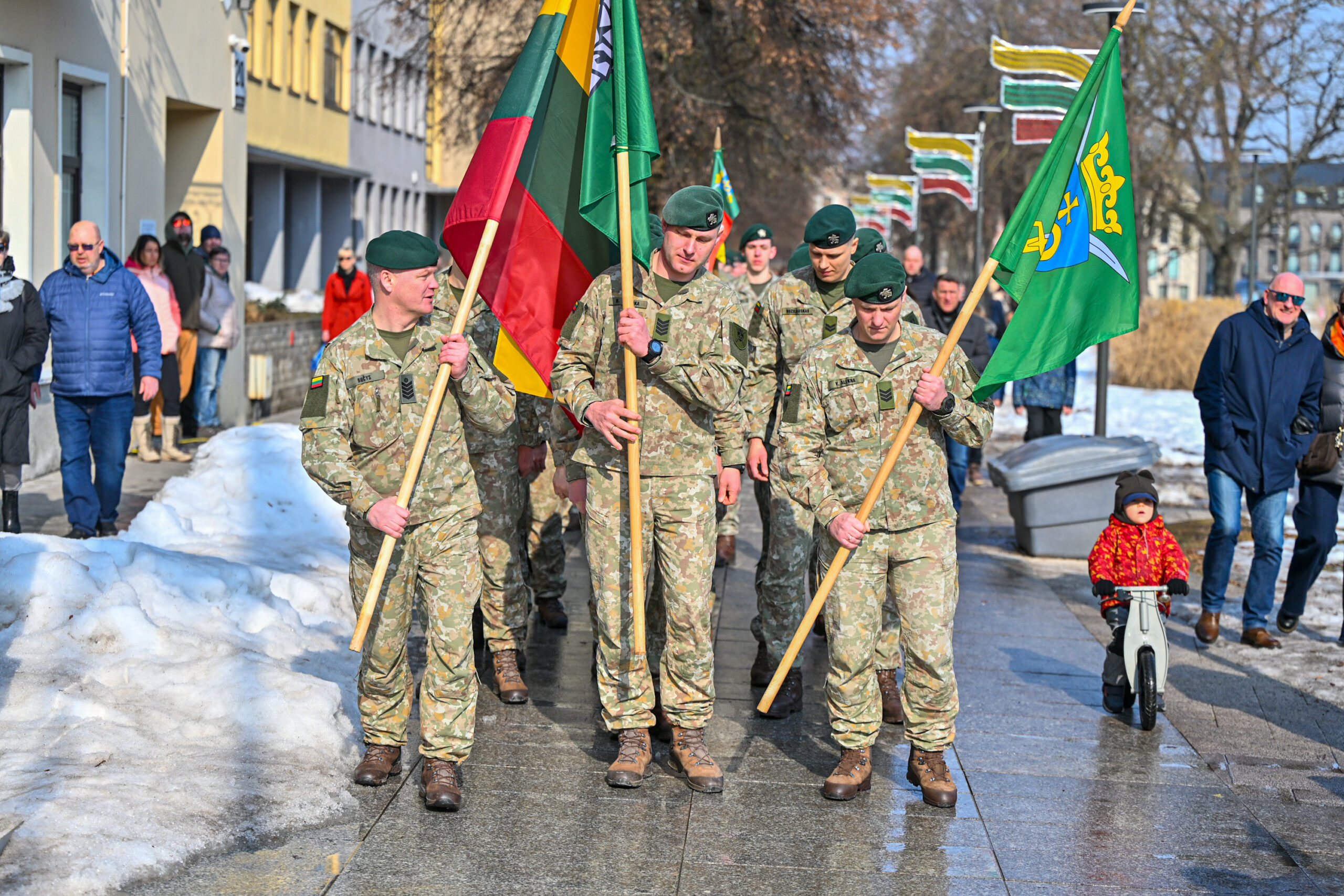 Vidurdienį Laisvės aikštėje iškilmingai pakelta valstybinė vėliava. Ceremonijos metu Karaliaus Mindaugo husarų bataliono kariai pagerbė valstybę ir jos žmones trimis salvėmis – už Lietuvos žmones, už Tėvynę Lietuvą ir už Laisvės gynėjus.