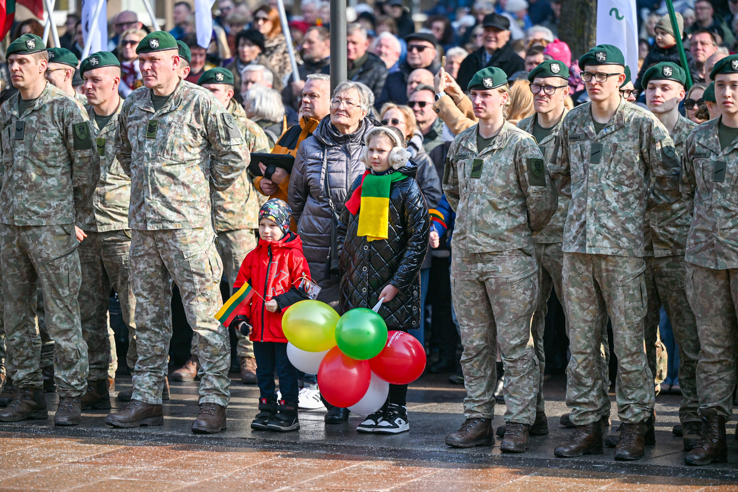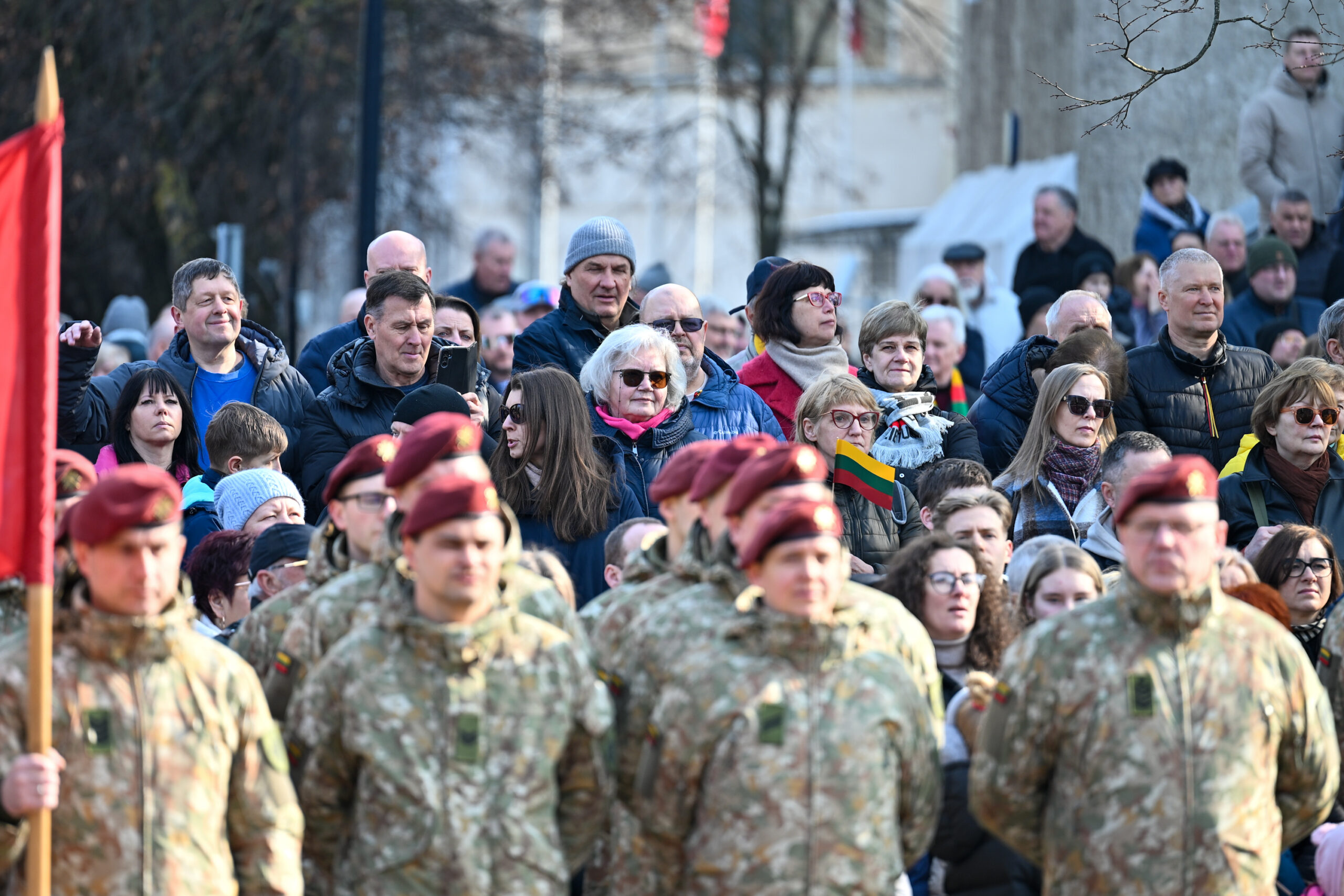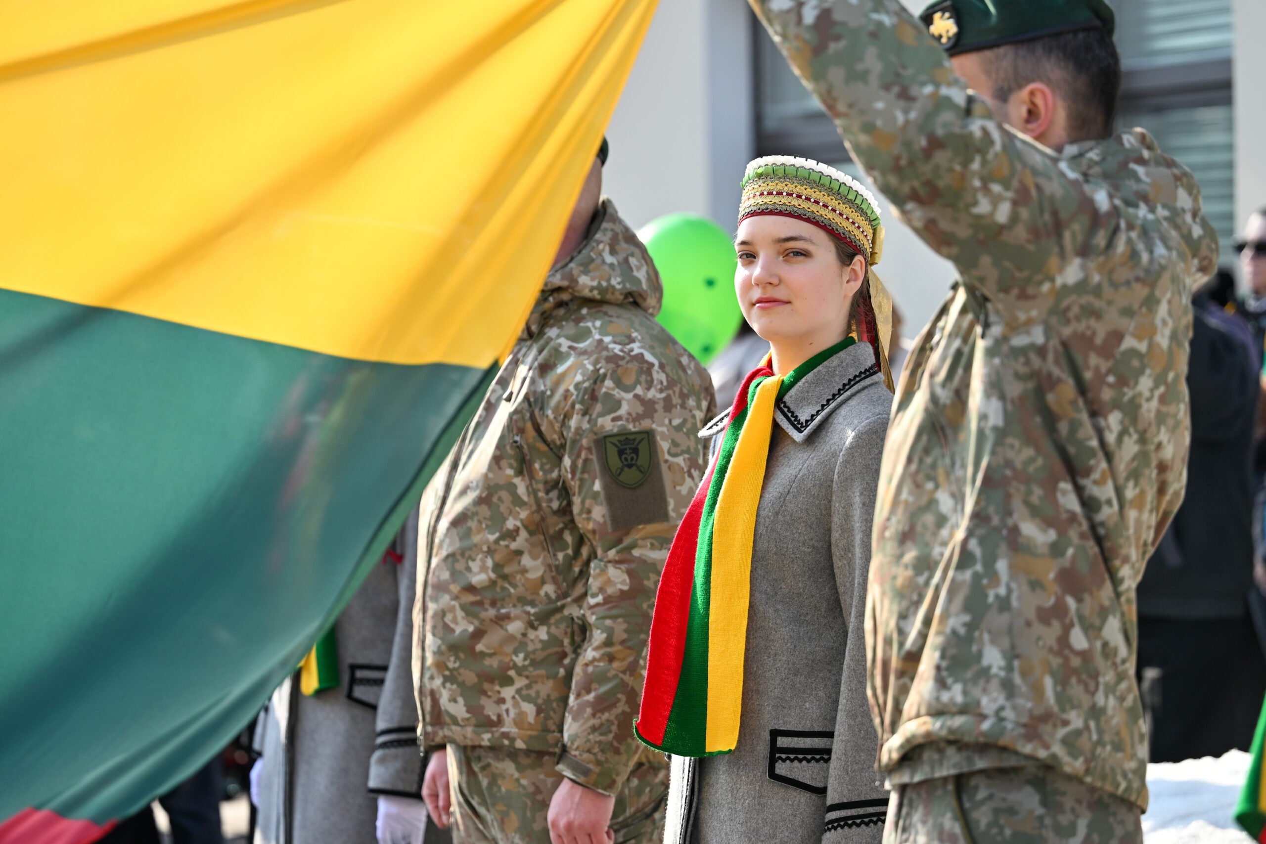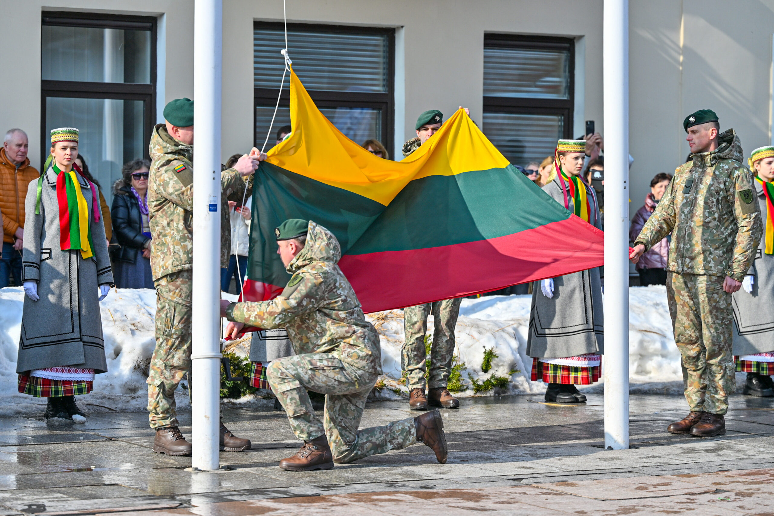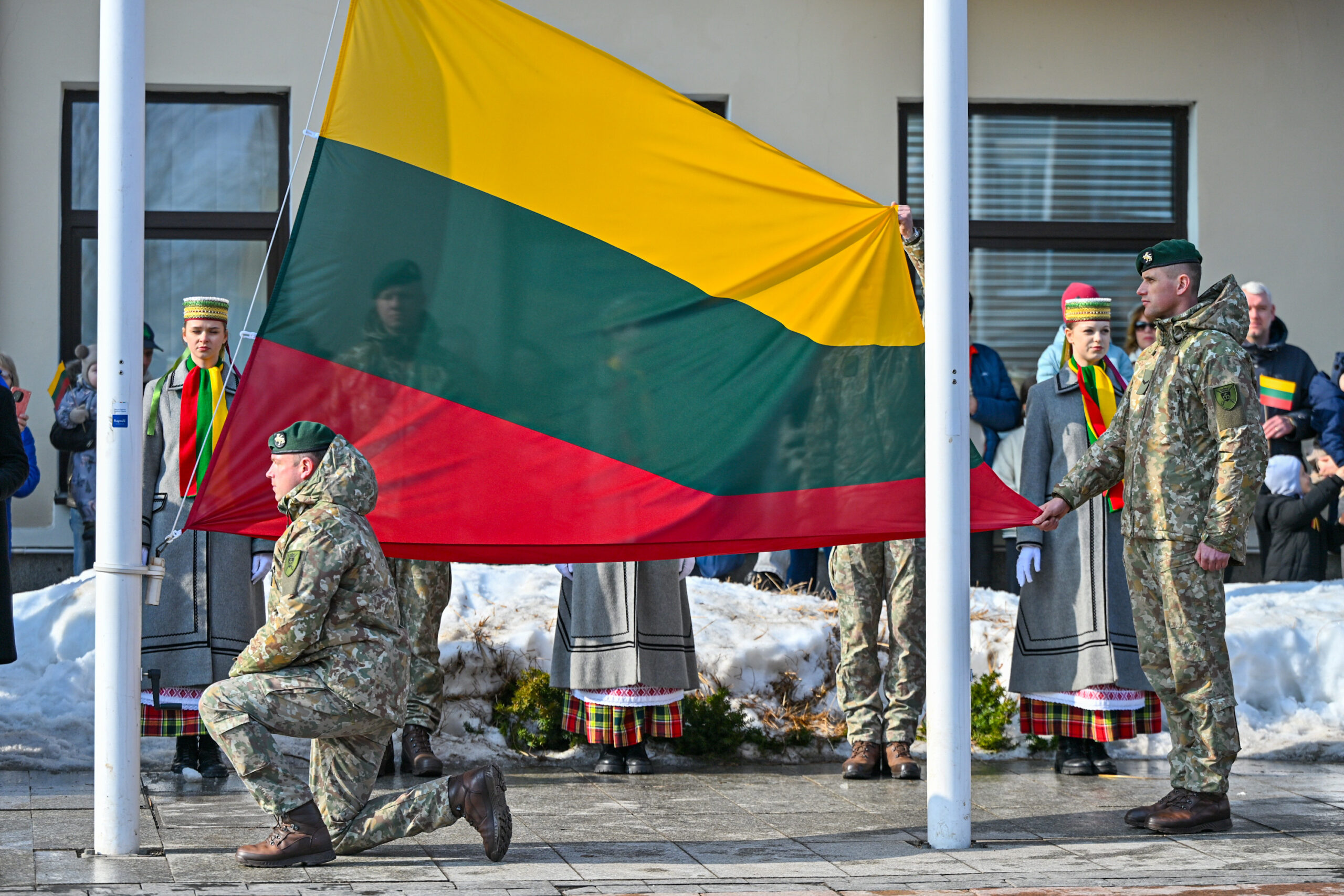Vidurdienį Laisvės aikštėje iškilmingai pakelta valstybinė vėliava. Ceremonijos metu Karaliaus Mindaugo husarų bataliono kariai pagerbė valstybę ir jos žmones trimis salvėmis – už Lietuvos žmones, už Tėvynę Lietuvą ir už Laisvės gynėjus.