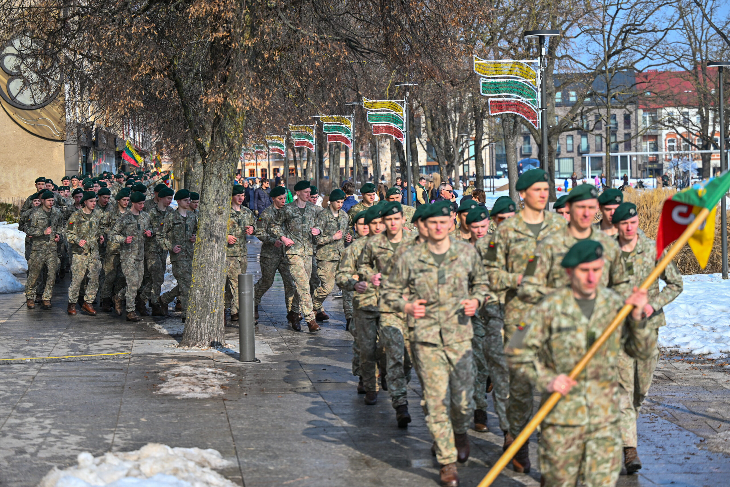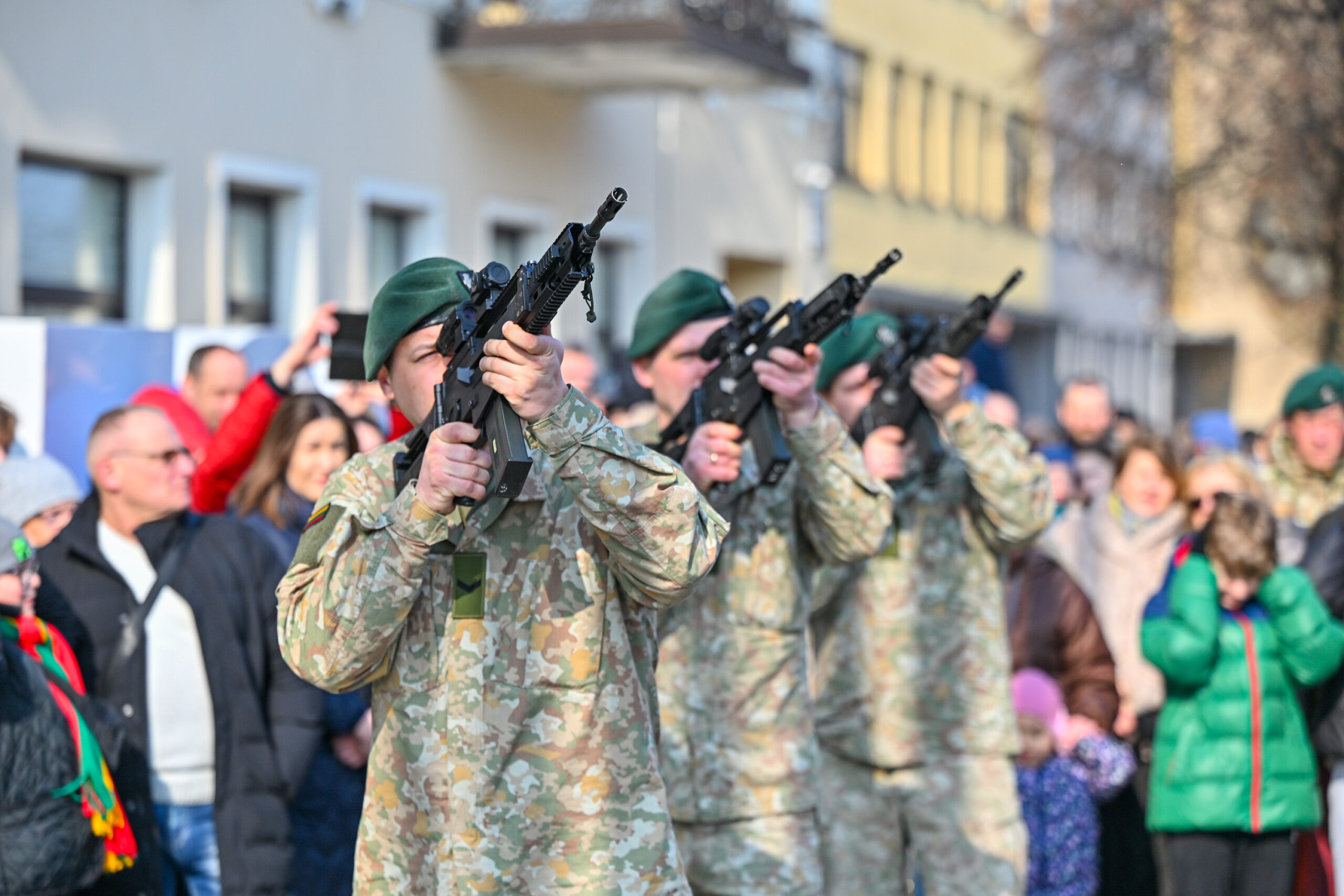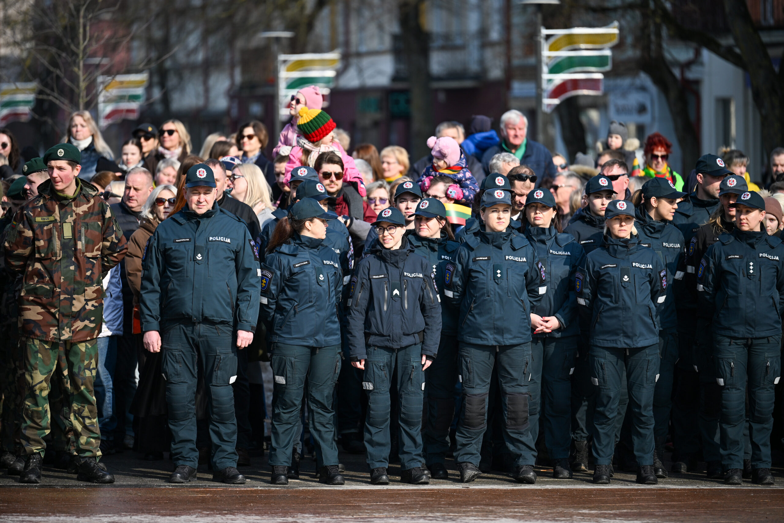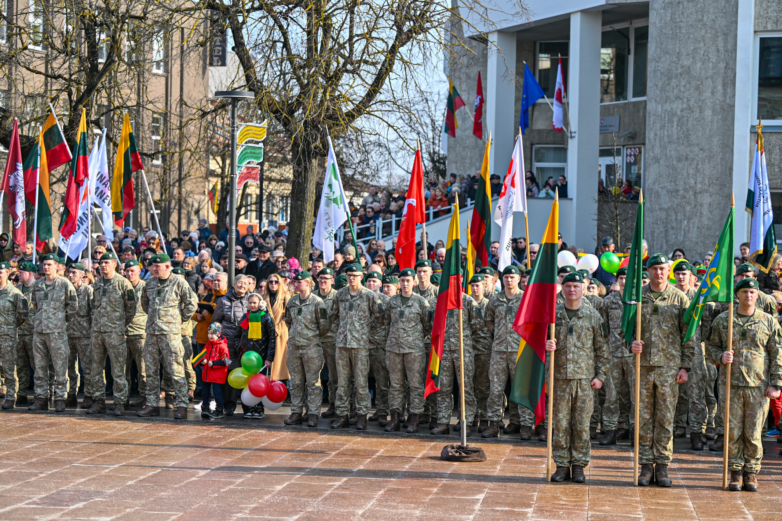Vidurdienį Laisvės aikštėje iškilmingai pakelta valstybinė vėliava. Ceremonijos metu Karaliaus Mindaugo husarų bataliono kariai pagerbė valstybę ir jos žmones trimis salvėmis – už Lietuvos žmones, už Tėvynę Lietuvą ir už Laisvės gynėjus.