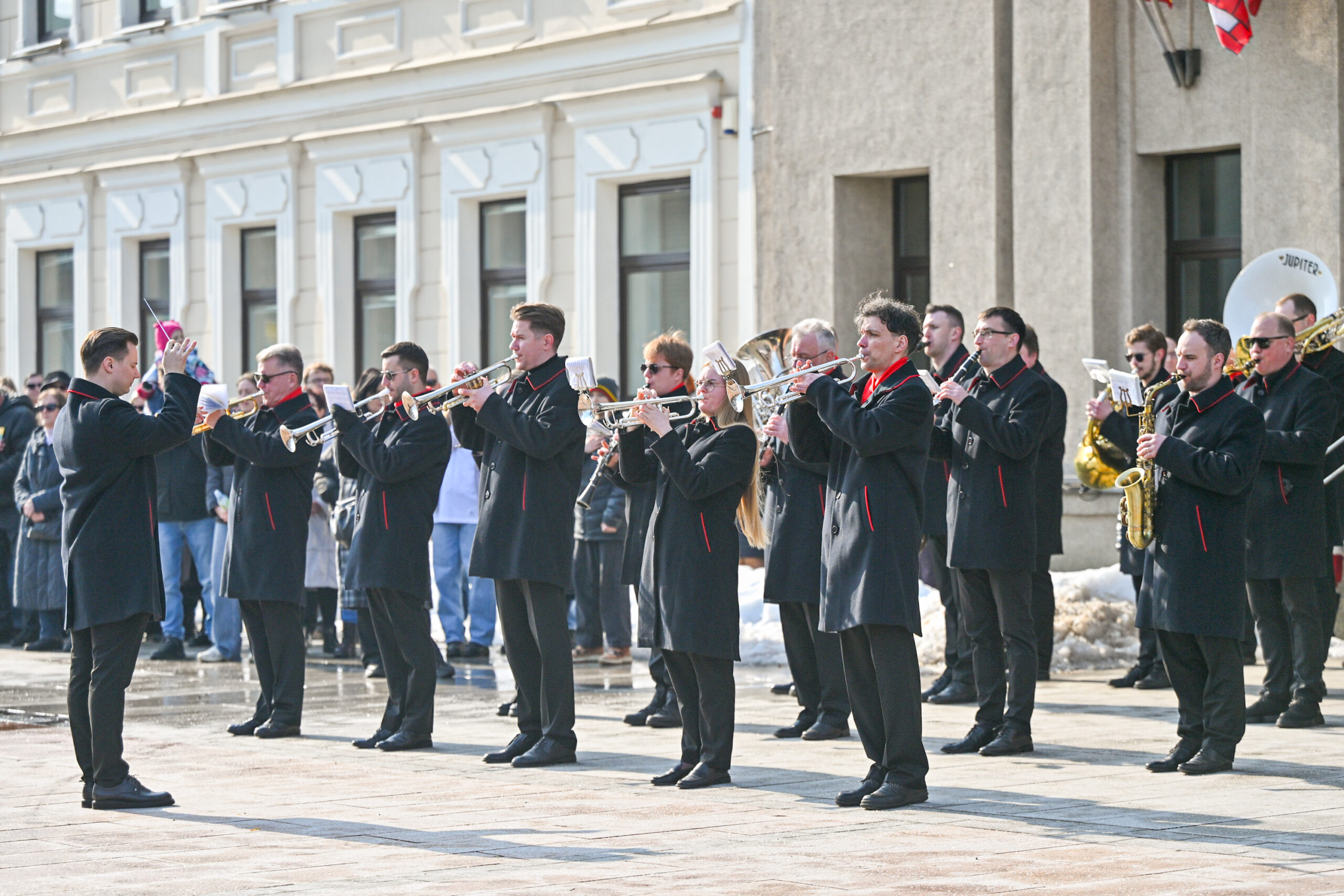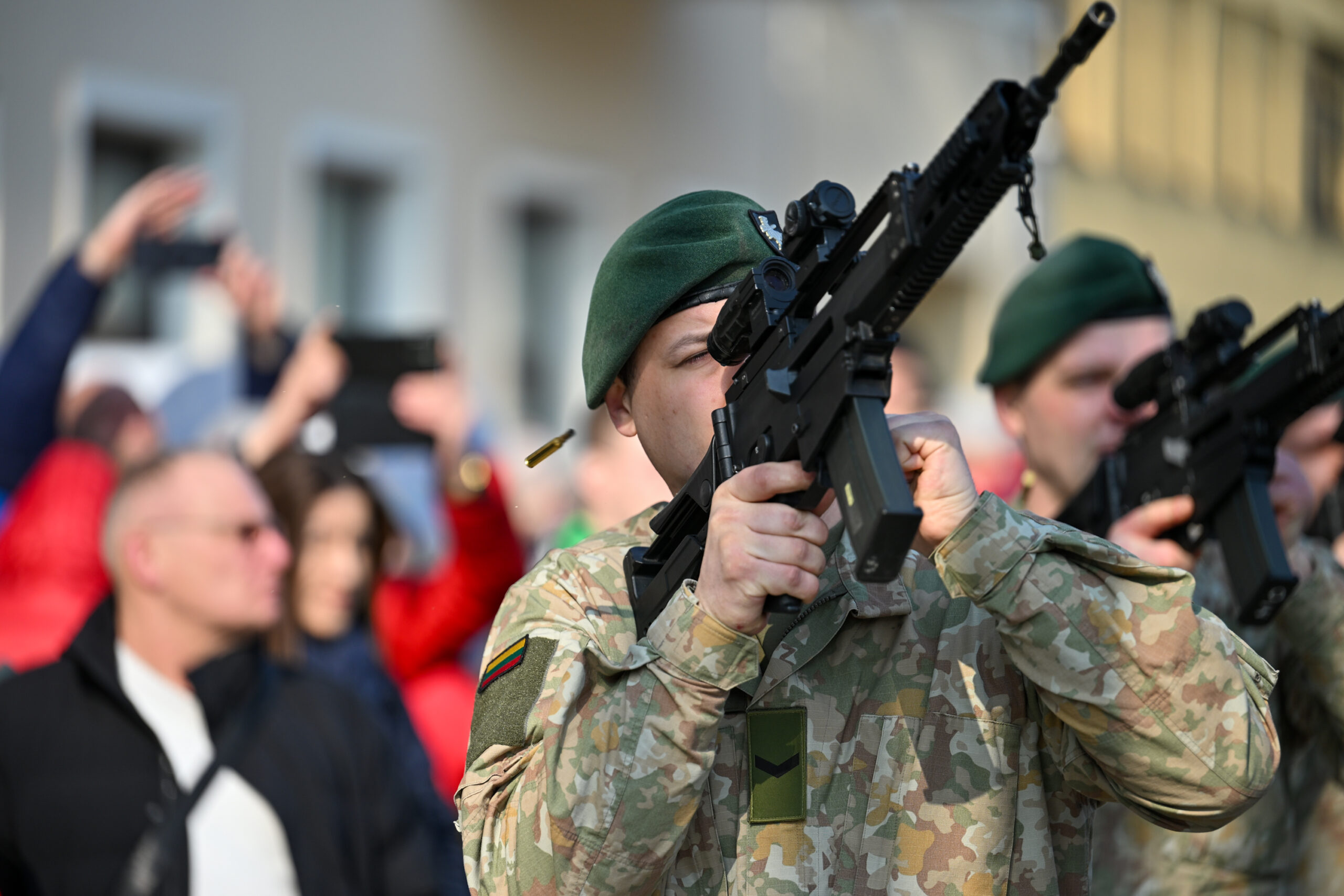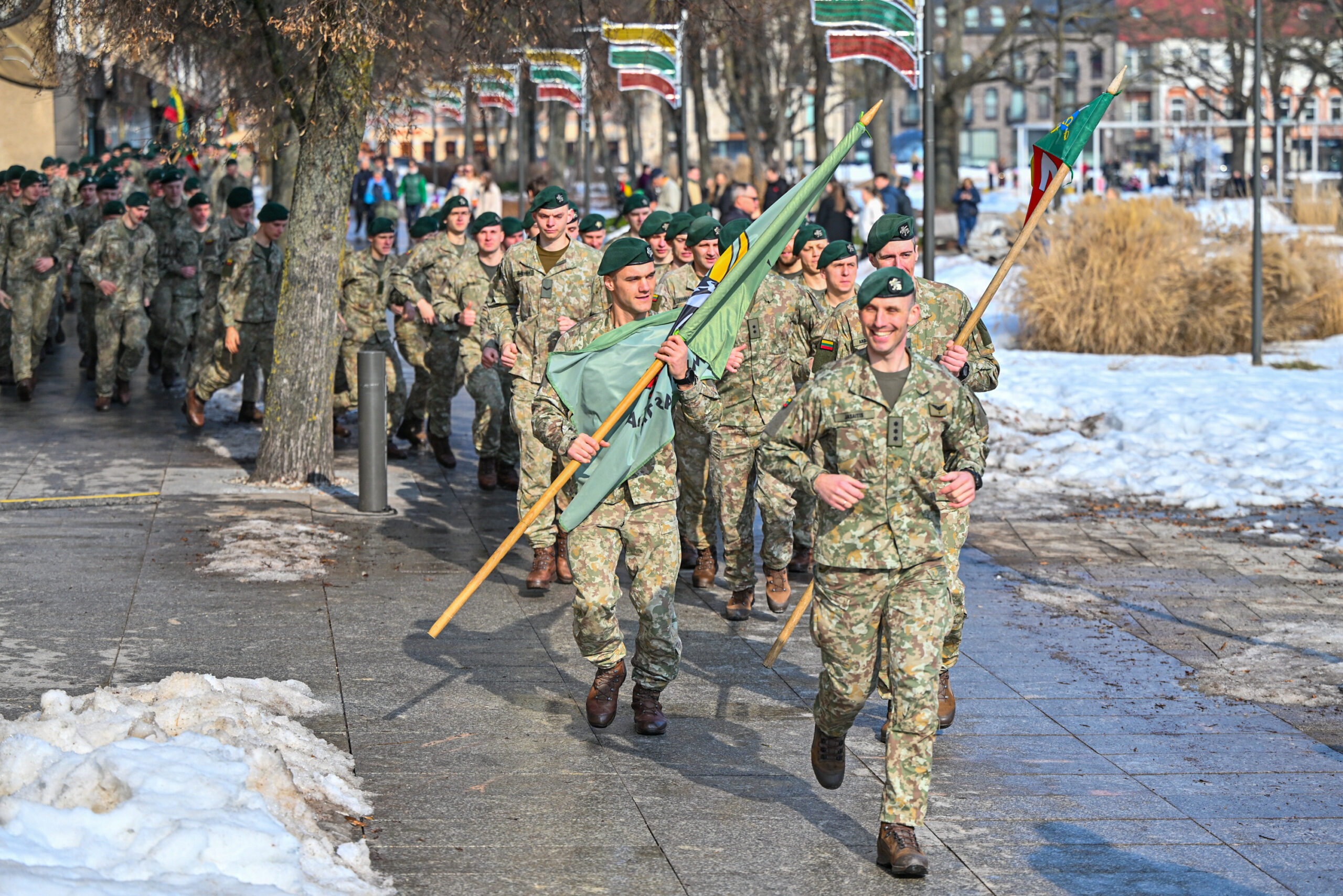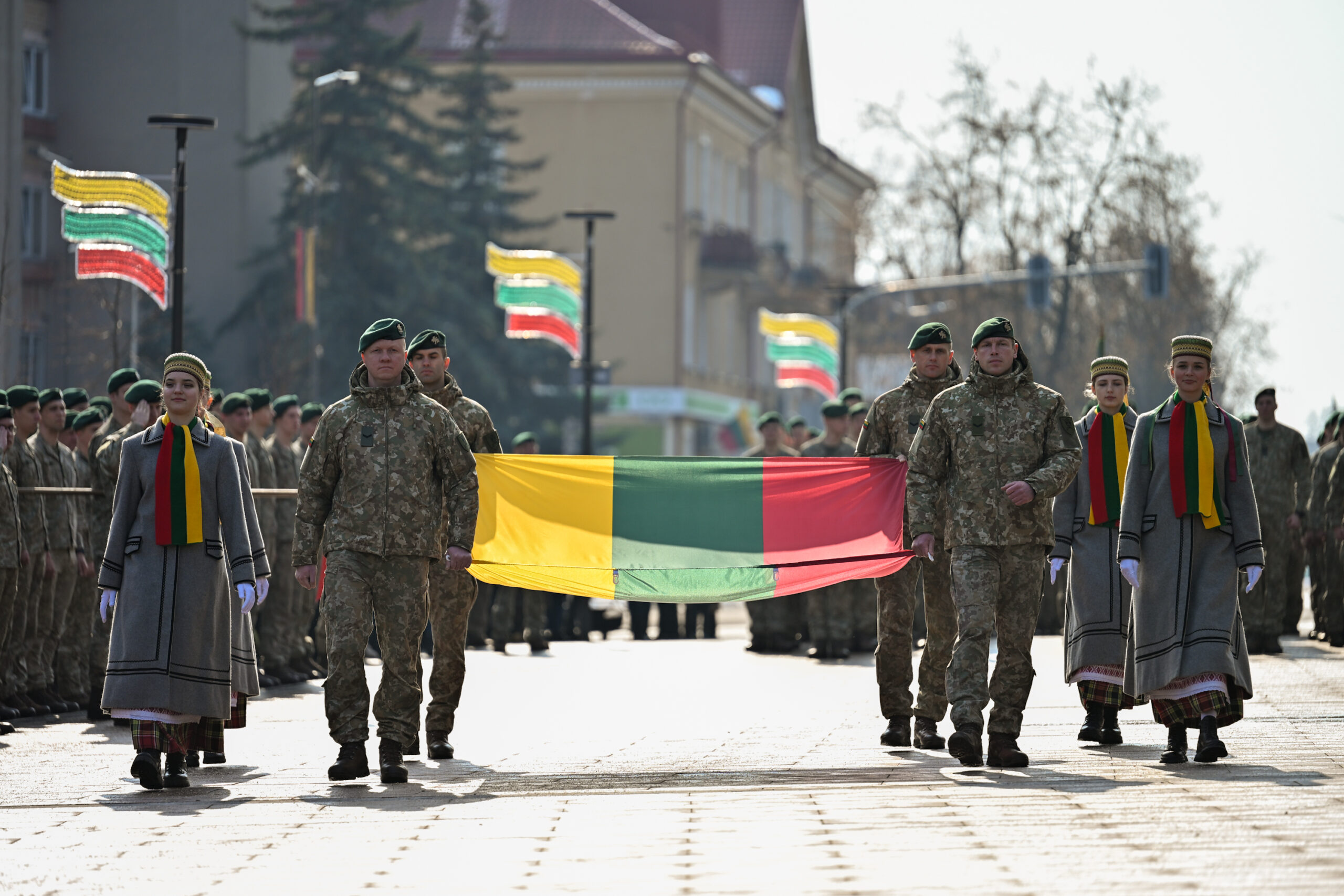 Vidurdienį Laisvės aikštėje iškilmingai pakelta valstybinė vėliava. Ceremonijos metu Karaliaus Mindaugo husarų bataliono kariai pagerbė valstybę ir jos žmones trimis salvėmis – už Lietuvos žmones, už Tėvynę Lietuvą ir už Laisvės gynėjus.