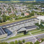 Prekybos parko viduje suprojektuotas uždaras kiemelis pirkėjų automobiliams, jame bus ir elektromobilių įkrovos stotelės.