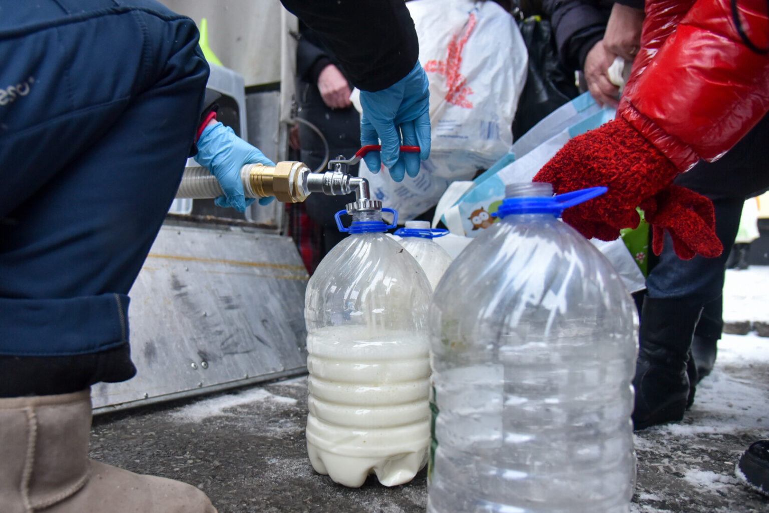 Prie jos atvežtos pieno cisternos nusidriekdavo ilgiausios eilės. Miestiečiai naminio pieno ėjo nešini net penkialitriais indais, ir net ne po vieną.