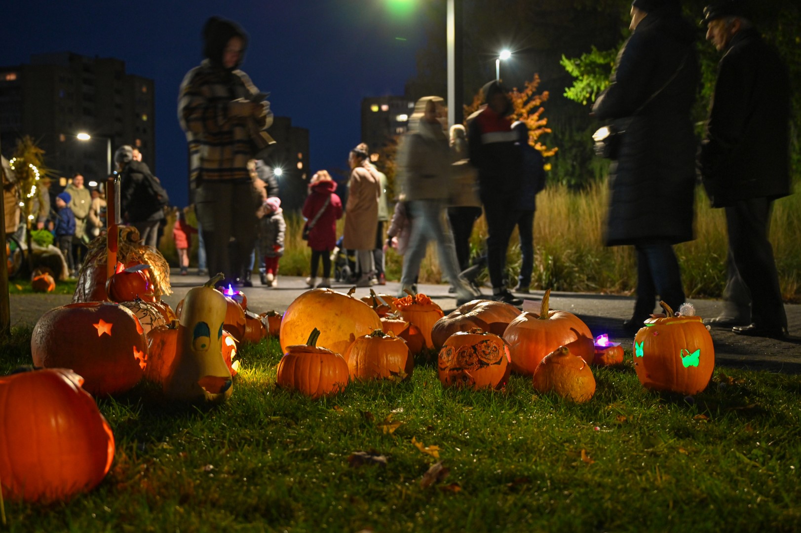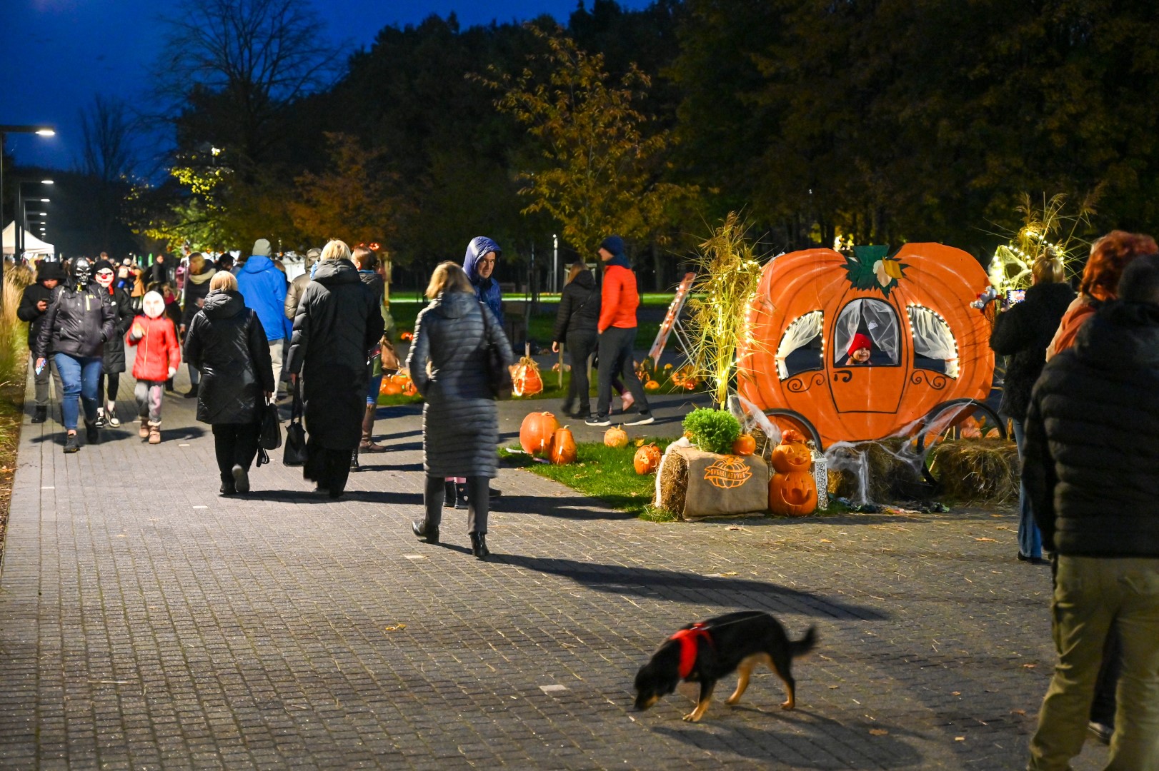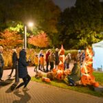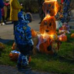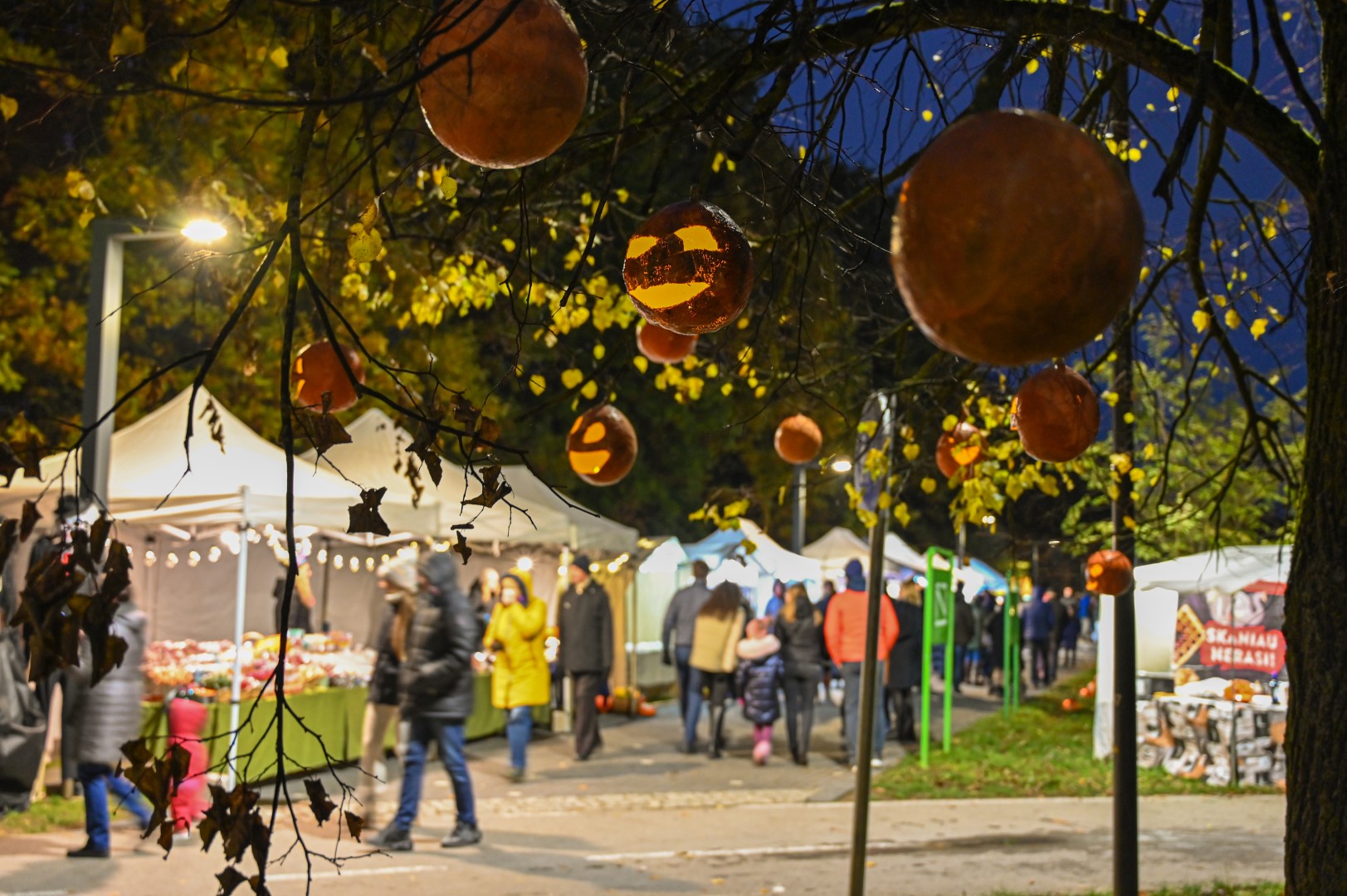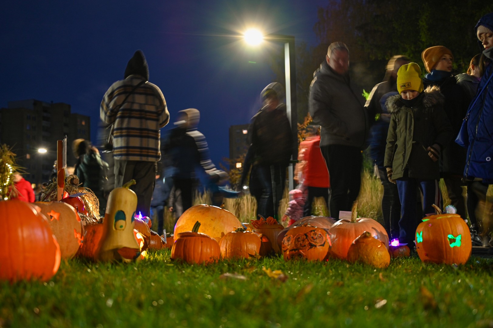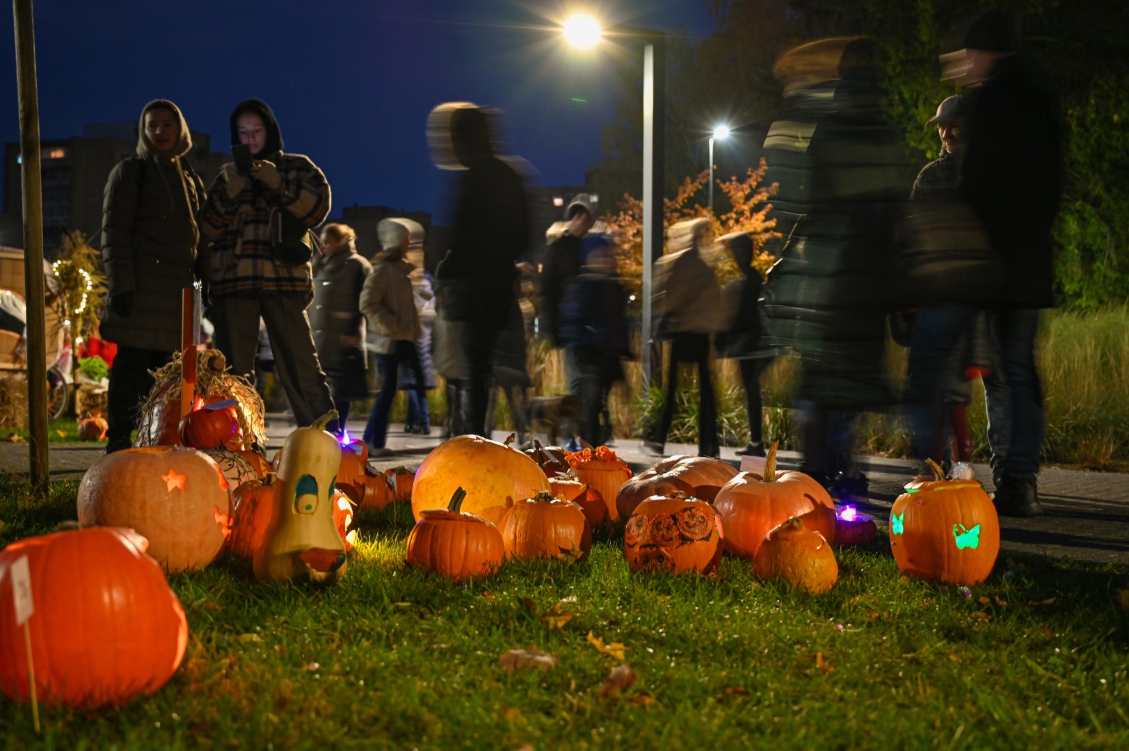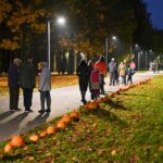 Sutemoms nusileidus į miestą, parko alėją nušvietė panevėžiečių išskaptuoti moliūgų žibintai.