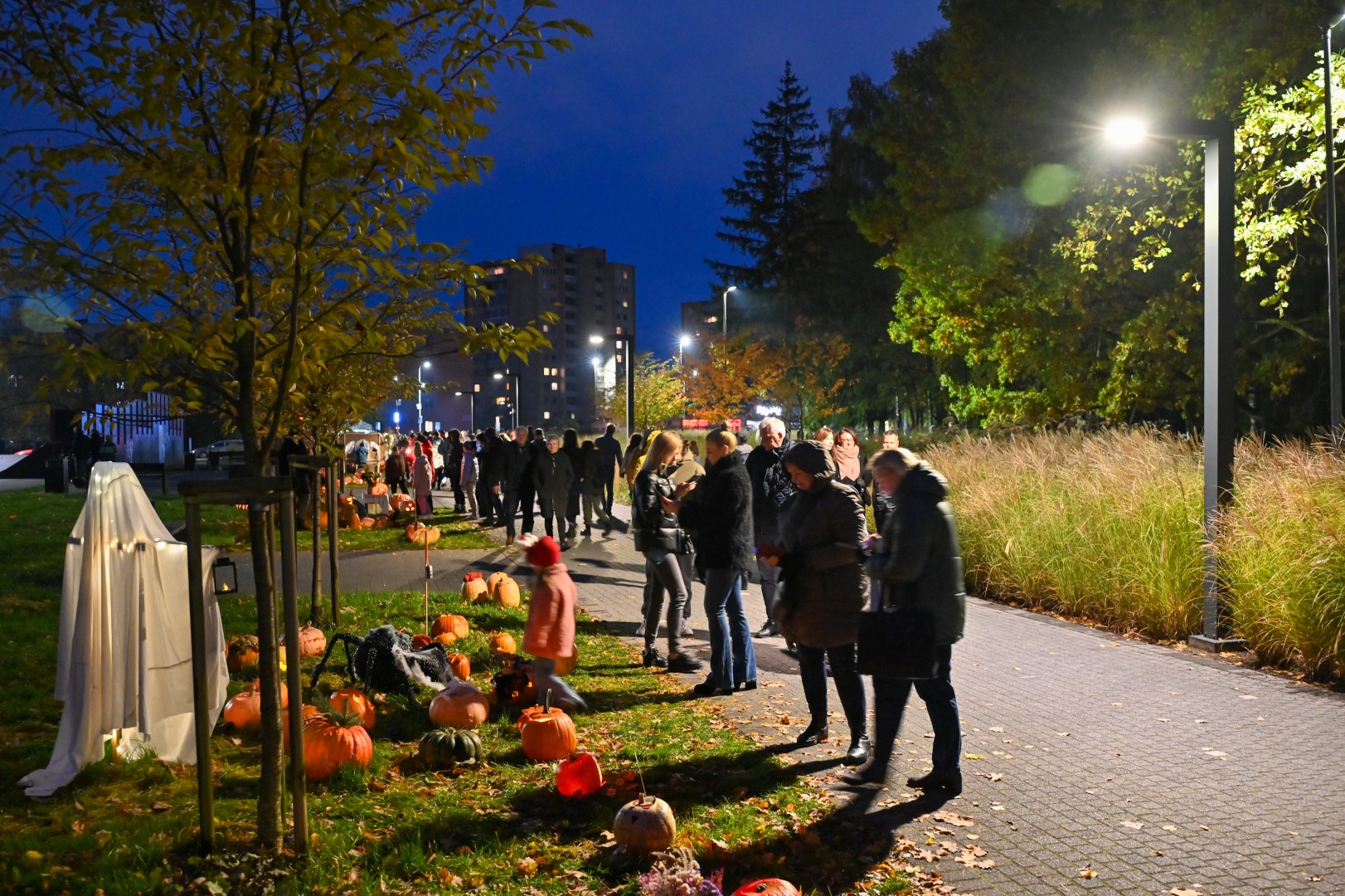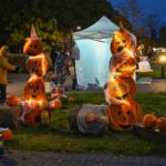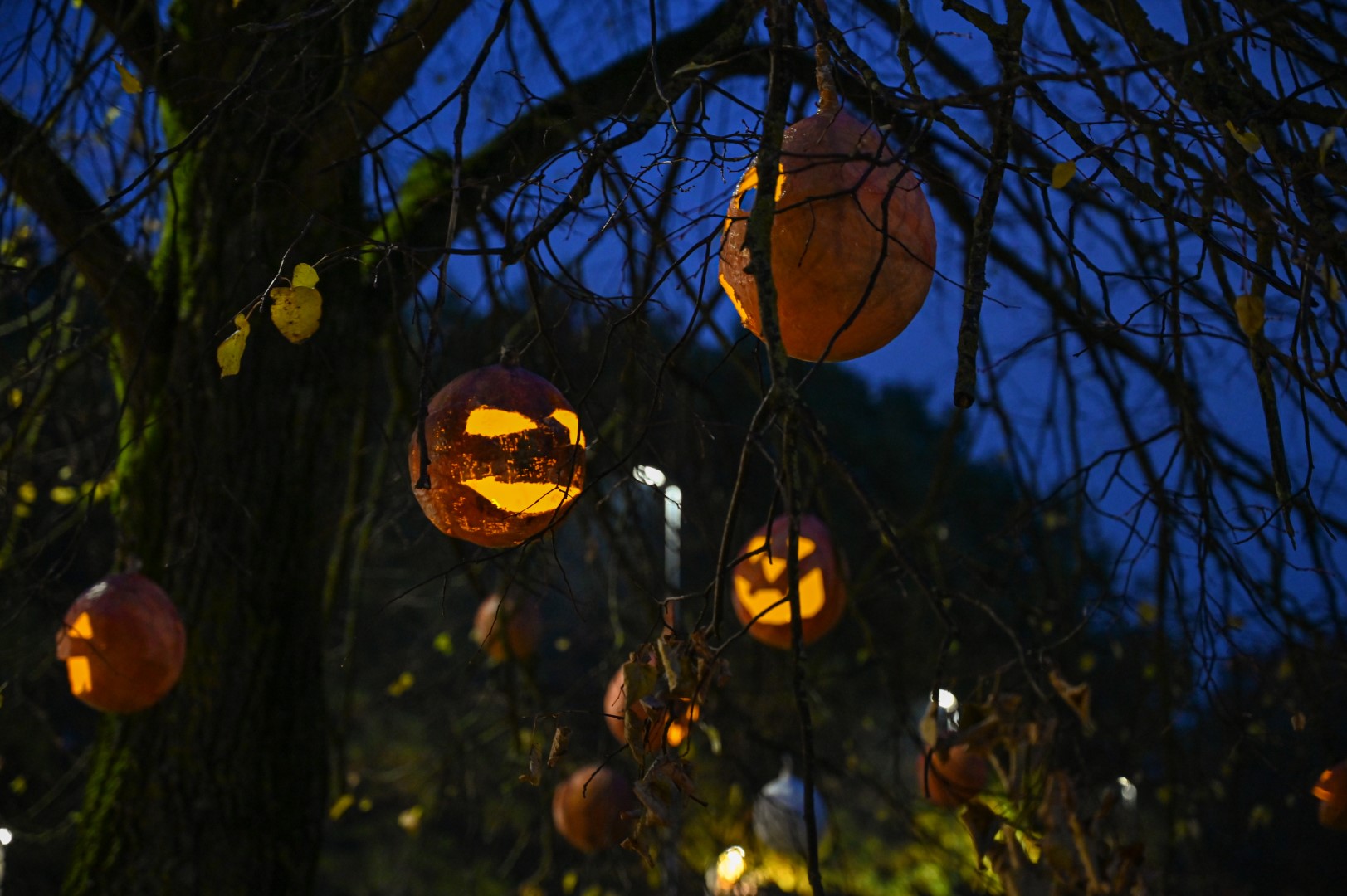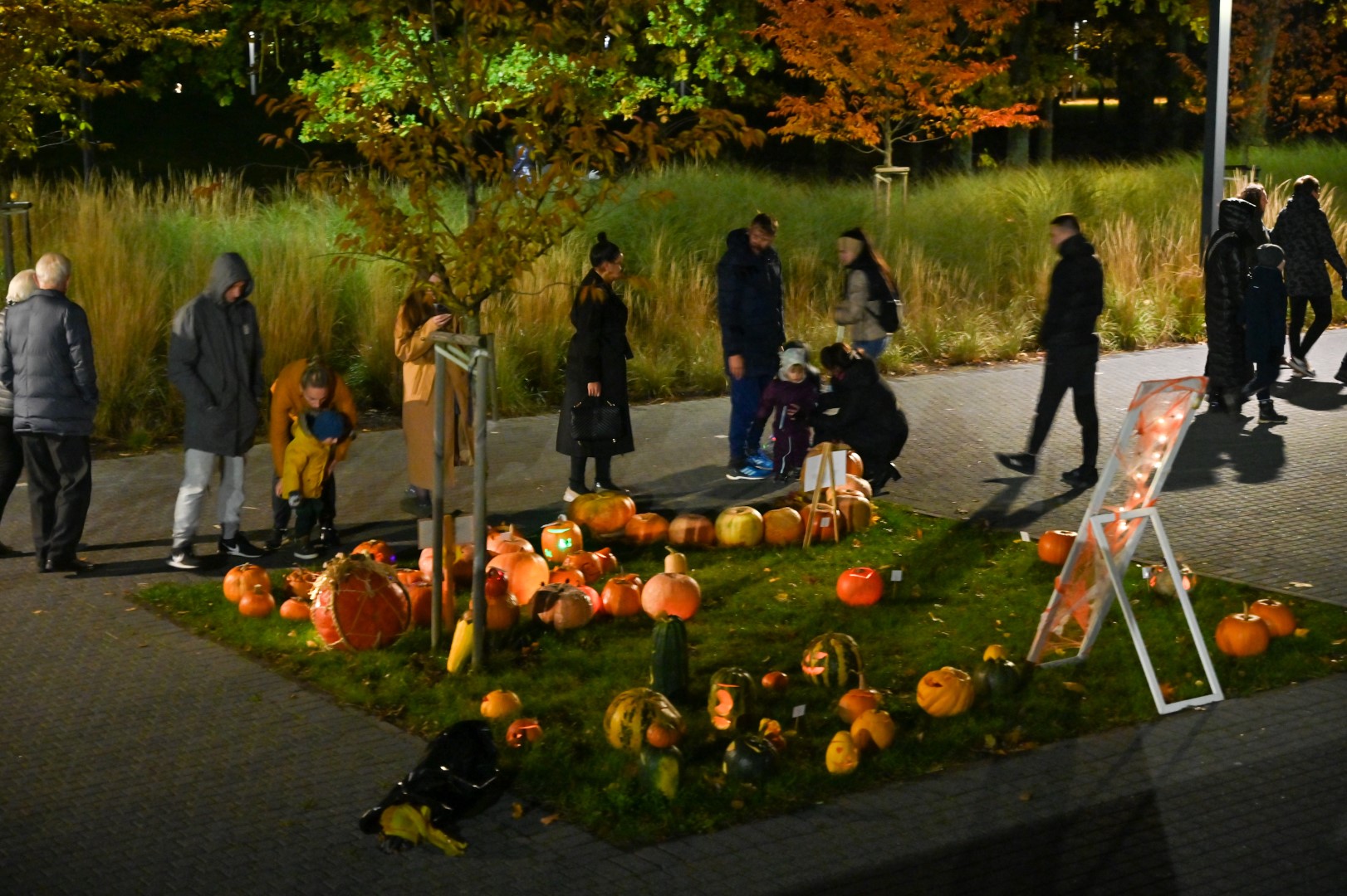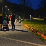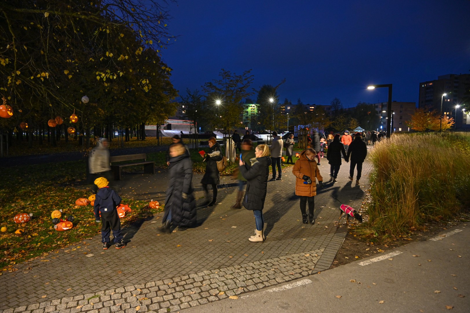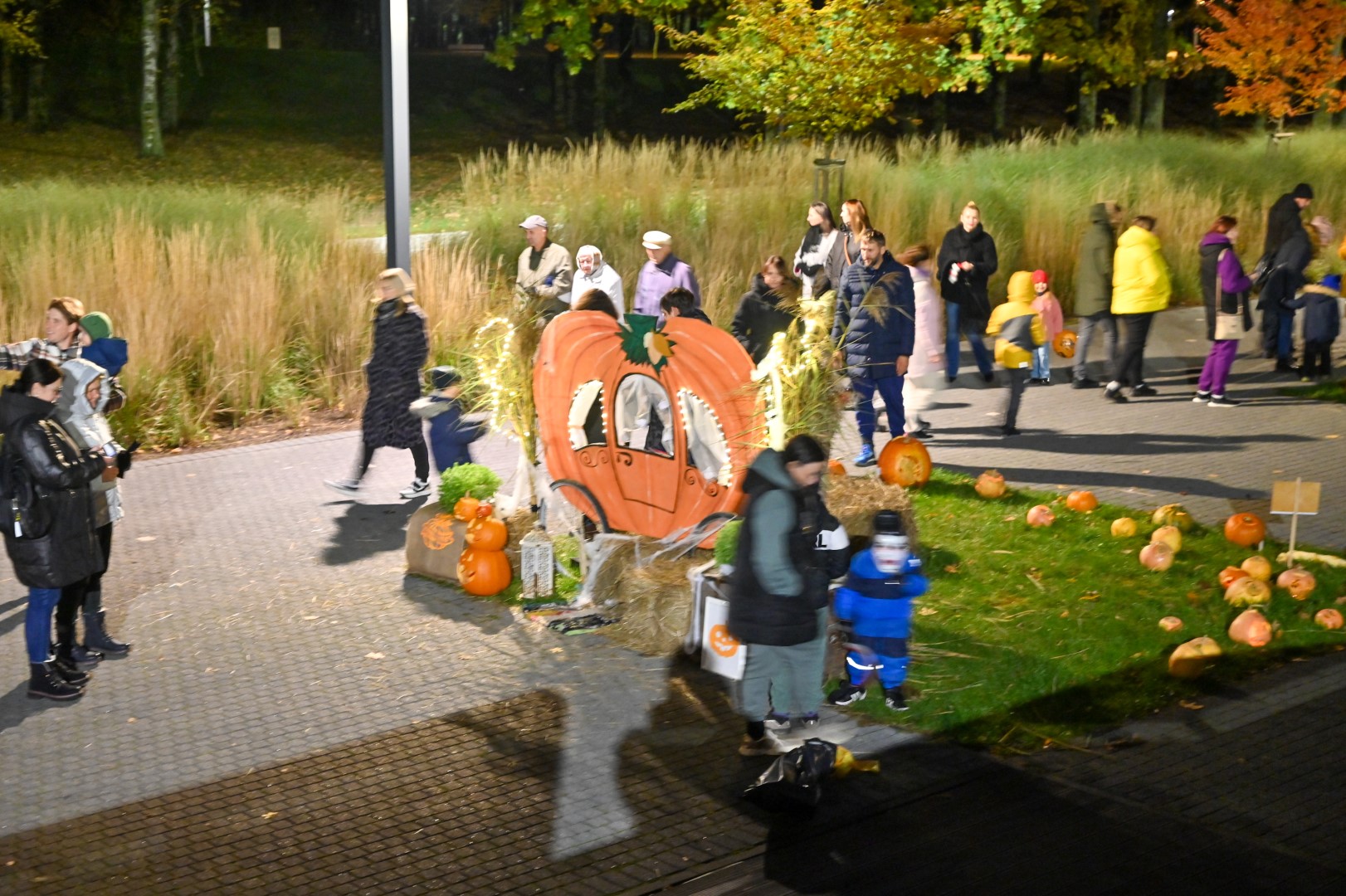 Sutemoms nusileidus į miestą, parko alėją nušvietė panevėžiečių išskaptuoti moliūgų žibintai.