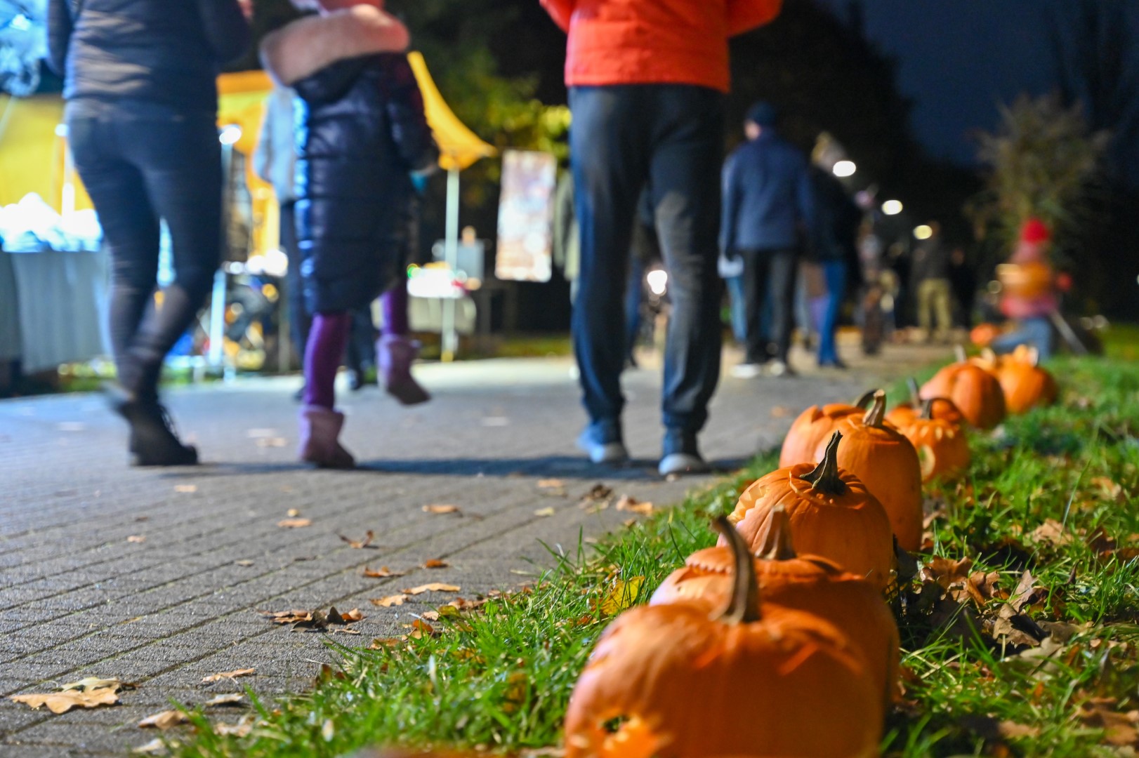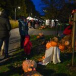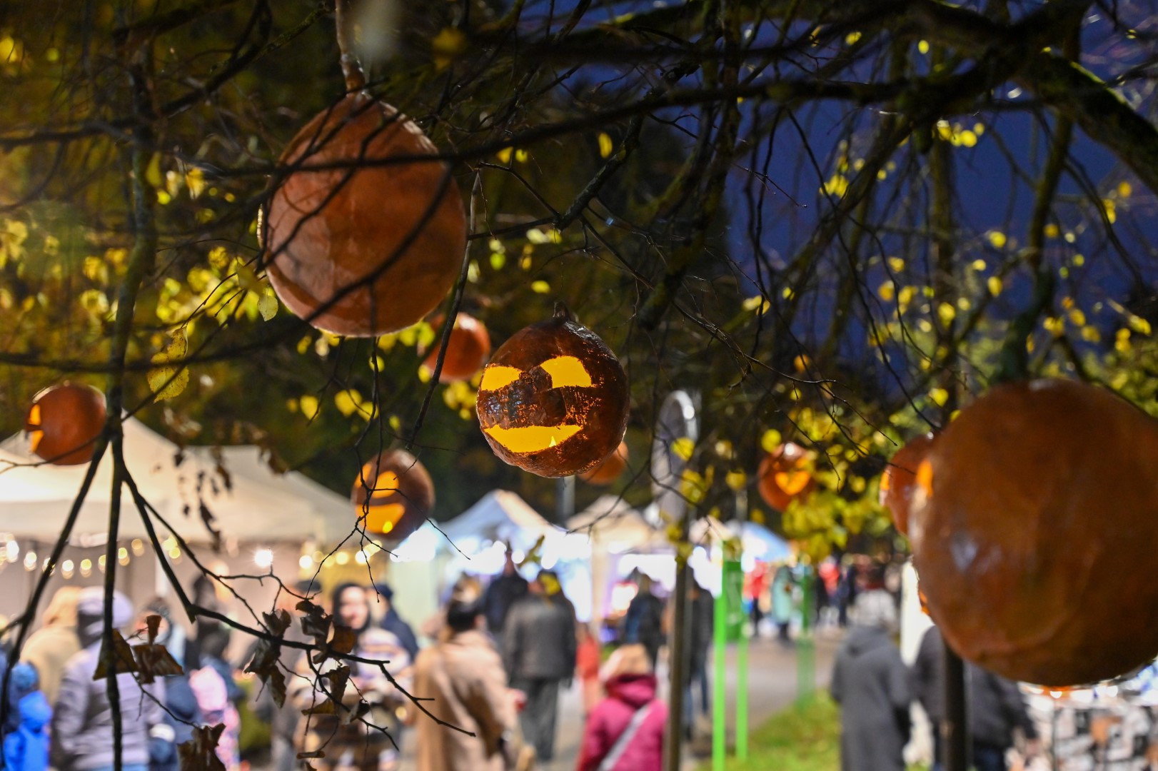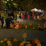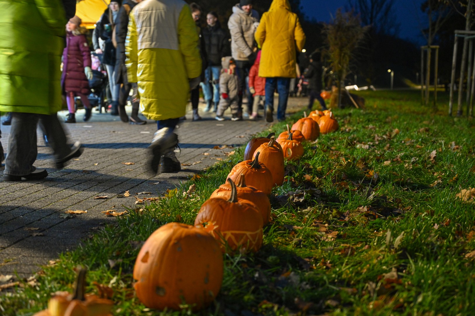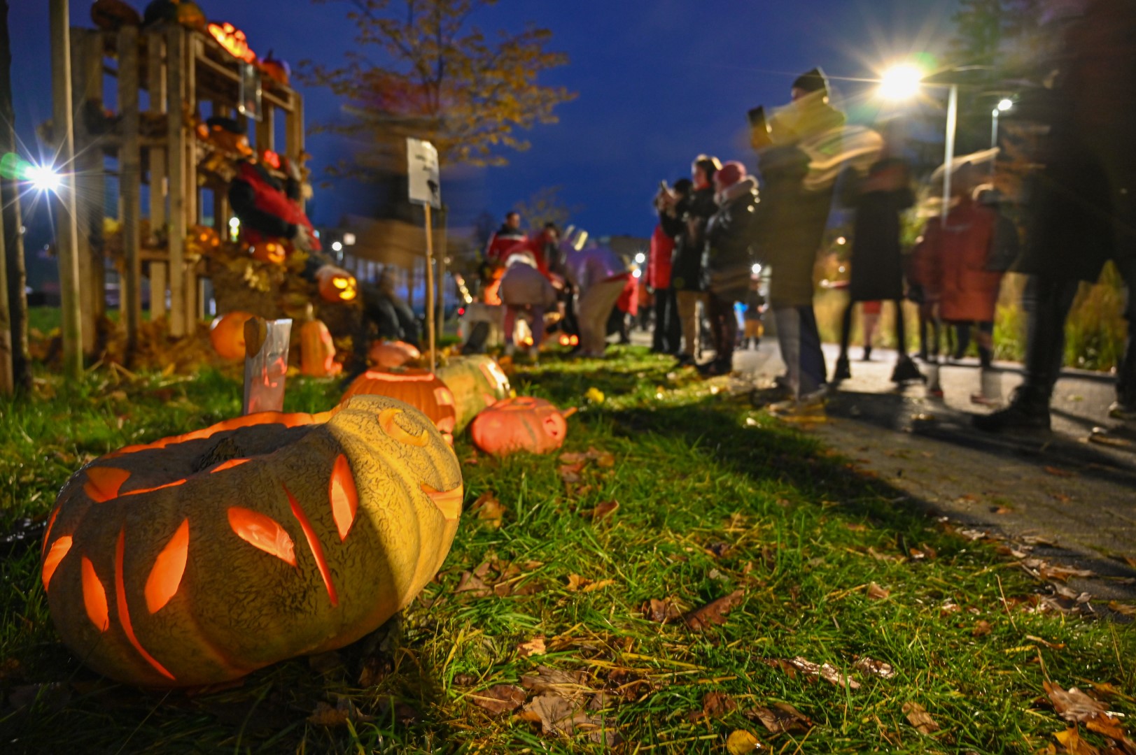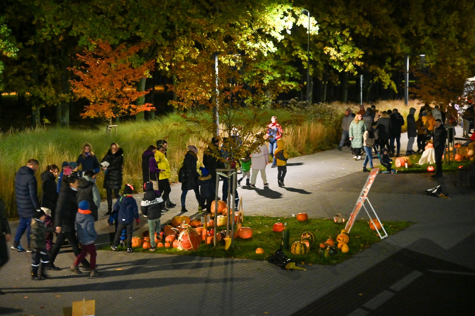 Sutemoms nusileidus į miestą, parko alėją nušvietė panevėžiečių išskaptuoti moliūgų žibintai.