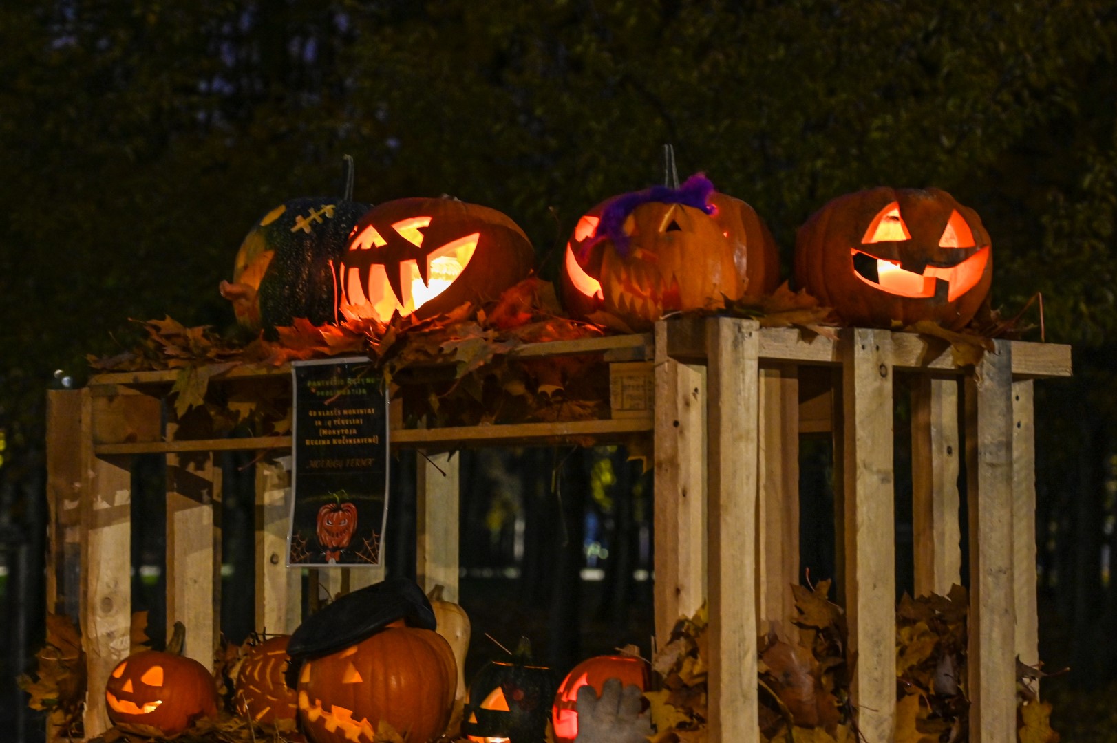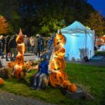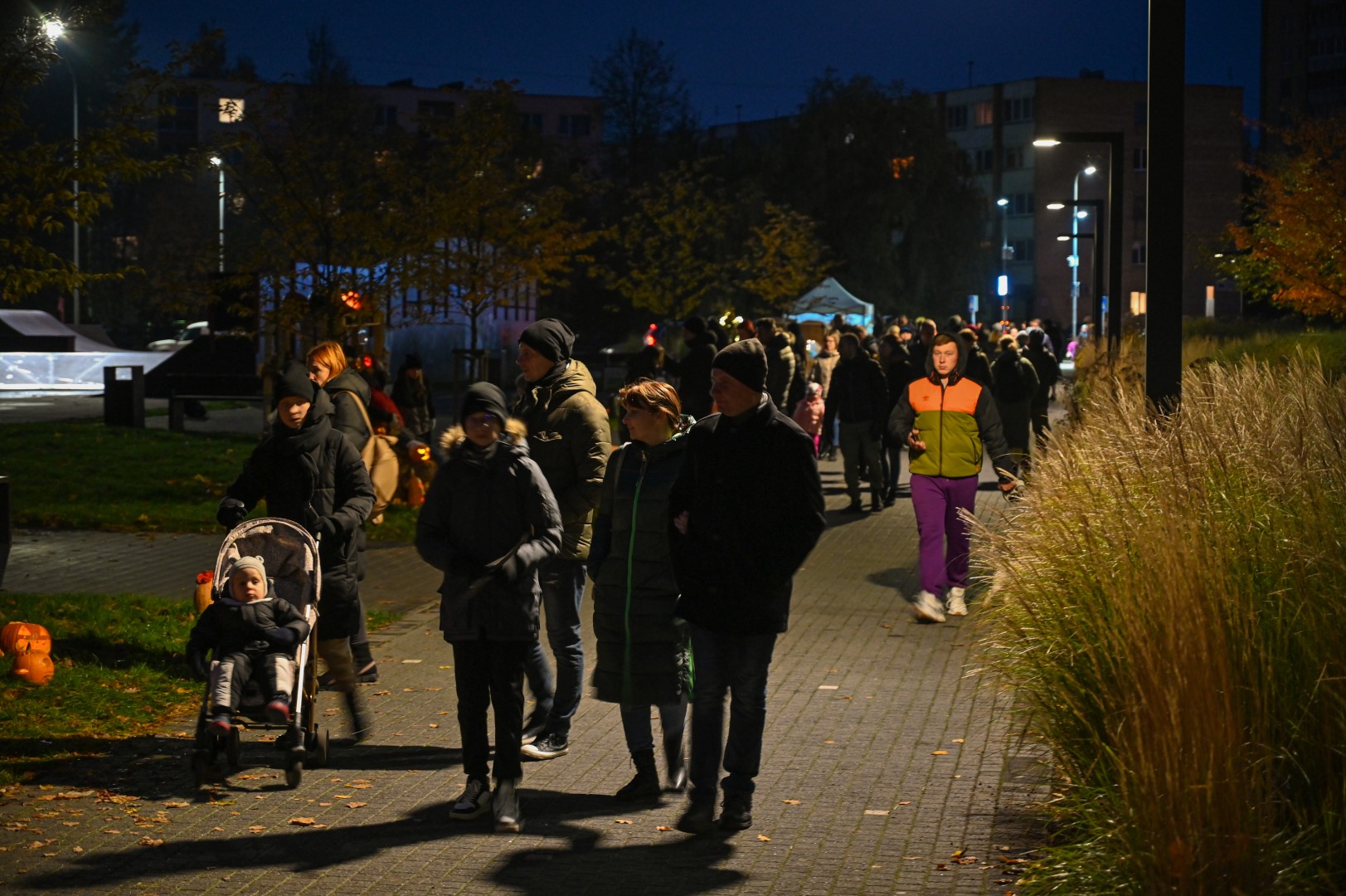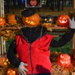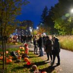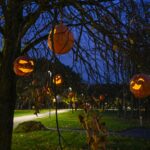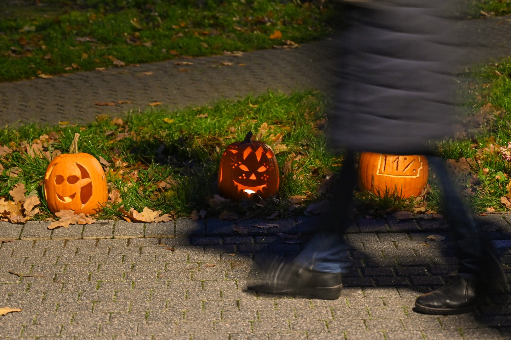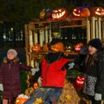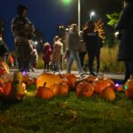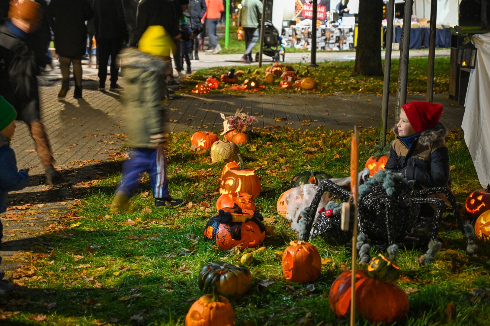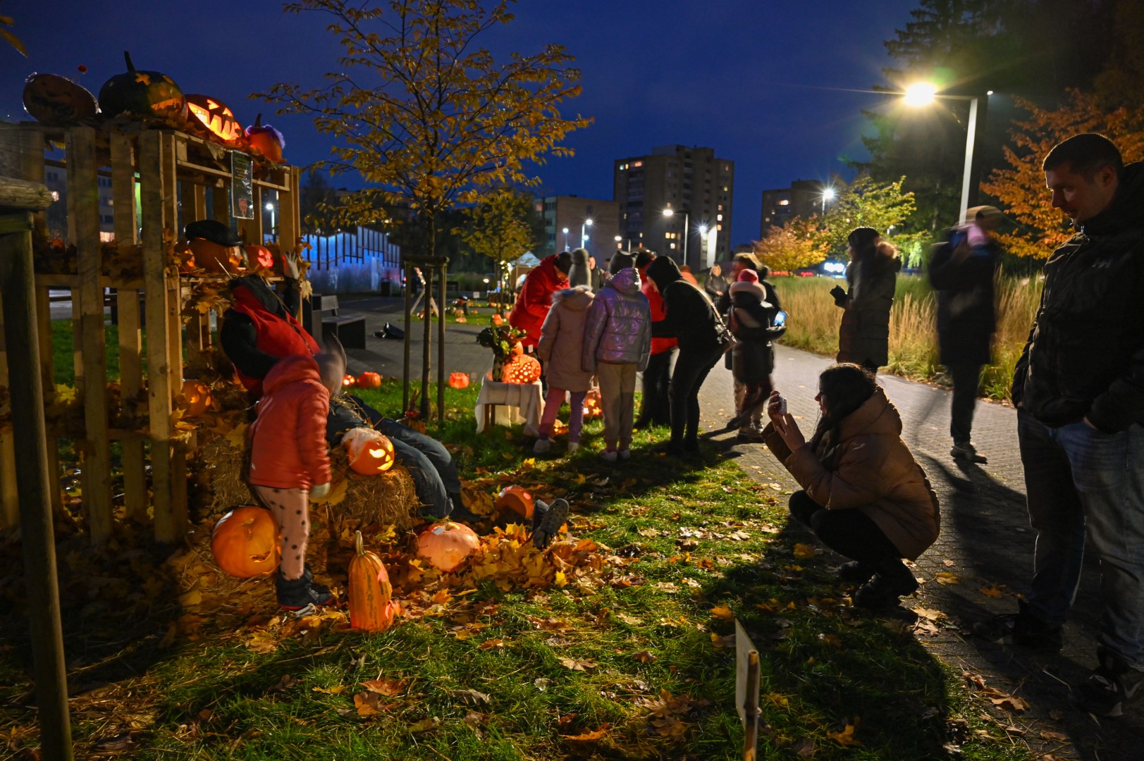 Sutemoms nusileidus į miestą, parko alėją nušvietė panevėžiečių išskaptuoti moliūgų žibintai.
