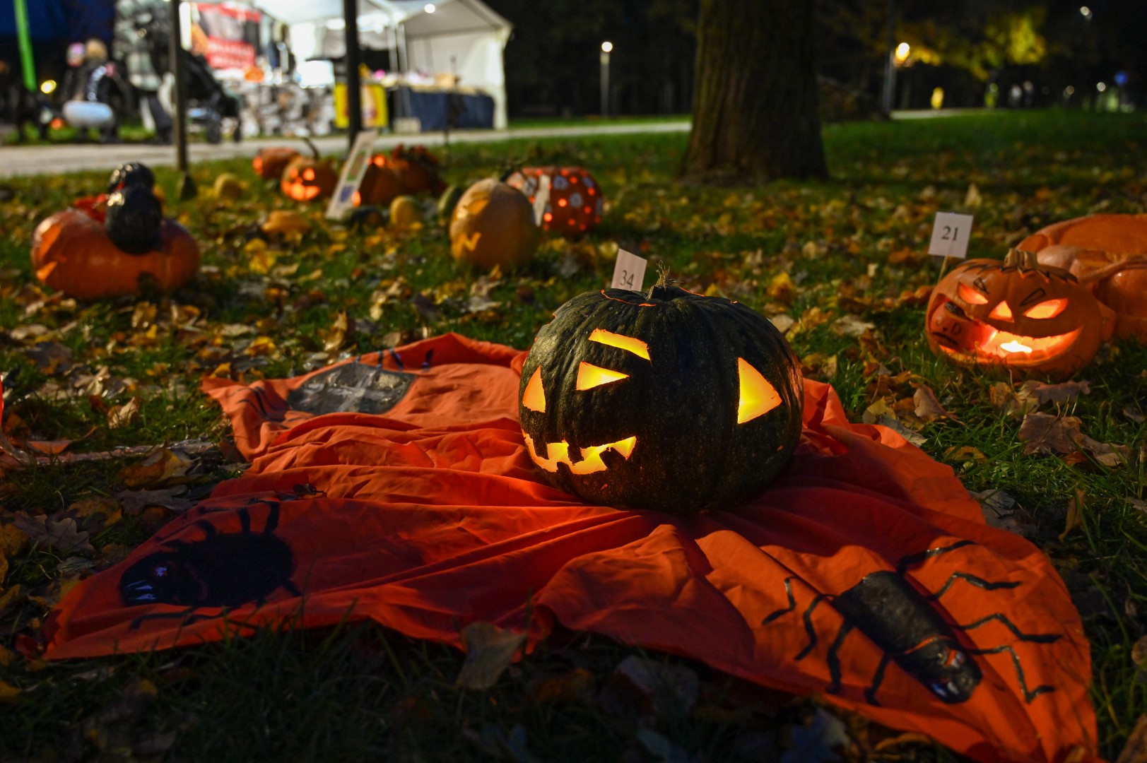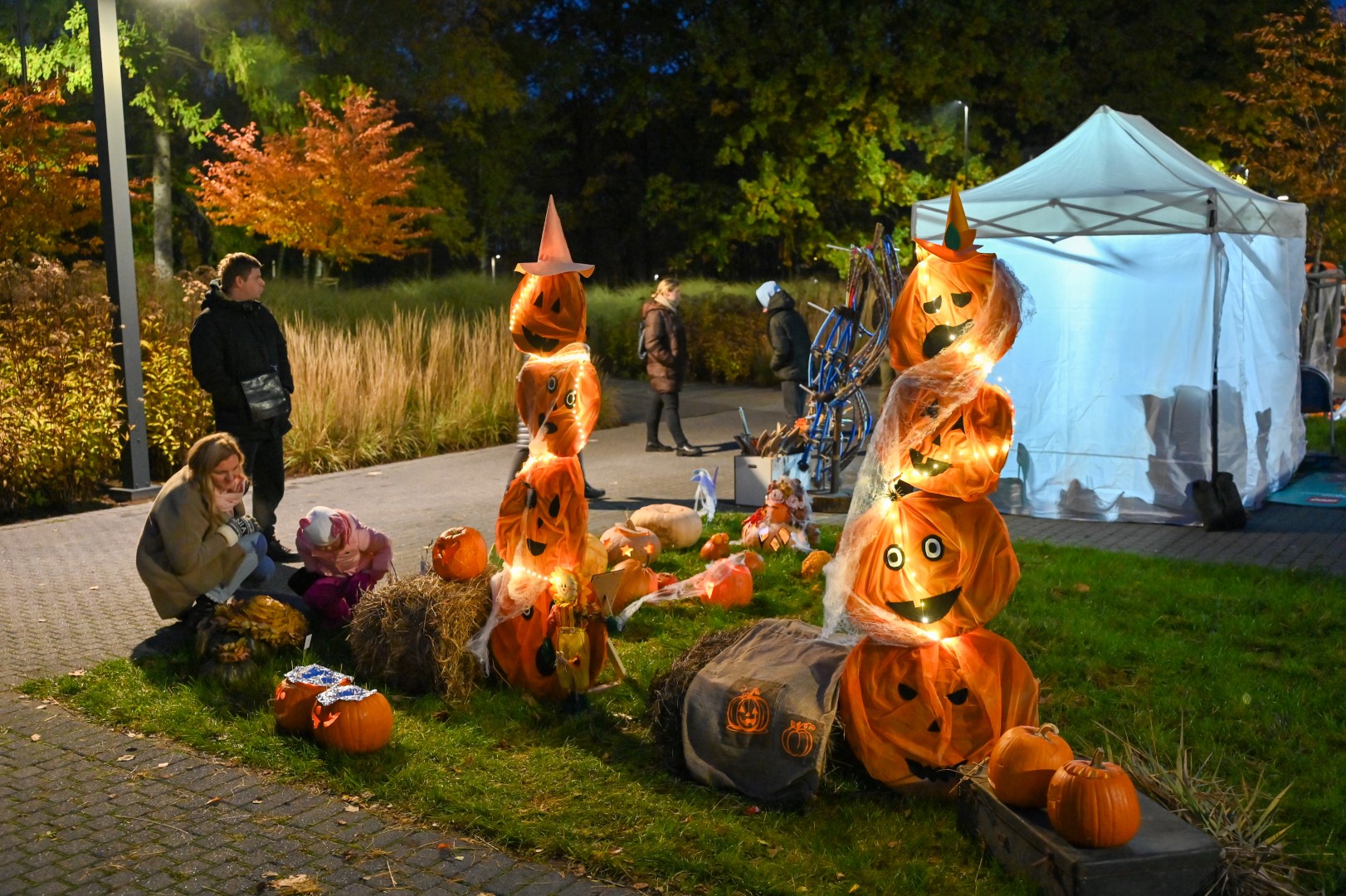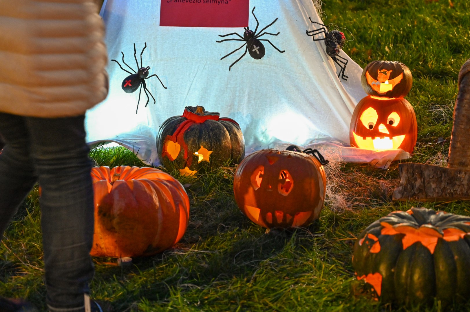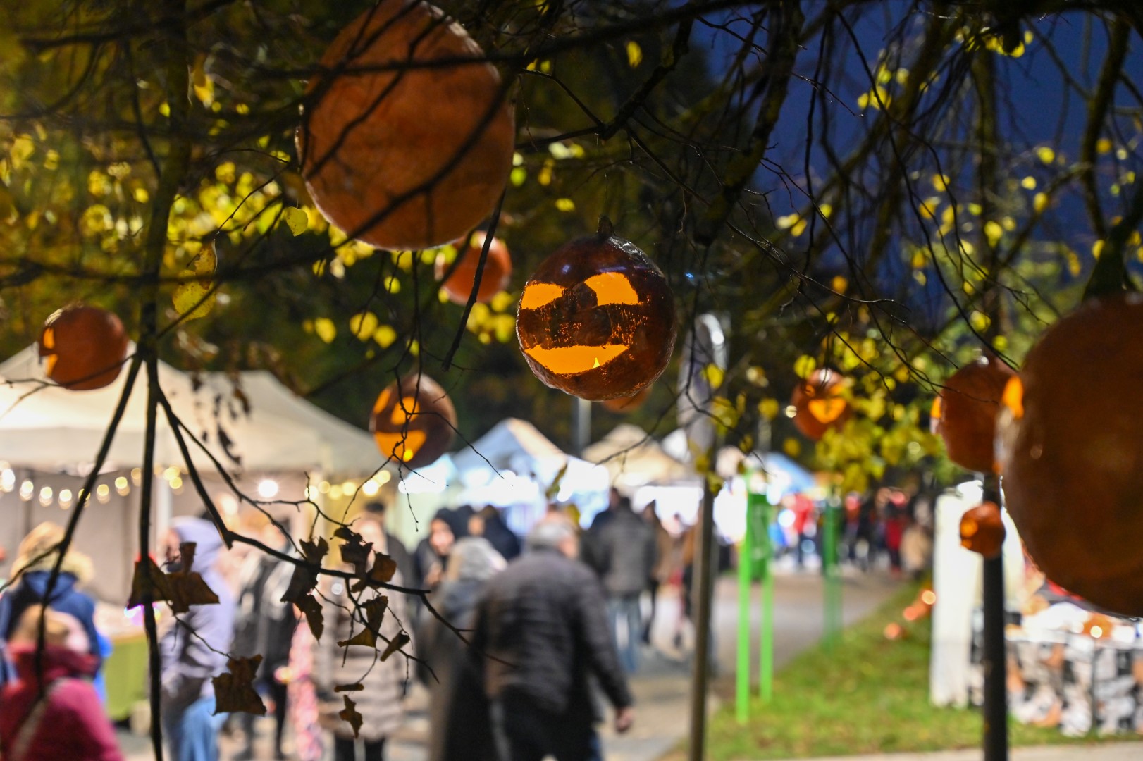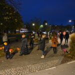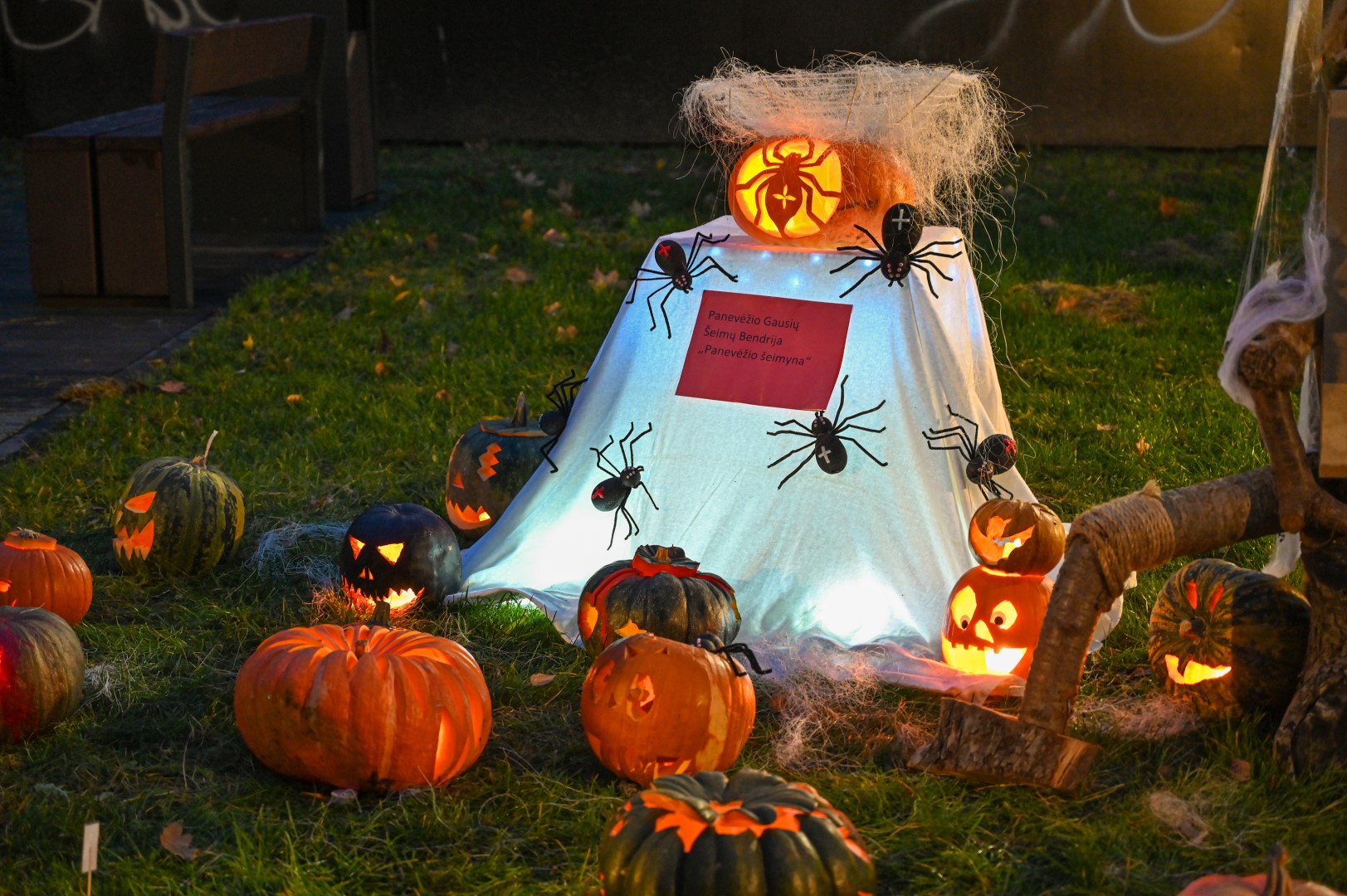 Sutemoms nusileidus į miestą, parko alėją nušvietė panevėžiečių išskaptuoti moliūgų žibintai.