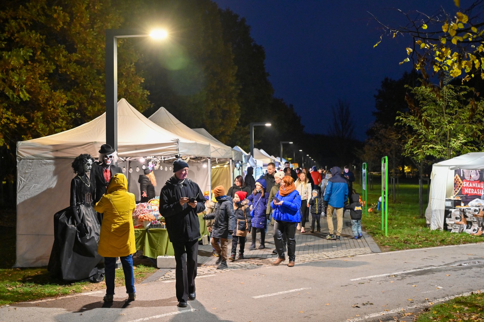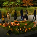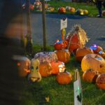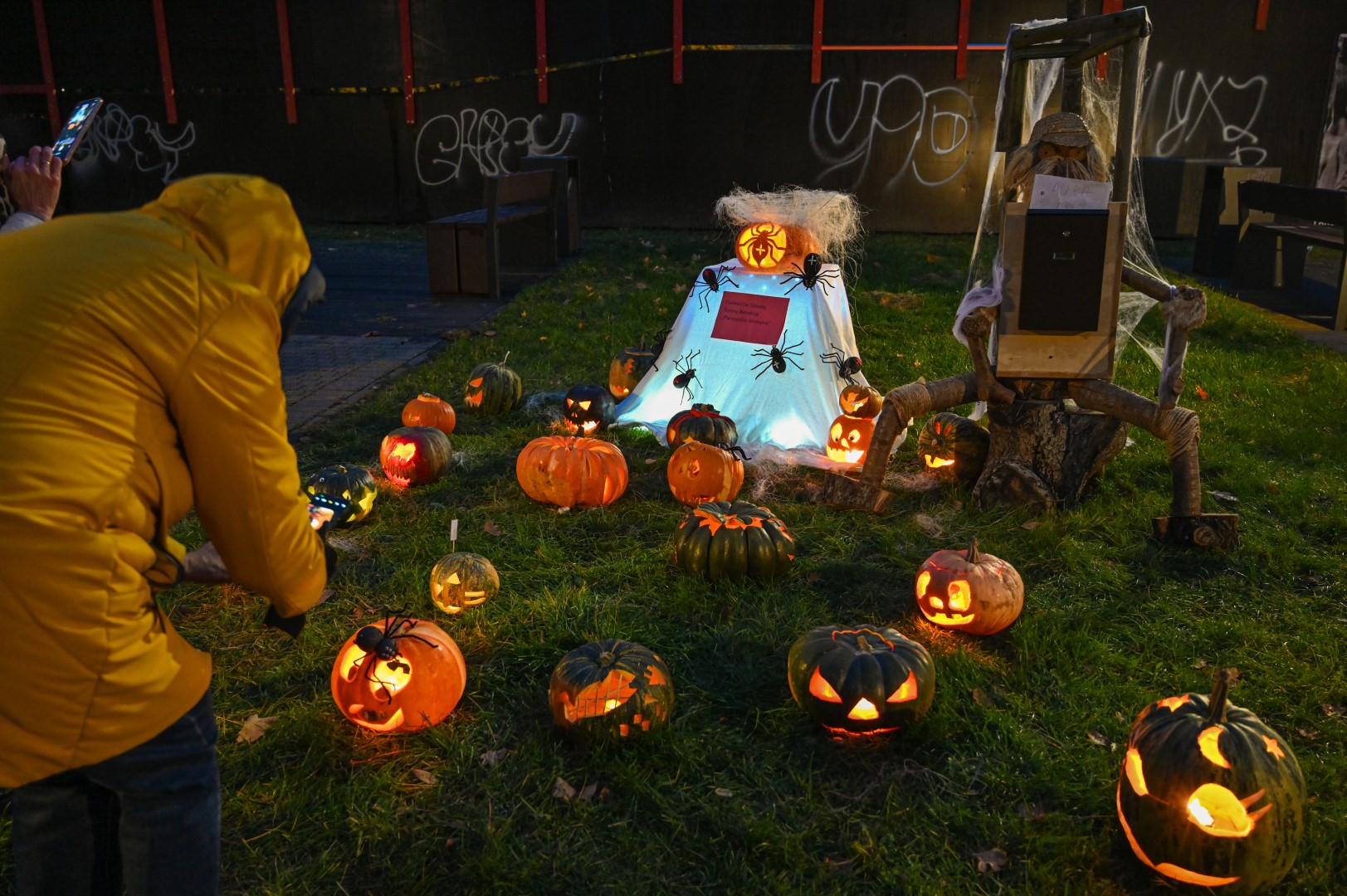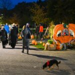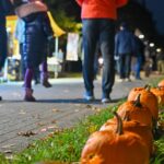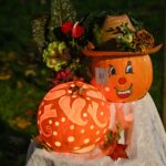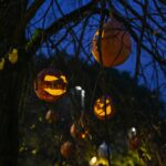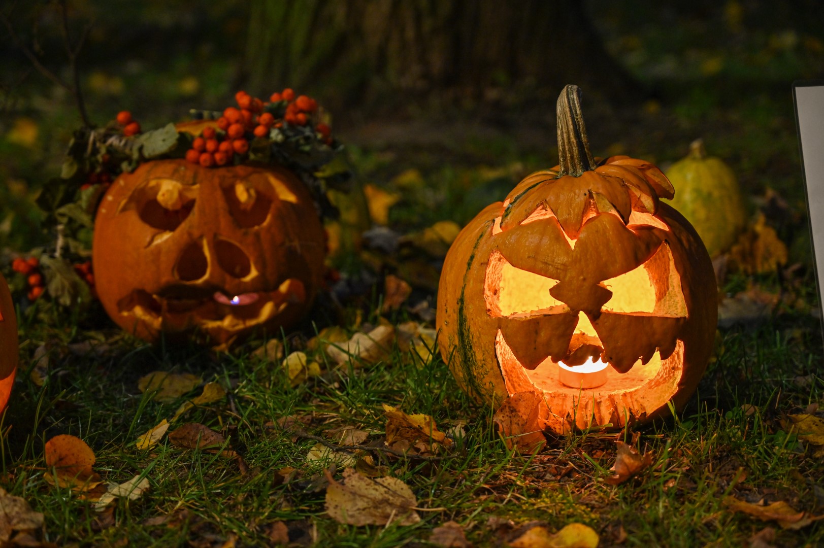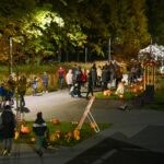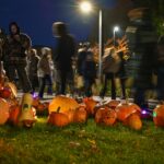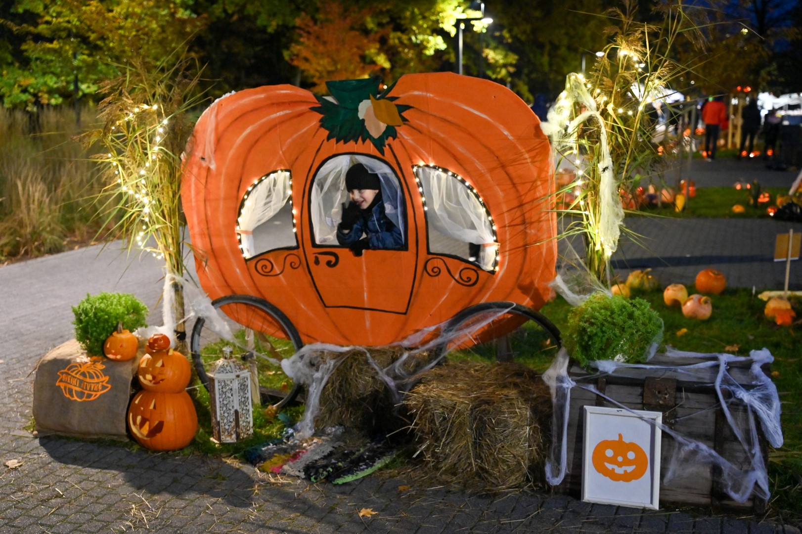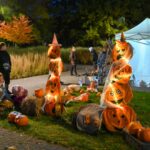 Sutemoms nusileidus į miestą, parko alėją nušvietė panevėžiečių išskaptuoti moliūgų žibintai.