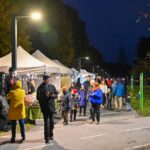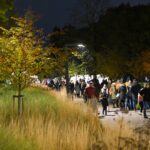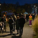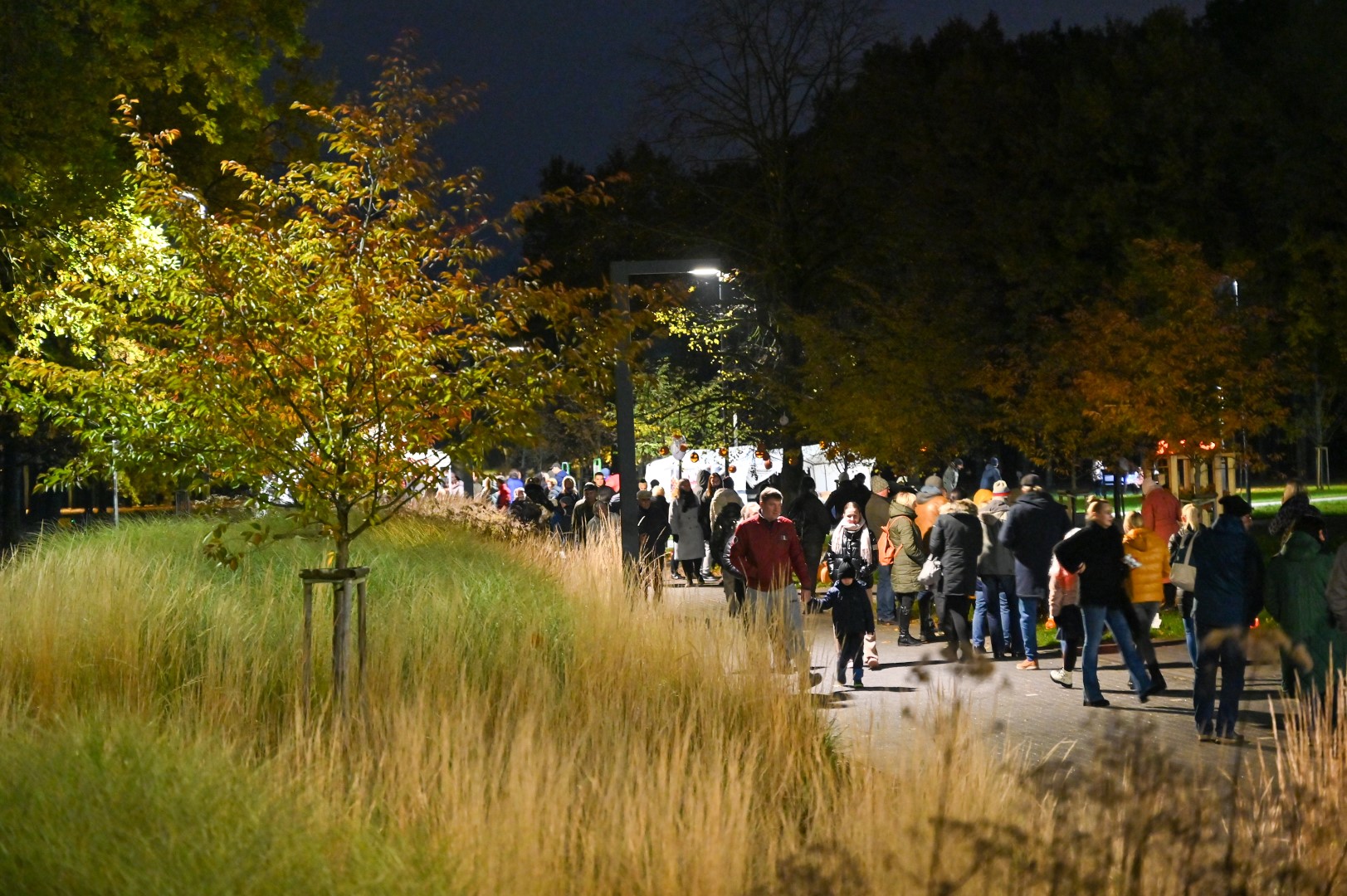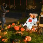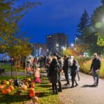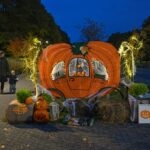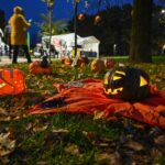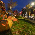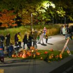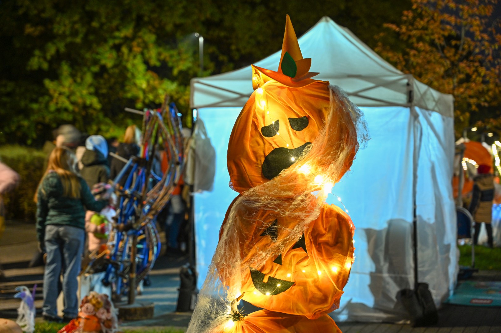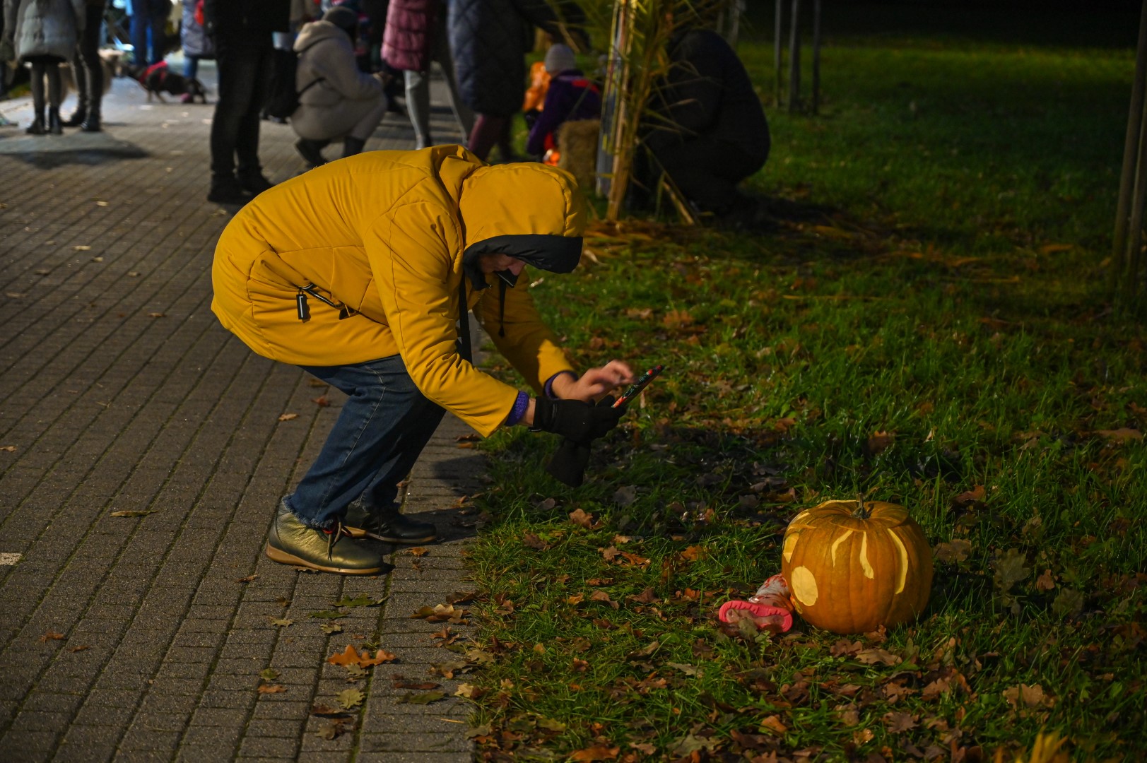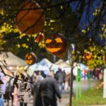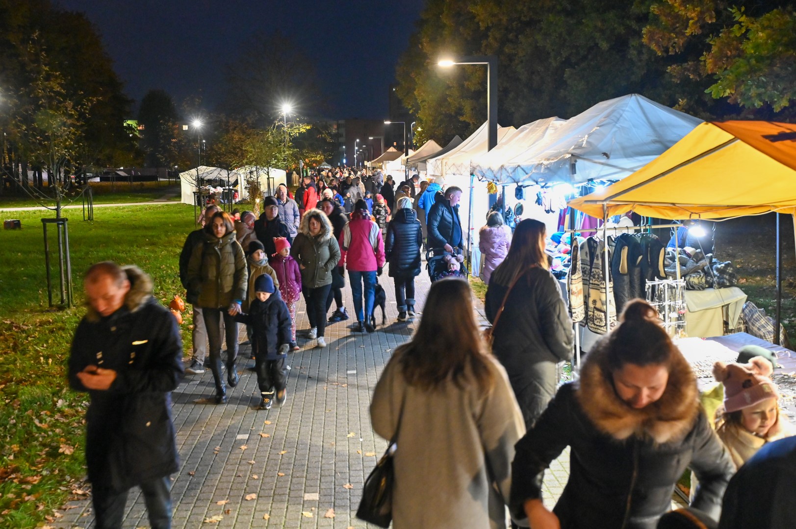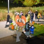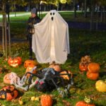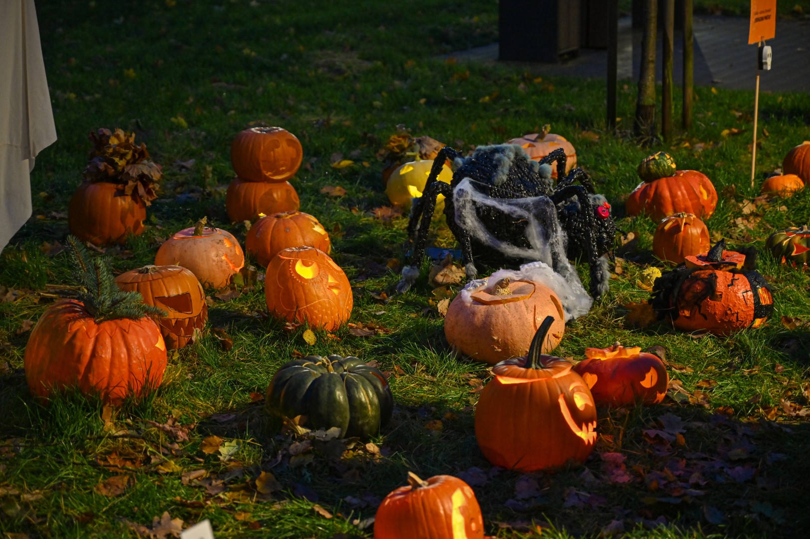 Sutemoms nusileidus į miestą, parko alėją nušvietė panevėžiečių išskaptuoti moliūgų žibintai.