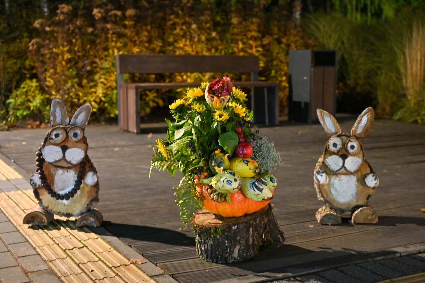 Vėlyvoje rudens akcijos sumanytojai – Panevėžio miesto ir rajono tautodailininkų asociacijos „Pantautodailė“ nariai parką moliūgais papuošia jau trečius metus.