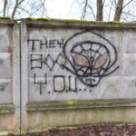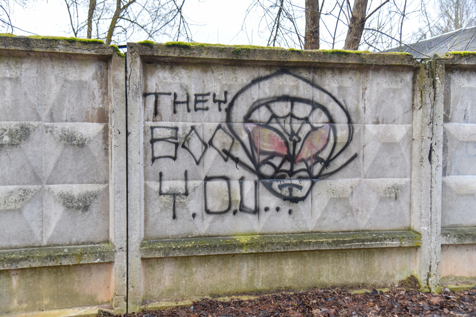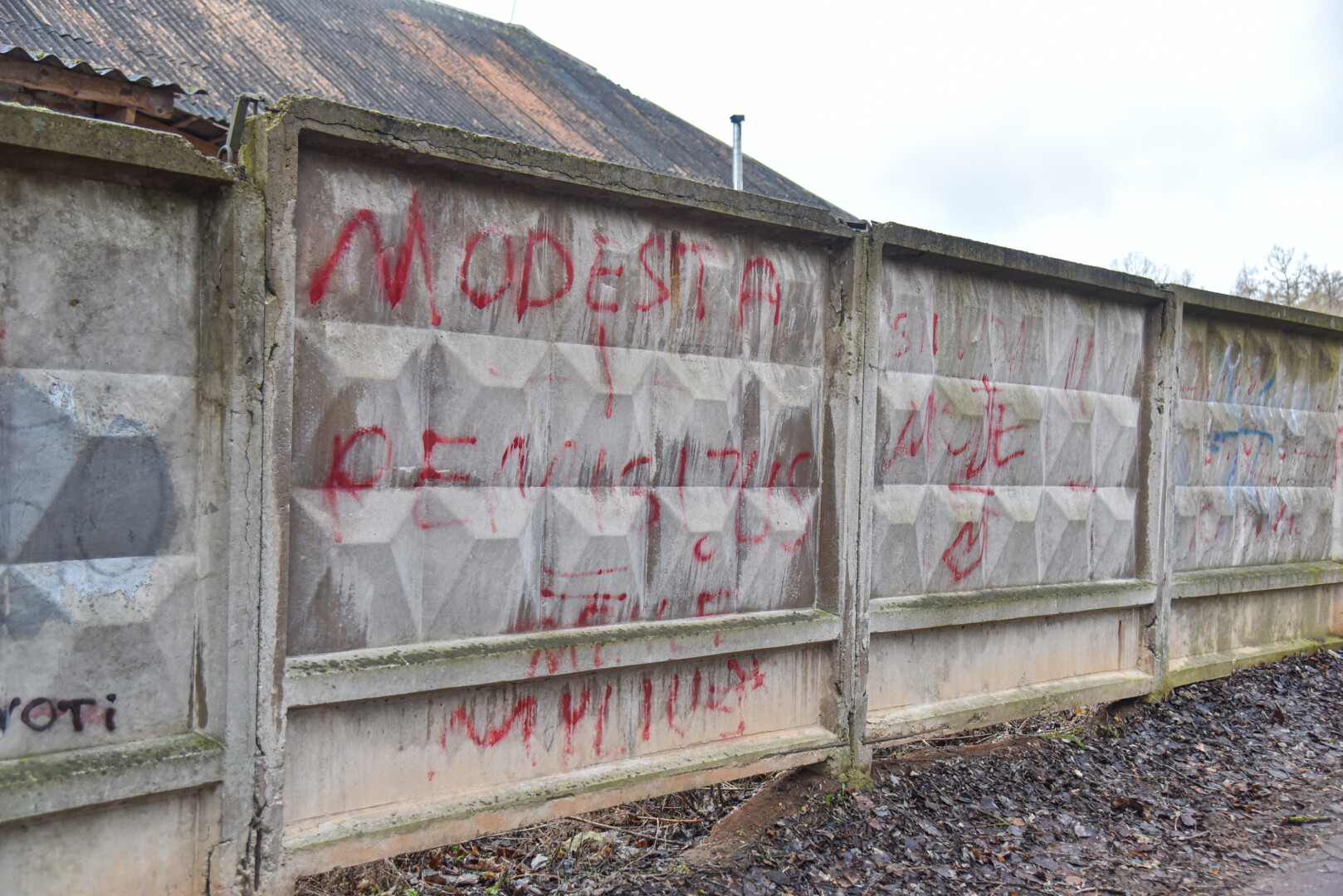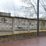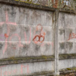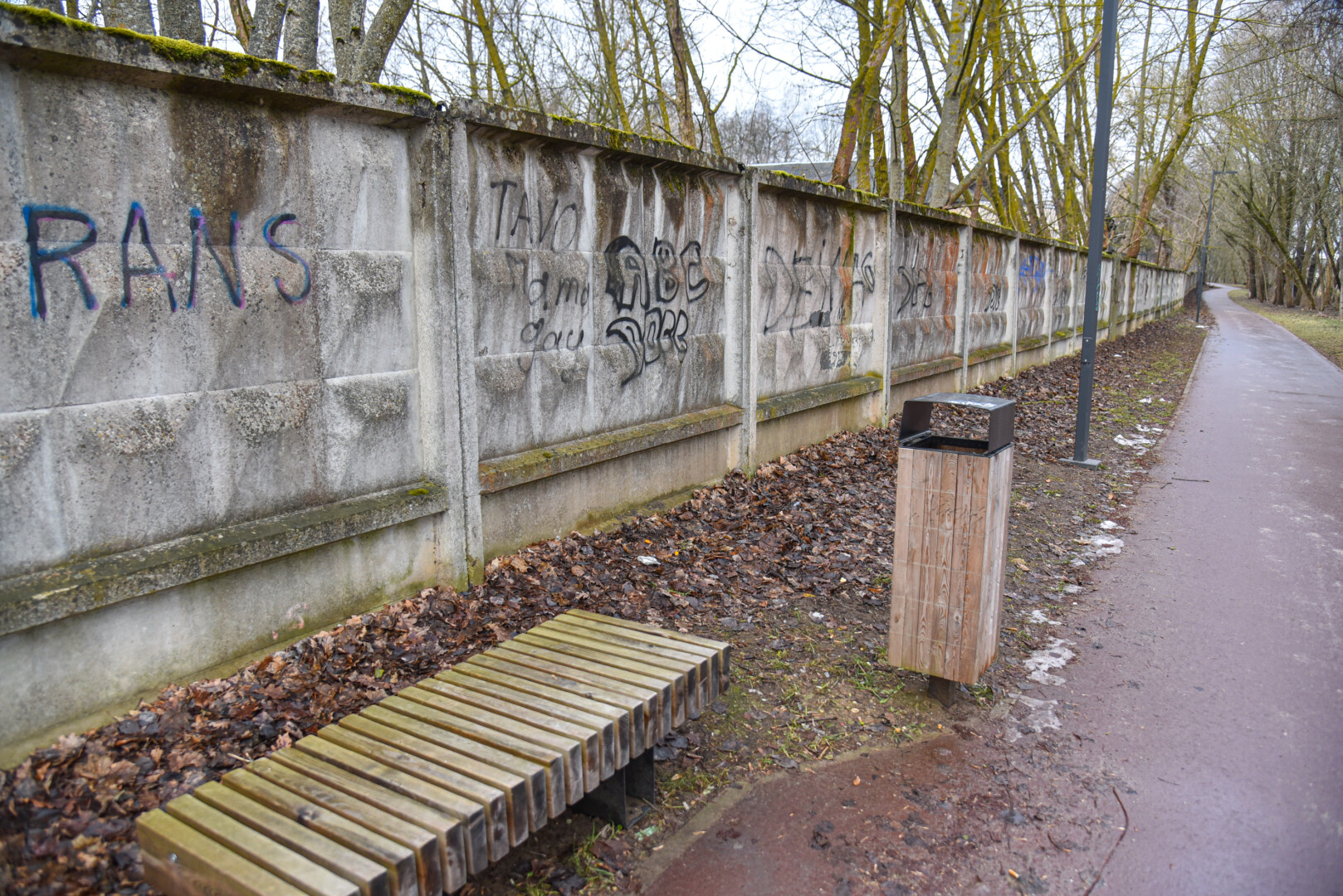 Savivaldybės prieš trejus metus iš panevėžiečio išpirkta ir nebaigta griauti tvarkomo Skaistakalnio parko gelžbetoninė tvora virto savotiška piešimo lenta necenzūrinių teplionių gerbėjams.