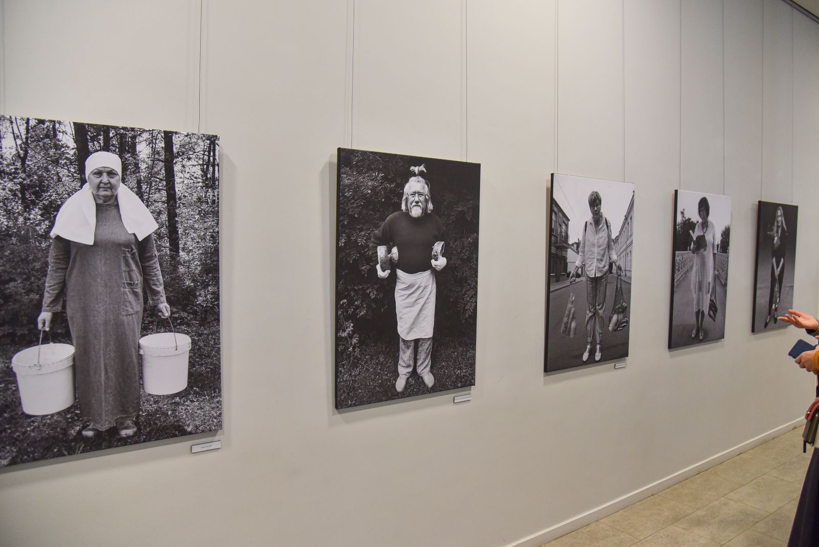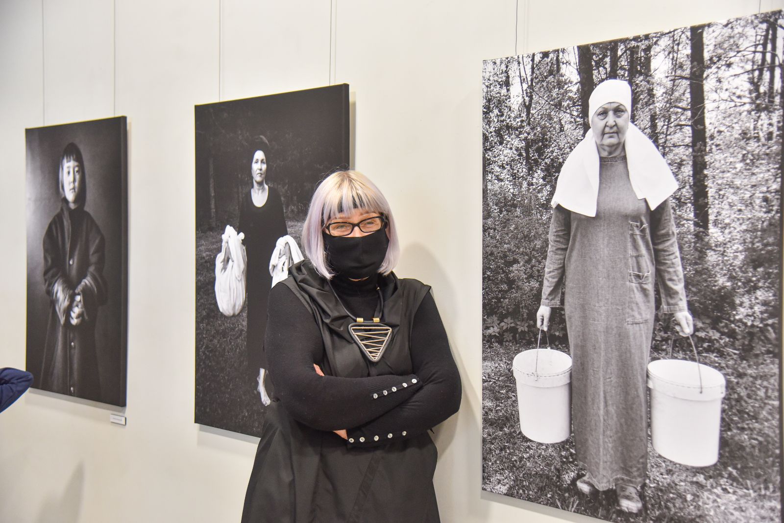 „Stengiausi fotografuoti tai, ko nebėra ir kas praeina. Prisiminiau, kaip seniau moterys, ypač kaimuose, ryšėdavo baltas skareles, tad dvi bičiules sodyboje nufotografavau su baltomis skarelėmis. Dar vieną draugę nufotografavau su dviem baltais plastmasiniais kibirais. Kažkodėl man atrodo, kad anksčiau ar vėliau tokių kibirų nebeliks, jais nebesinaudosime“, – pasakojo menininkė.