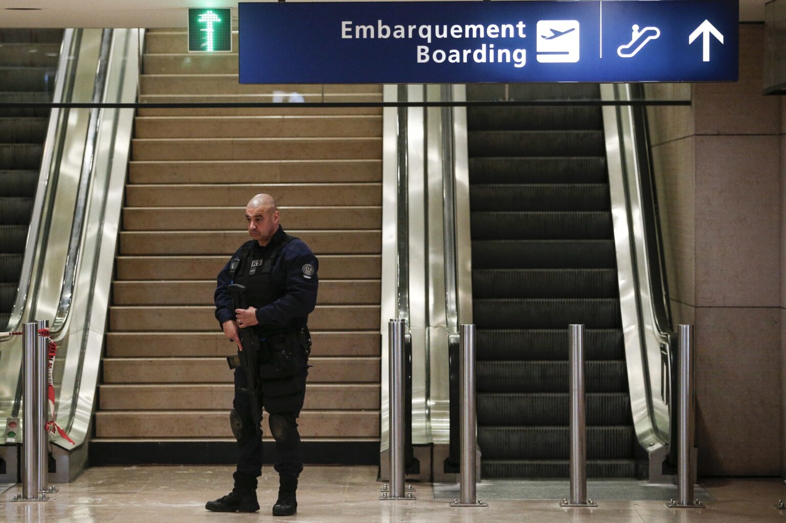 Kariuomenės atstovas Benoitas Brulonas sakė televizijai BFM, kad oro uoste „didžiulės agresijos“ tapusi karė yra „sukrėsta“, bet nesužeista.