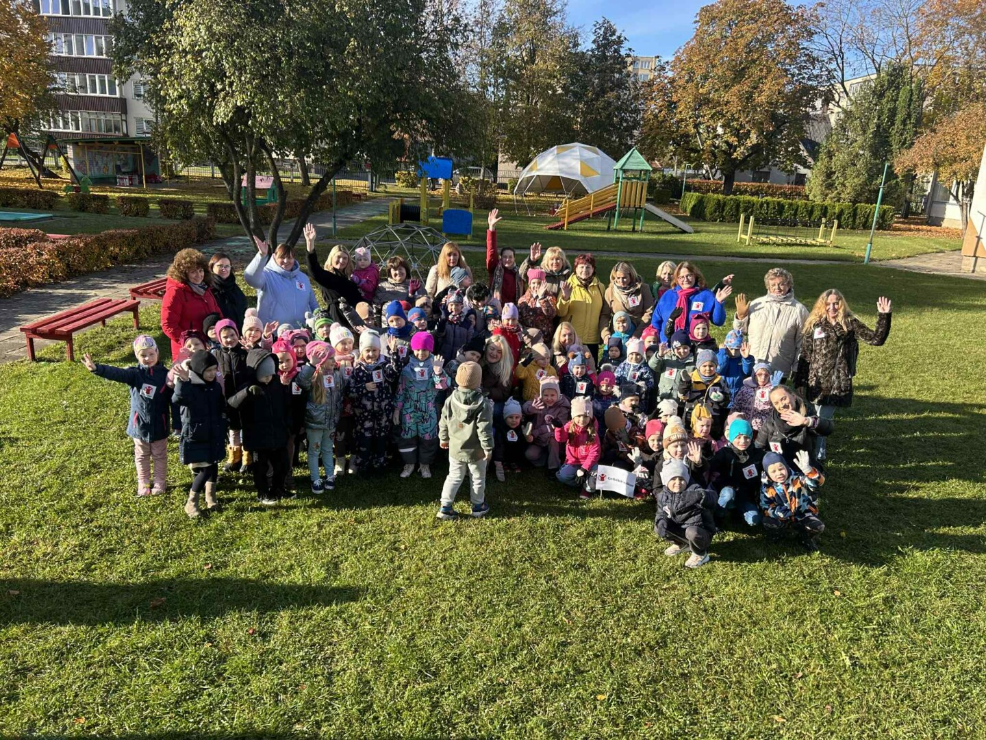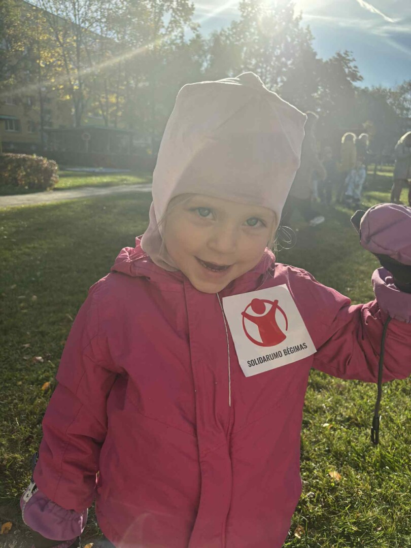 Vaikai, pedagogai, tėveliai – daugiau nei 100 bėgikų – saulėtą pirmadienį smagiai ir draugiškai nubėgo 500 metrų ratą aplink darželį, taip padidindami visos Lietuvos švietimo įstaigų renkamus solidarumo kilometrus ir prisidėdami prie kilnios misijos – ištiesti pagalbos ranką su sunkumais susiduriantiems vaikams.