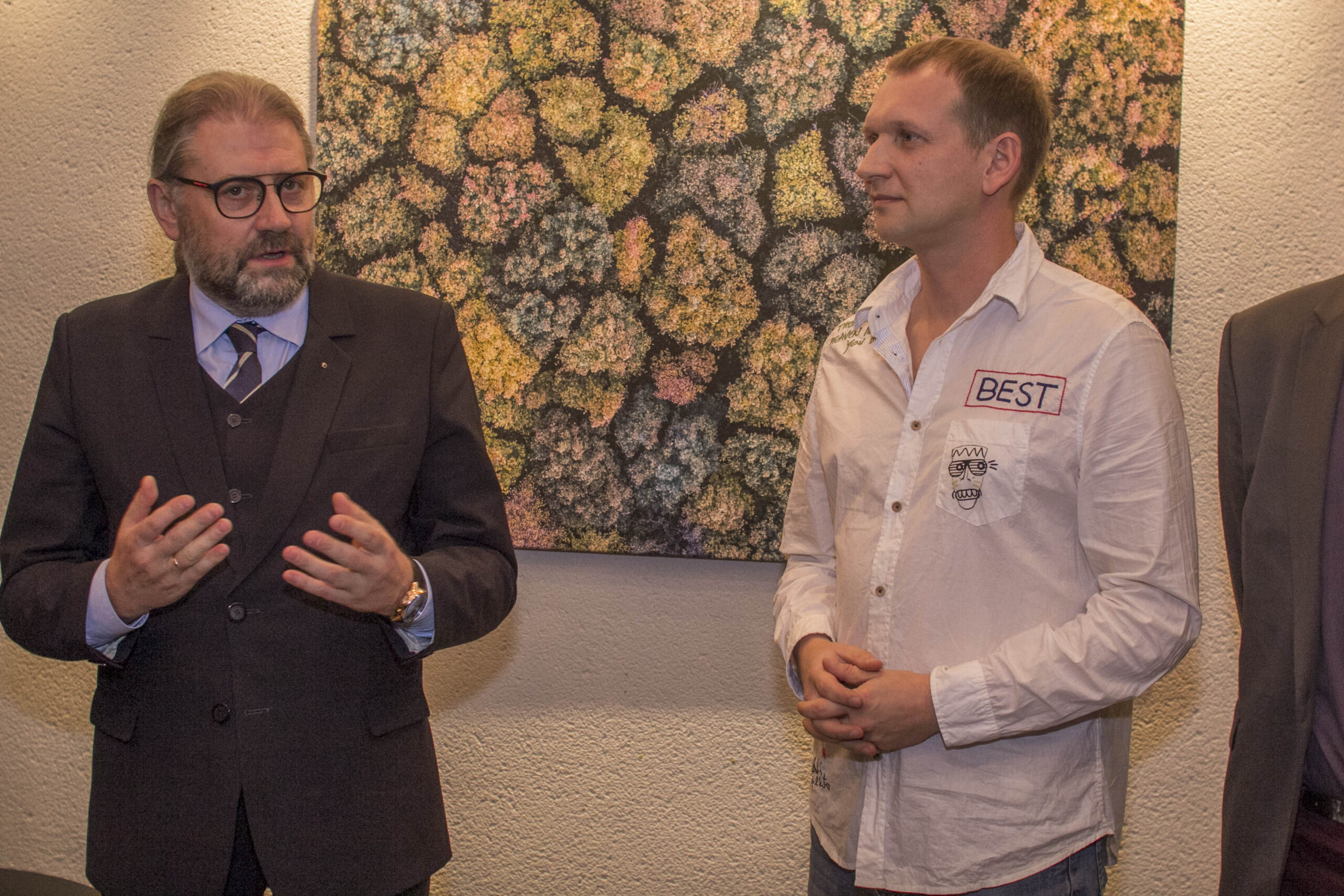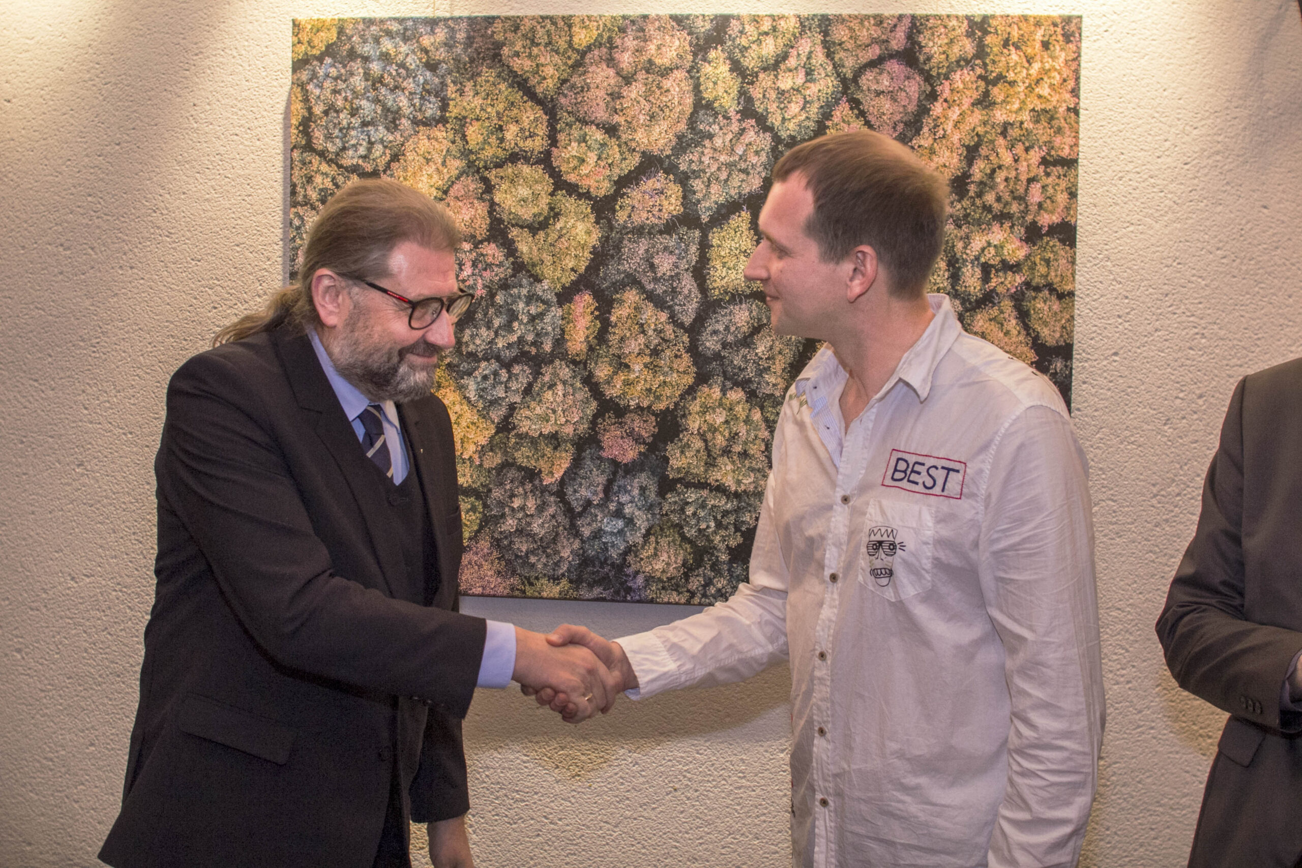 „Reikėtų patikslinti, kad nuotraukos yra ne ant stiklo, o po stiklu. Norėjau parodyti, kokia graži yra Lietuvos gamta, kol jos nepradeda naikinti pats žmogus. Dėl to pačiame centre kaip kontrastas baisi statybų nuotrauka ant juodo stiklo. Taip noriu pasiųsti žinią, kad tokios gamtos galime nebeturėti, jeigu taip beatodairiškai ją žalosime“, – pasakojo A. Repšys.