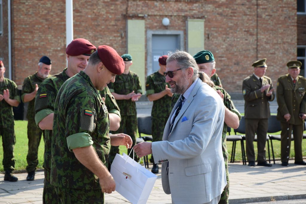 „Dėkoju Pulkininkui leitenantui Andriui Mickui už svarų indėlį kuriant partneriškus santykius tarp miesto bendruomenės ir savanoriškų pajėgų. Jums vadovaujant rinktinei matėme tikrą visuomenės ir kariuomenės bendradarbiavimą. Ačiū jums už tarnybą, o naujajam vadui linkiu sėkmės įgyvendinant iškeltus tikslus ir tikiuosi, kad mūsų bendradarbiavimas tik stiprės“, – linkėjo meras R. Račkauskas ir įteikė A. Mickui atminimo dovaną – panevėžiečio R. Kriukio stiklo dirbinį simbolizuojantį miesto herbą.