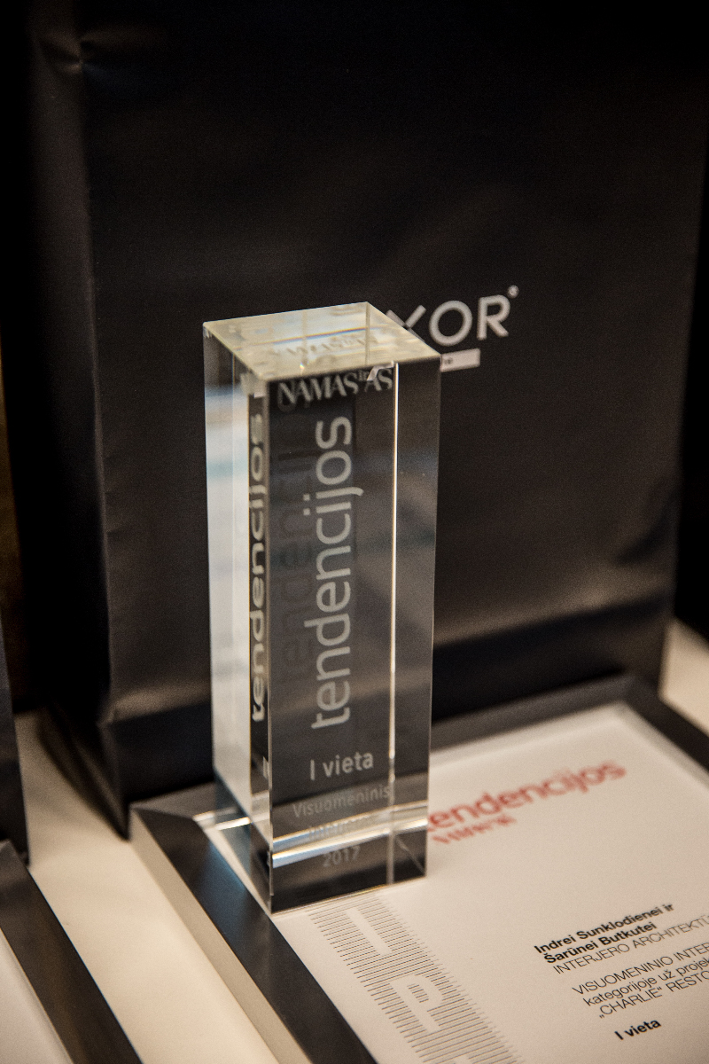 I vieta. „CHARLIE“ RESTORANAS, autoriai Indrė Sunklodienė ir Šarūnė Butkutė ( INTERJERO ARCHITEKTŪRA).