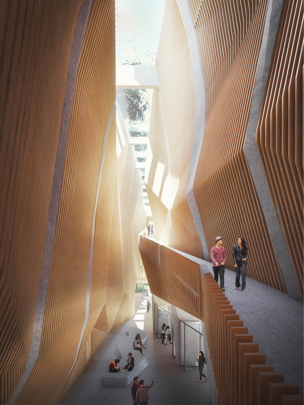 Dauguma butų šiame pastate bus optimalios, 50 kv. m. studijos. Pastate gausu bendro naudojimo erdvių, tiek privačių, tiek ir visuomeninių. Jame veiks visuomenei atvira svetainė, kino teatras, gyventojai galės mėgautis biblioteka, jogos kambariu, stogo terasa, keliais lauko kiemeliais. Be viso to, pastatas išsiskirs netradicinėmis vidaus erdvėmis.
