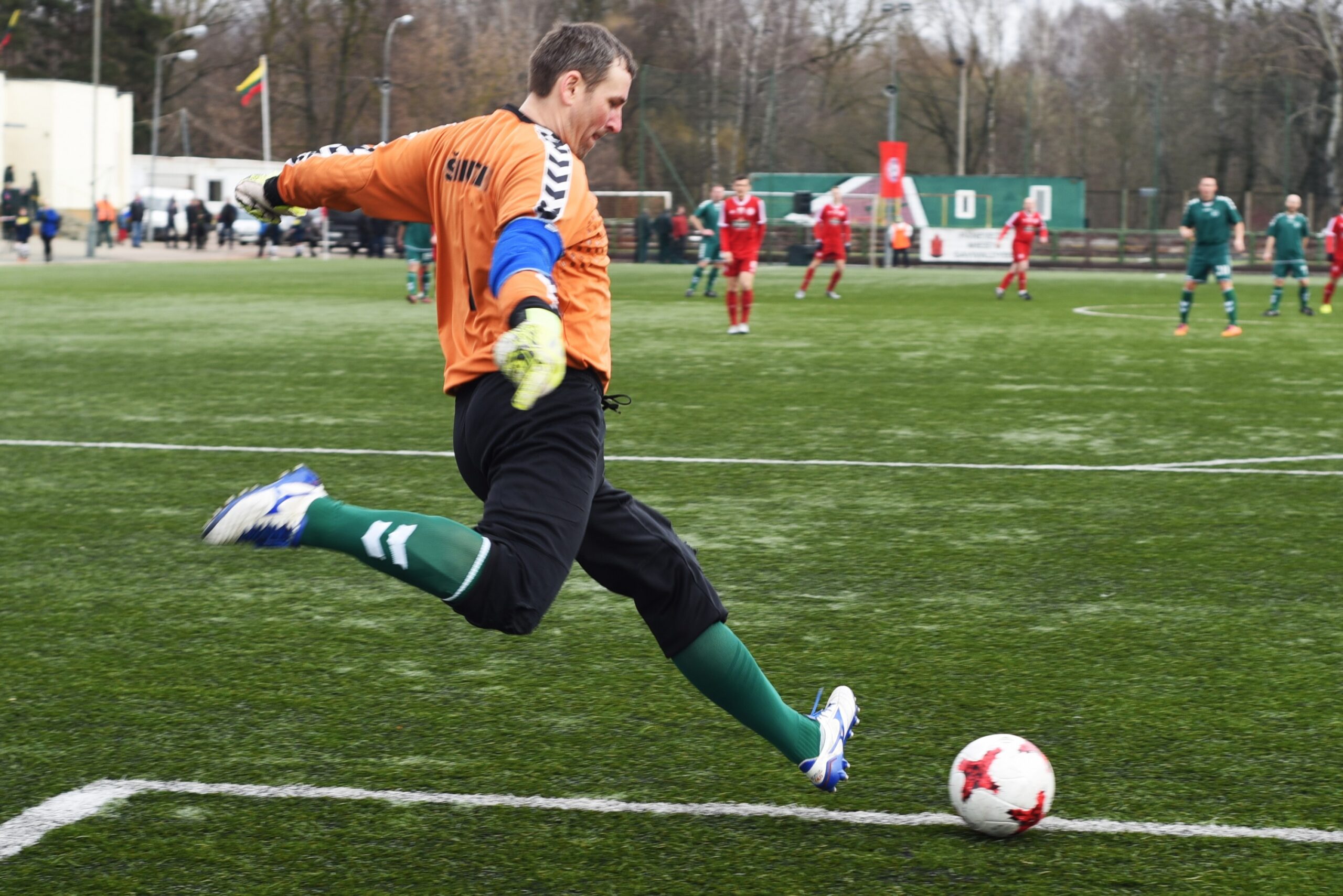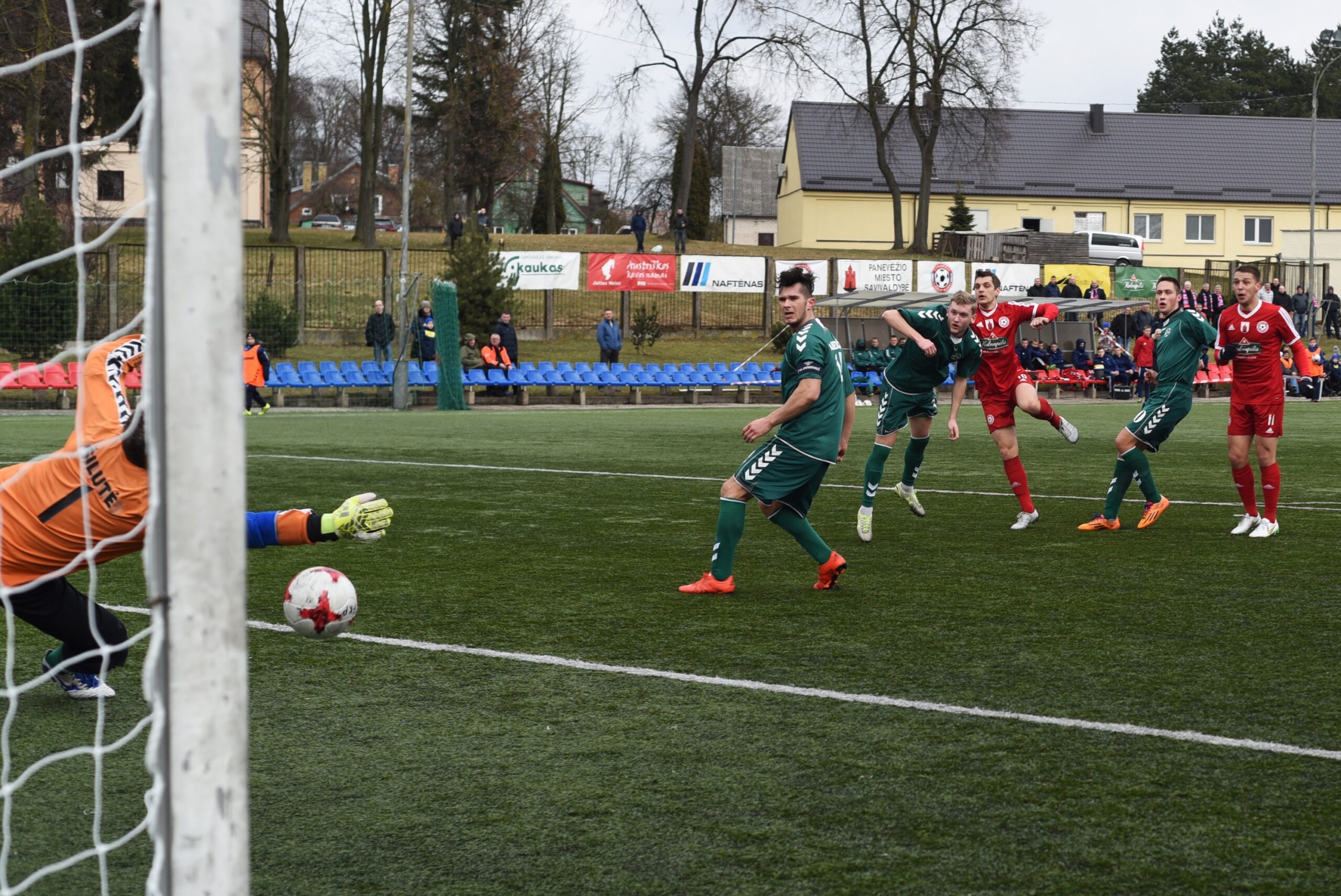 28 minutę Žilvinas Banys pasinaudojo nedidele sumaištimi netoli svečių baudos aikštelės ir maždaug iš 15 metrų tiksliai smūgiavo į vartų kairįjį kampą.