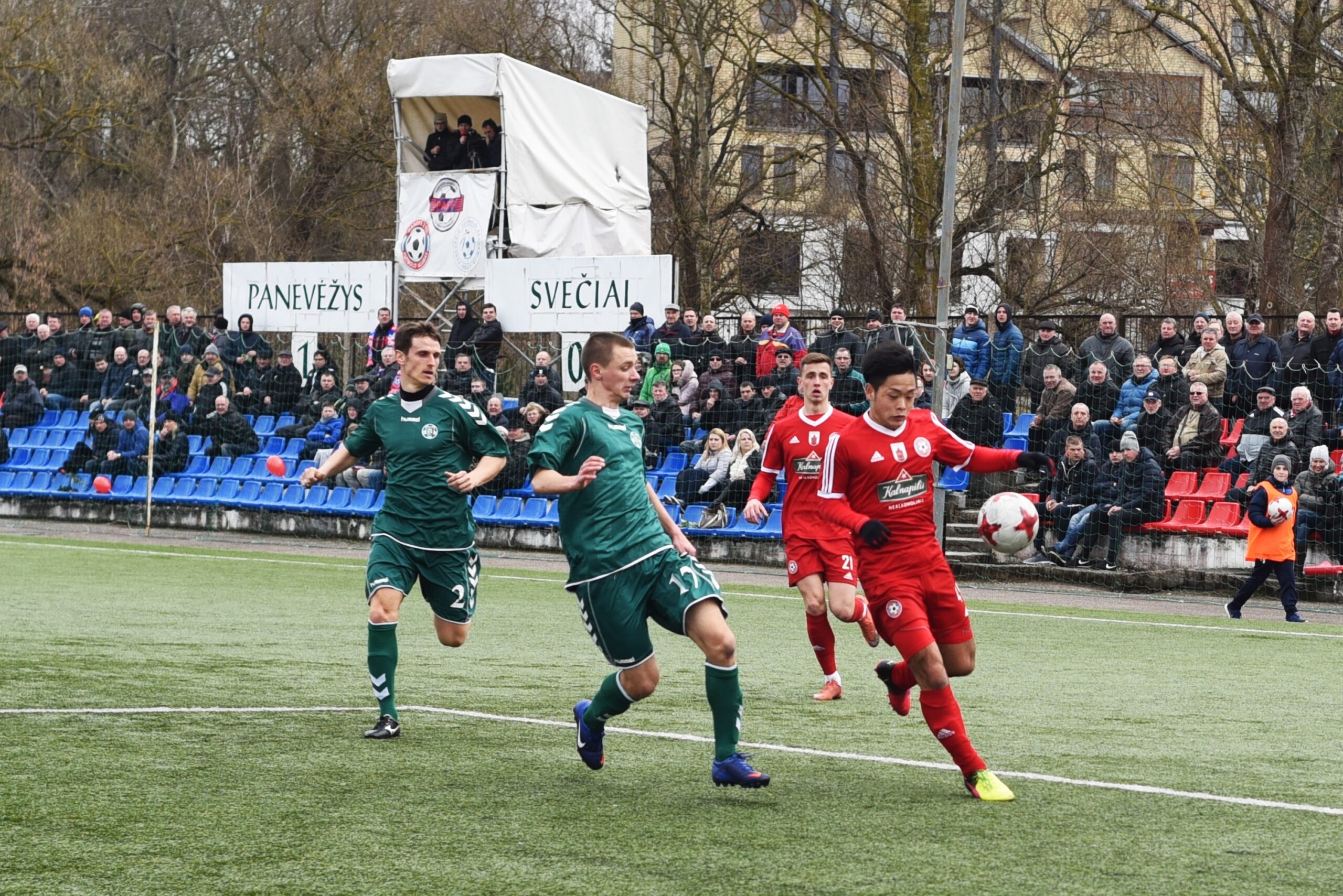 Sėkmę iš toli smūgiuodamas pabandė japonas Tsubasa Mitani, tačiau kamuolys skriejo virš vartų. Dar už kelių minučių galva smūgiavo „Panevėžio“ gynėjas Tomas Rakašius, tačiau kamuolys atsidūrė vartininko rankose.