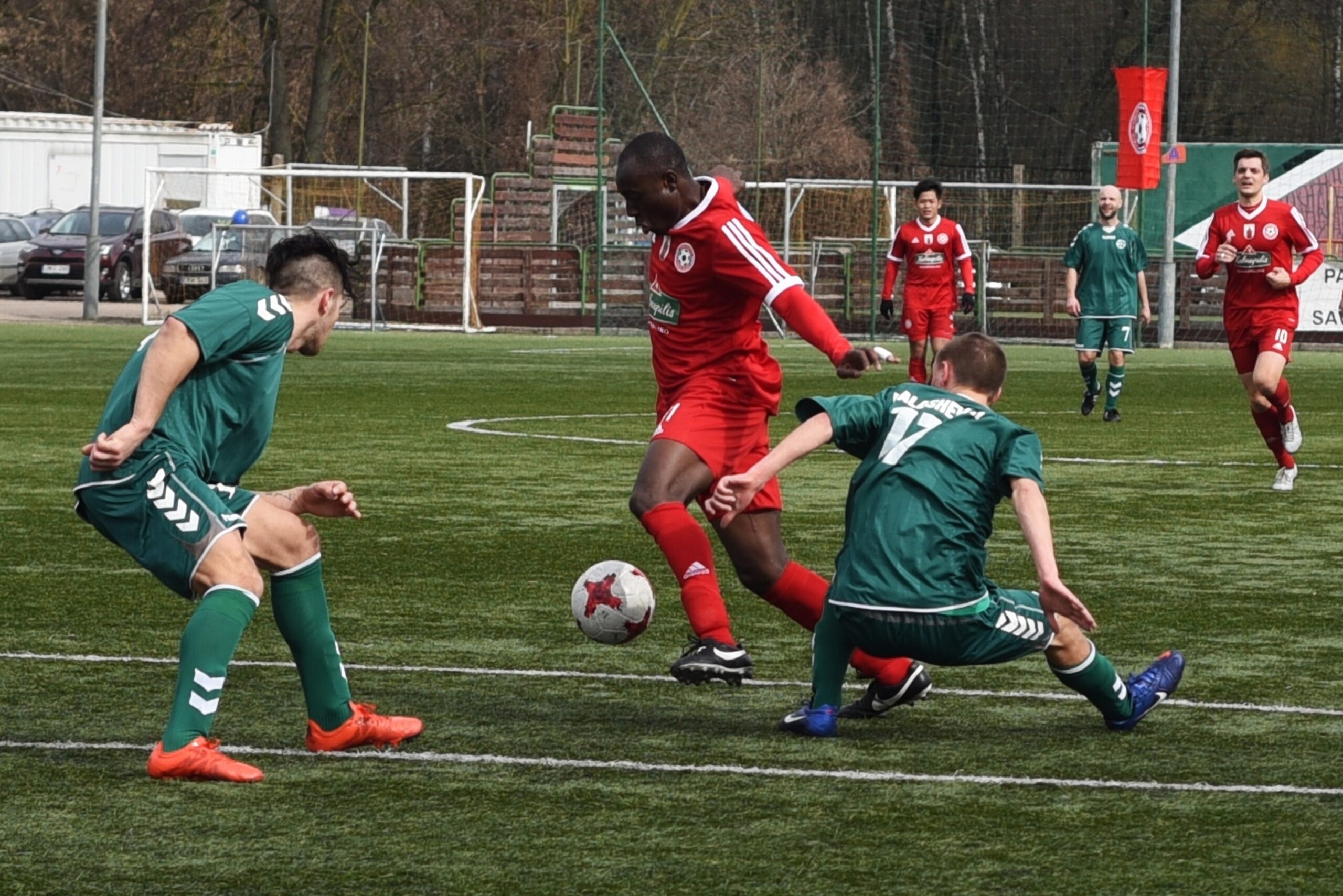 Neblogoje situacijoje 15 min. buvo atsidūręs Eduard Grygorenko. Už varžovų gynėjų nugarų pabėgęs ukrainietis turėjo galimybę išeiti vienas prieš vartininką, tačiau saugas kamuolį pametė.