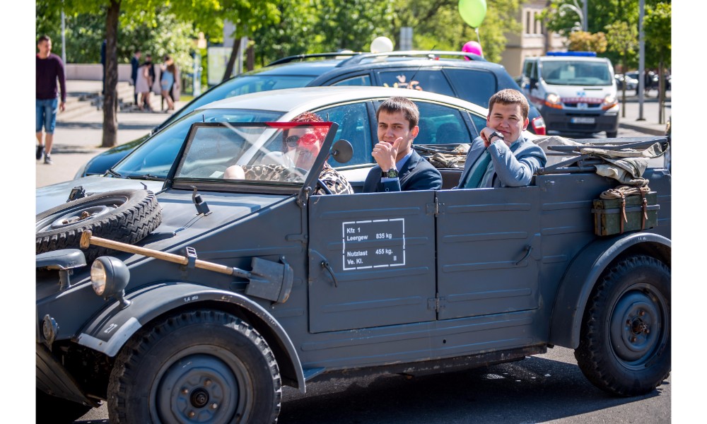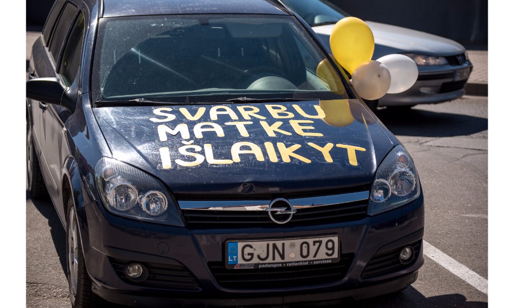 Jų gerą nuotaiką Paskutinio skambučio šventėje liudijo ir šmaikštūs užrašai ant automobilių. „Svarbu matkę išlaikyti“, „Su baru y egzą“, „Mes ne gurti“, „Last bell“ – tokiais ir panašiais žodžiais buvo išmargintos jaunuolių mašinos.