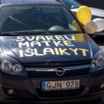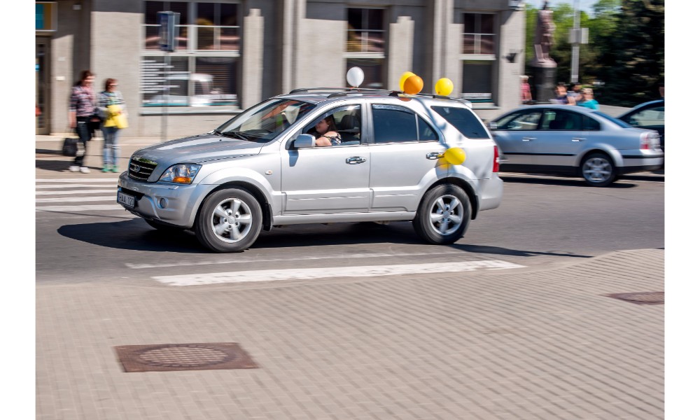 Įspūdingoje automobilių procesijoje su auklėtiniais į mokyklą atvažiavo ir J. Balčikonio gimnazijos mokytoja Lilija Svalbonienė.