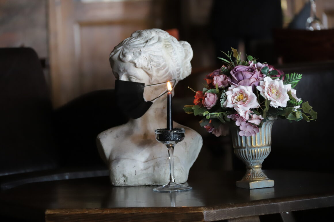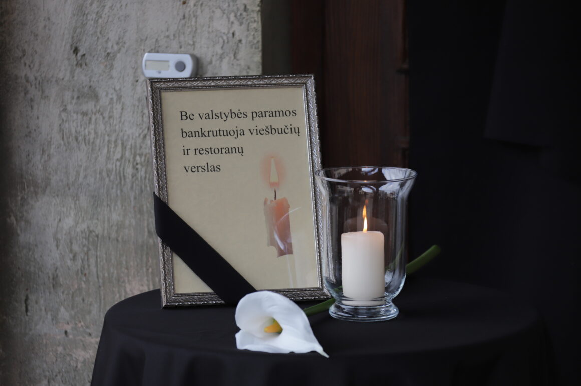 Juoda juostele aprišti staliukai restorane, žvakės ir laidotuvių vainikai kviečia gedulingų pietų. Tačiau per karantiną net ir jie draudžiami. Tokiomis sąlygomis jau metus gyvenantys restoranai ir viešbučiai ėmėsi makabriškos protesto akcijos „Paskutinė verslo vakarienė“.