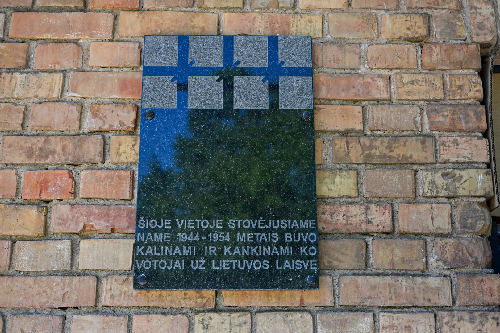 Įrašas joje skelbė, kad toje vietoje 1944–1954 metais veikė NKVD-MVD-MGB.