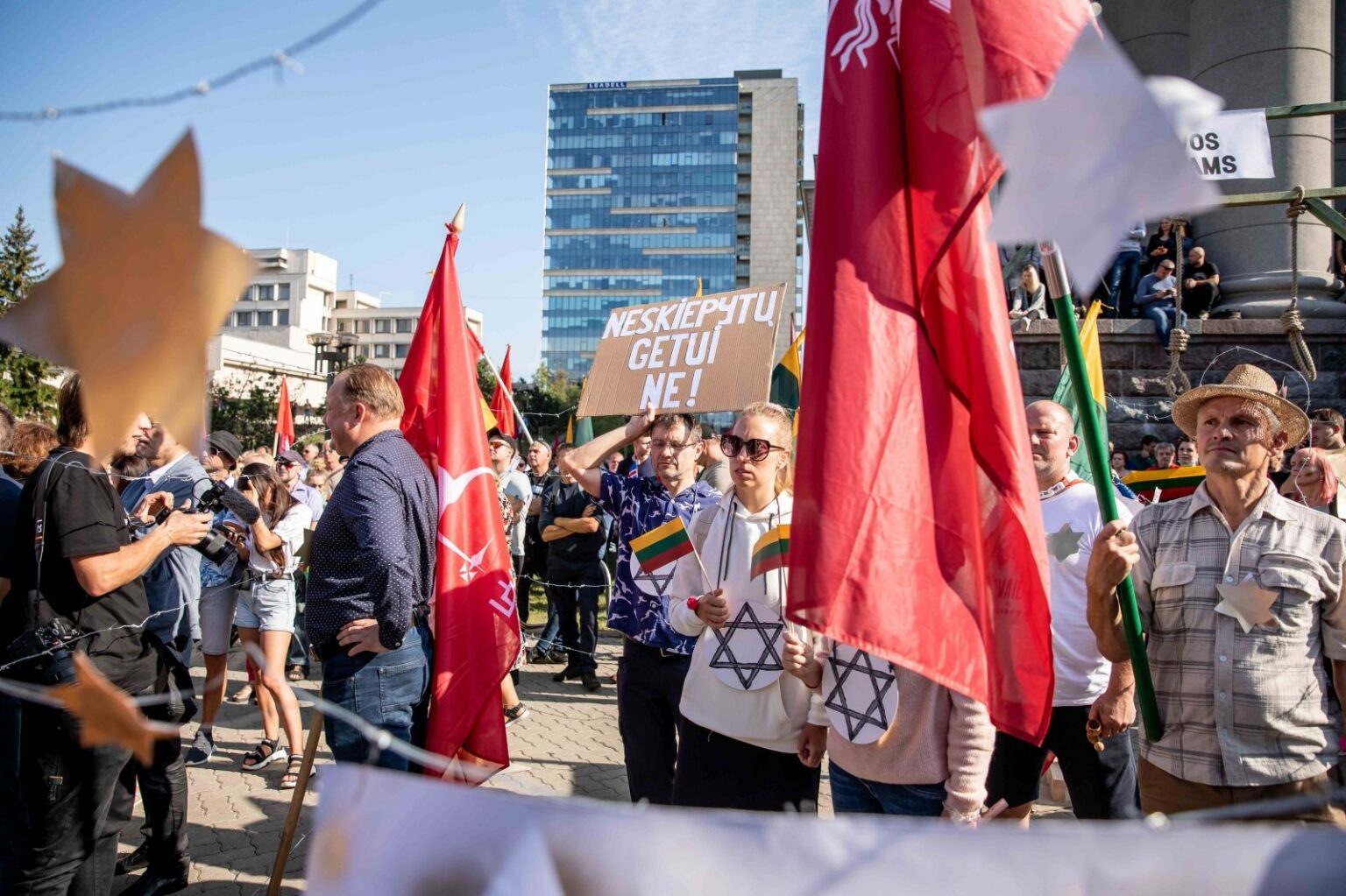 Lietuvos žydų bendruomenės vadovė paragino tuos, kurie mitingui pasirinko Holokausto simboliką, aplankyti bent vieną masinę kapavietę ir pagerbti „tuos, kurie iš tiesų buvo paženklinti, atskirti ir nužudyti“.
