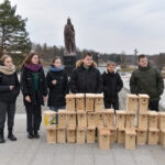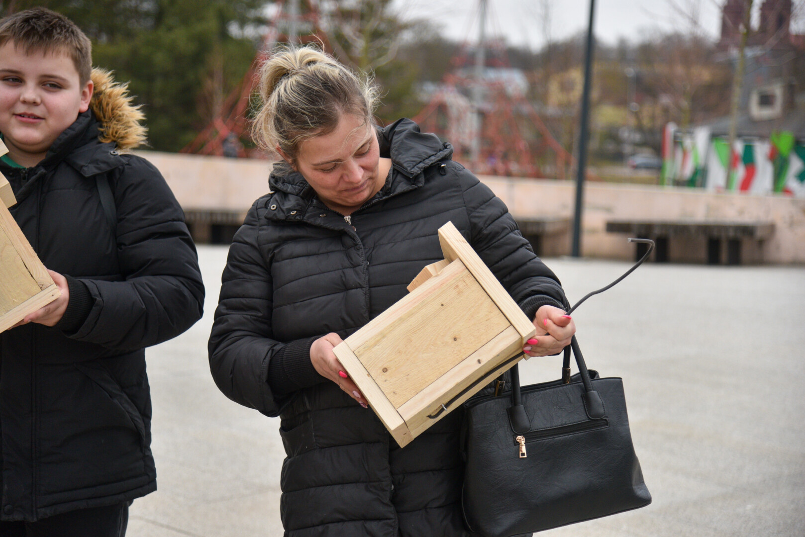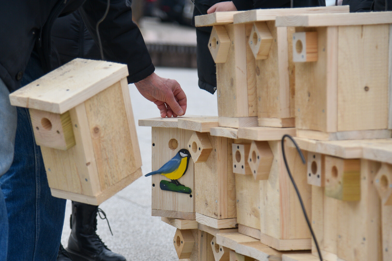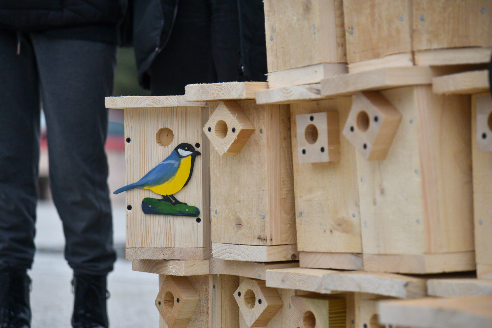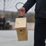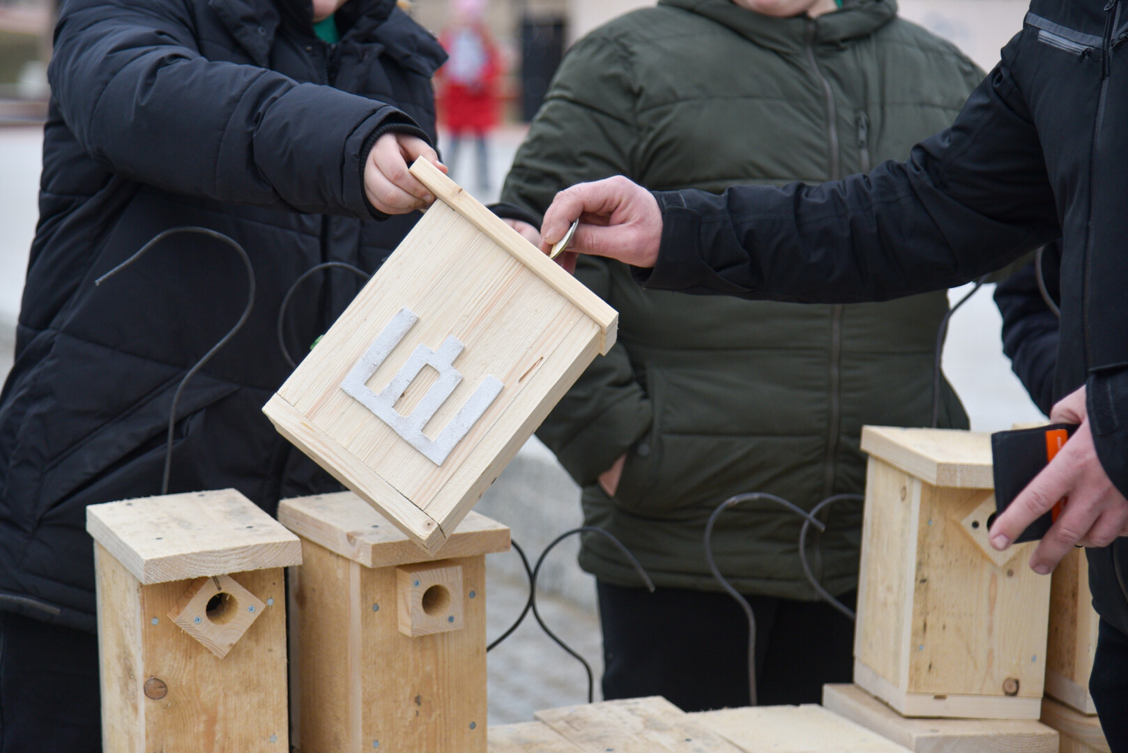 Panevėžio „Ąžuolo“ progimnazijos mokiniai Laisvės aikštėje, prie Aleksandro paminklo, panevėžiečiams atvežė sukalę keturias dešimtis inkilų sparnuočiams.
