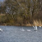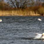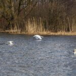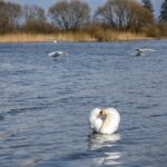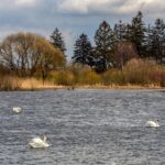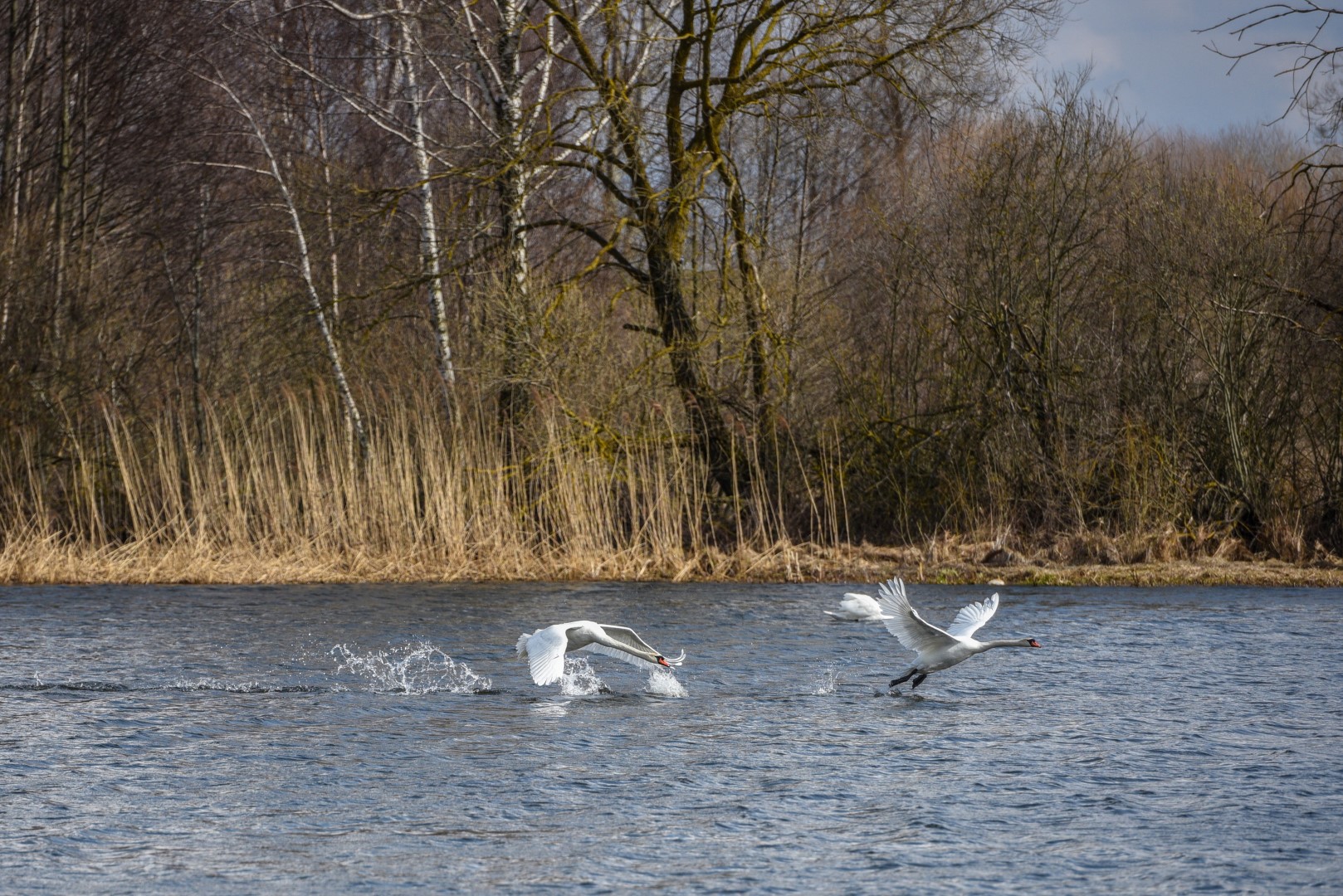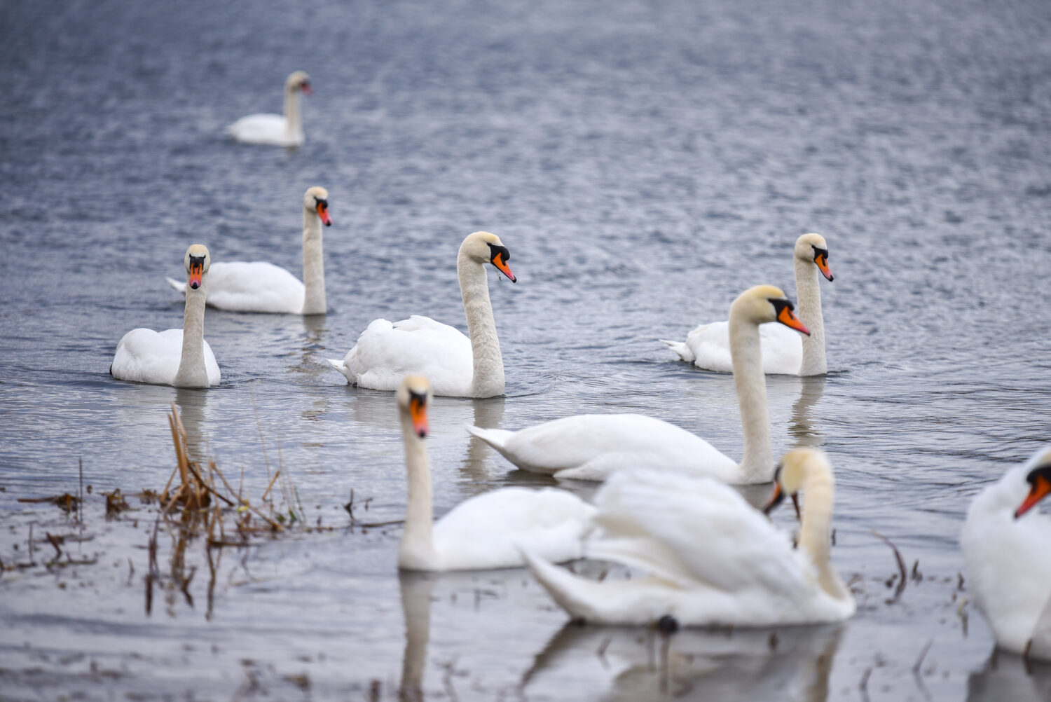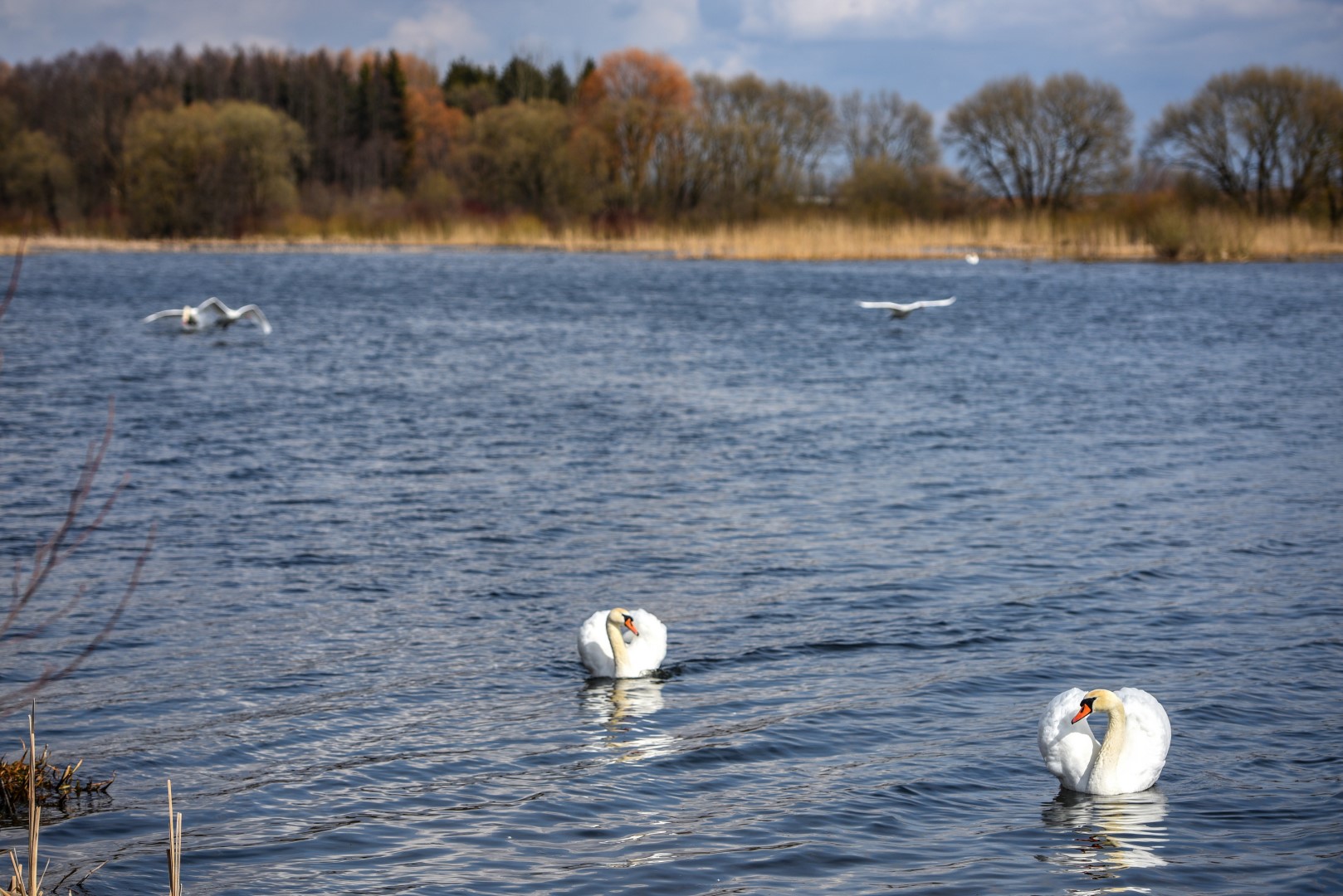 Šuojos upelio tvenkinys balandį virsta šių išdidžių paukščių karalyste, o pakrantėje išsirikiuoja į juos pažiūrėti suvažiavusių gamtos mylėtojų automobiliai.