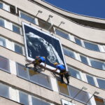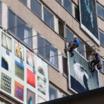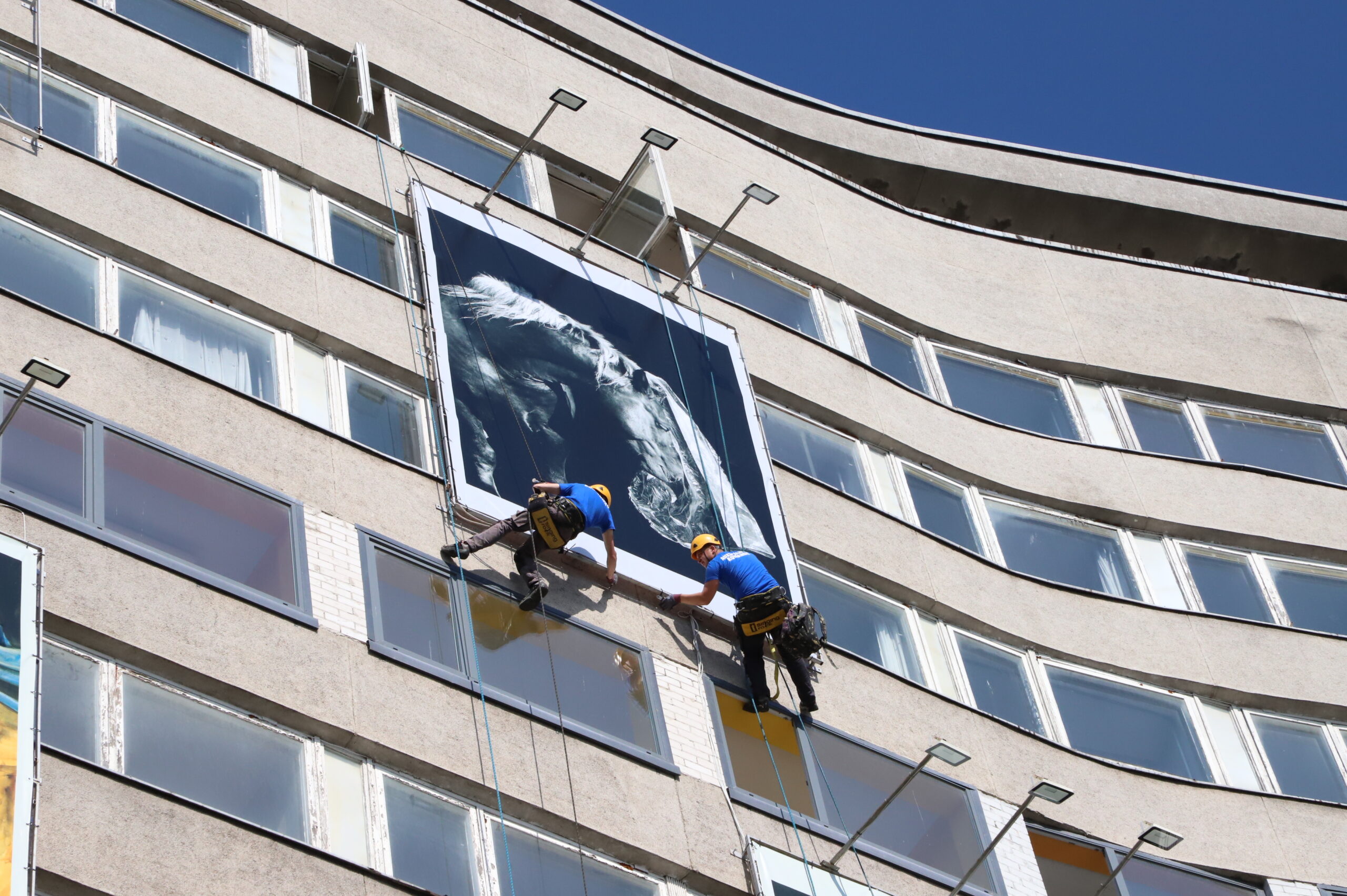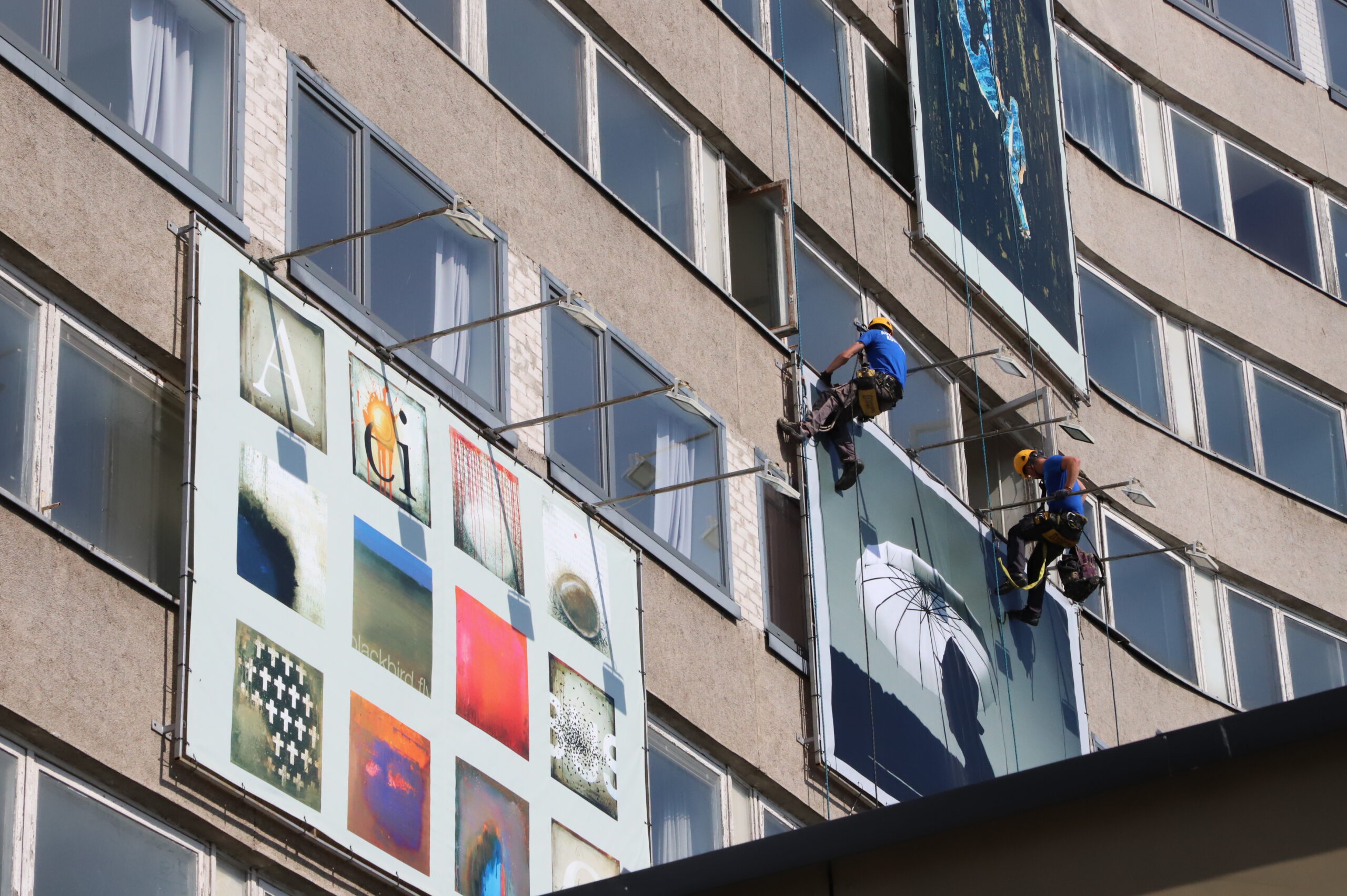 Panevėžio Laisvės aikštėje stūksančio viešbučio fasadas jau keletą metų virtęs savotiška galerija, kur devyni didelio formato kūriniai keičiami dukart per metus. Pastaruoju metu ant jo fasado eksponuotus tapybos darbus karštą penktadienio rytą aukštalipiai pakeitė devyniomis didelio formato fotografijomis.