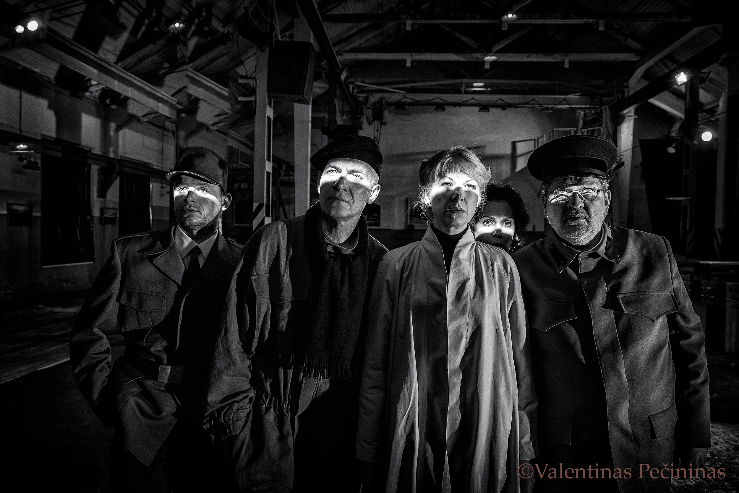 Anot jo, į parodą atrinkta fotografija – laiku ir vietoj pagauta akimirka. „Atvažiavau į repeticiją siauruko depe. Turėjau ten dar kai ką nuveikti kolektyvo labui, todėl atvykau gerokai anksčiau prieš repeticiją. Pastebėjau, kad į vidų siauru ruoželiu prasiskverbė vakarinės saulės spindulys. Žinant, kokia trumpa gali būti ši akimirka, teko suktis greitai. Sustačiau aktorius taip, kaip man reikėjo, galima sakyti, vieninteliu kadru ši fotografija ir gimė. Ne veltui jos herojai – tikri profesionalai, juk reikėjo išlaikyti atmerktas akis saulei spiginant. Jie verti pagarbos, visada malonu ir gera kurti su J. Miltinio dramos teatro žmonėmis“, – pasakojo V. Pečininas.